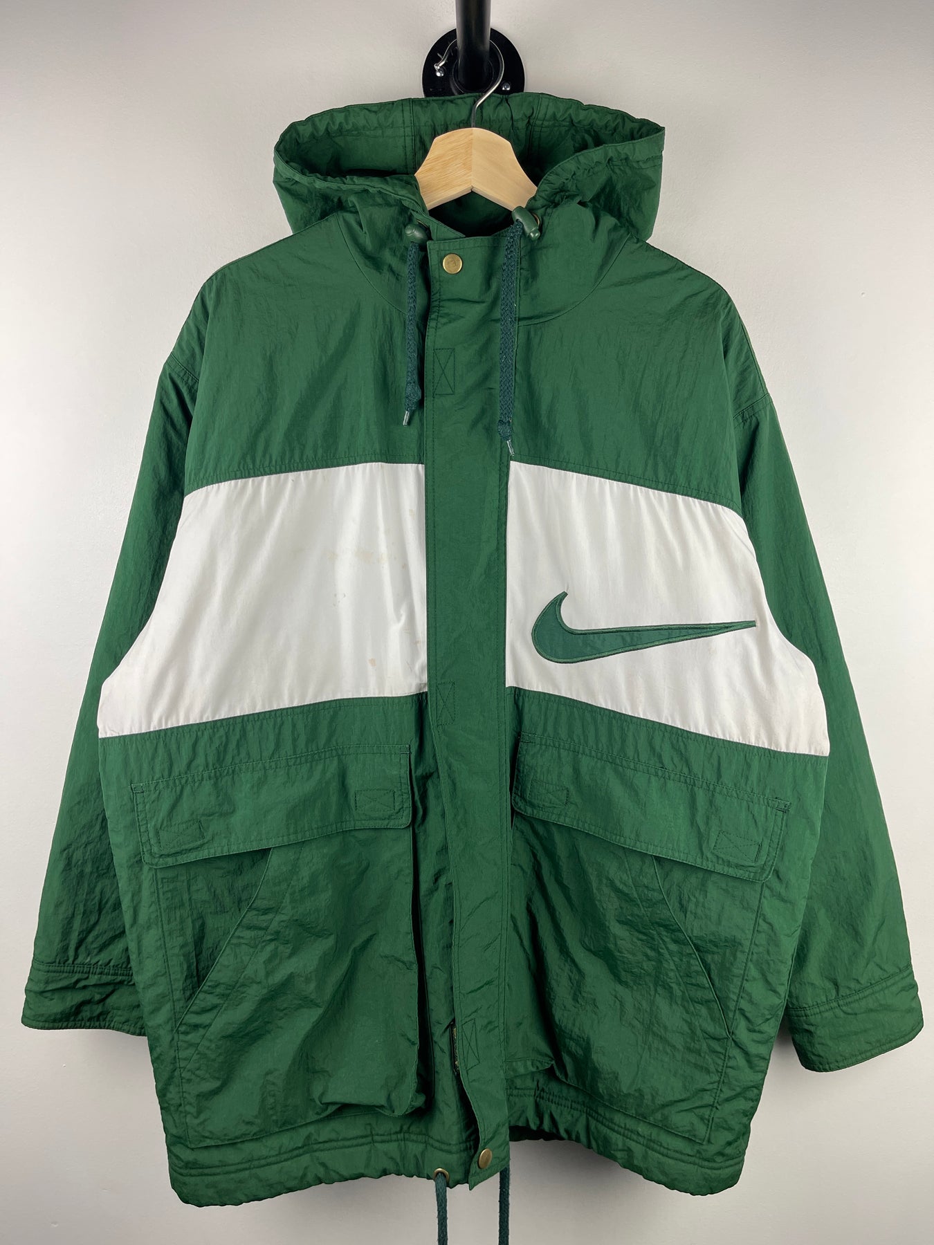Vintage 90s Nike Swoosh White & Green Hooded Jacket