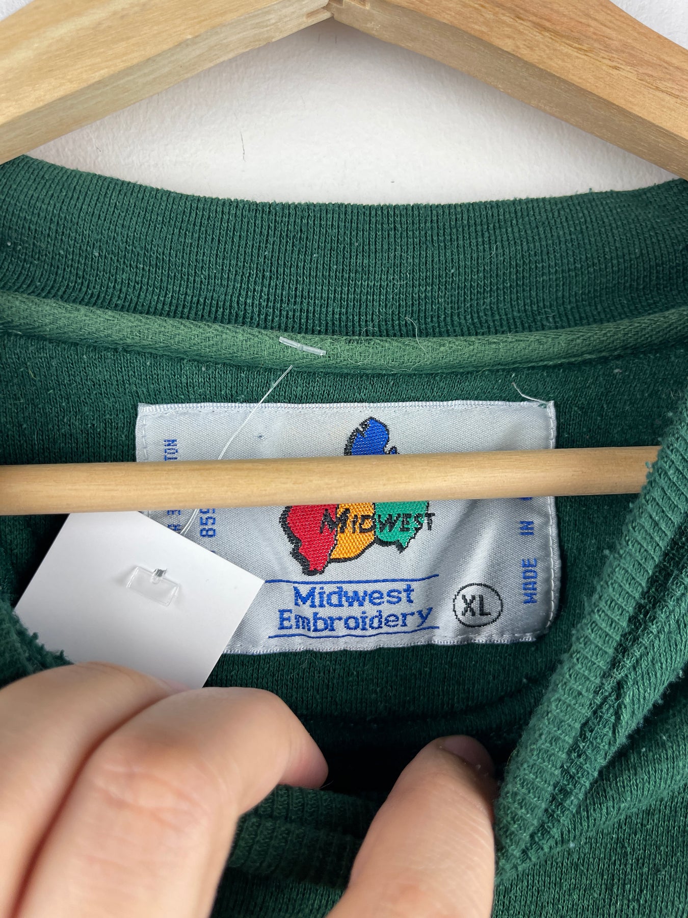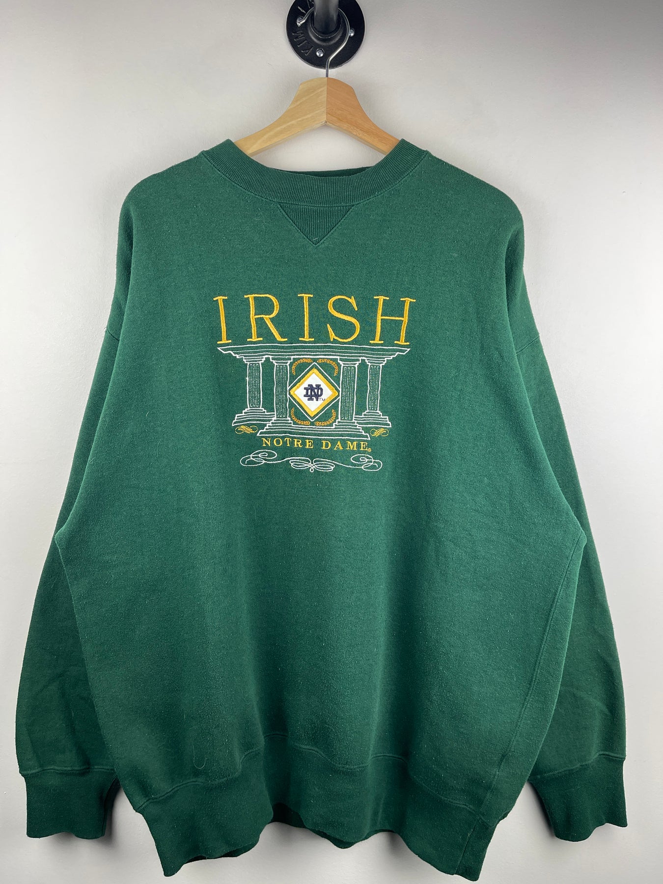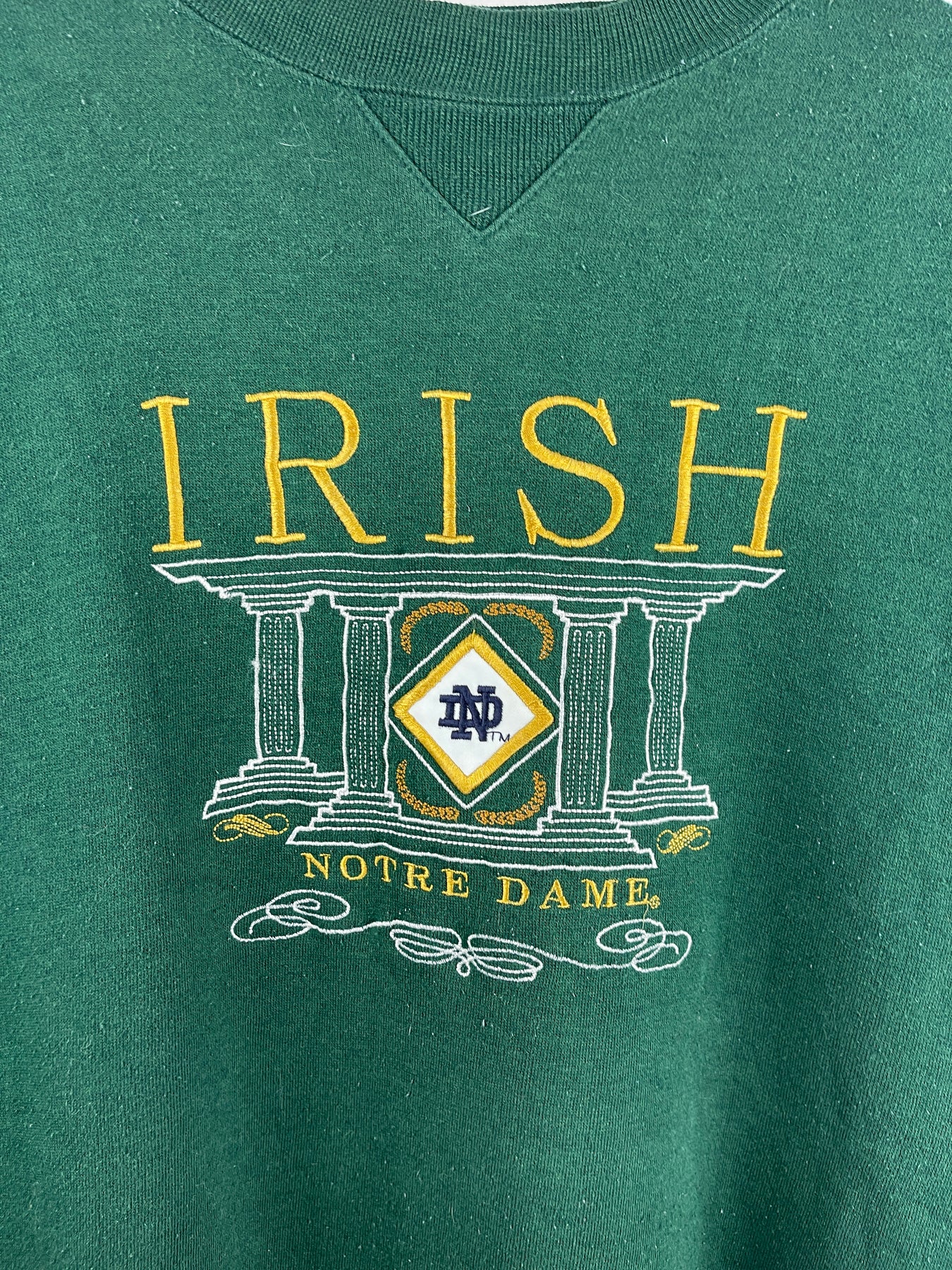 Vintage 90s Notre Dame Fighting Irish Embroidered Green Crewneck