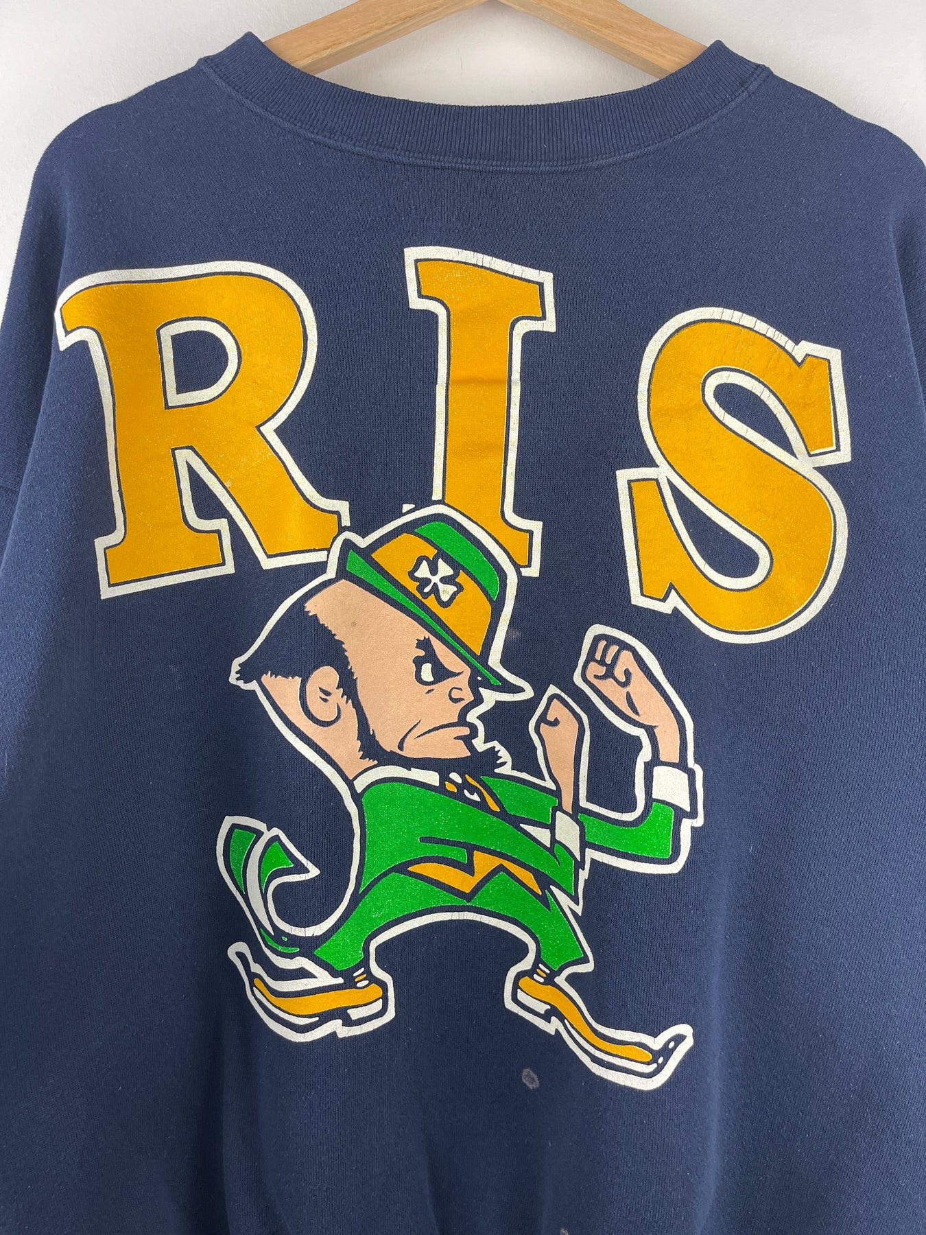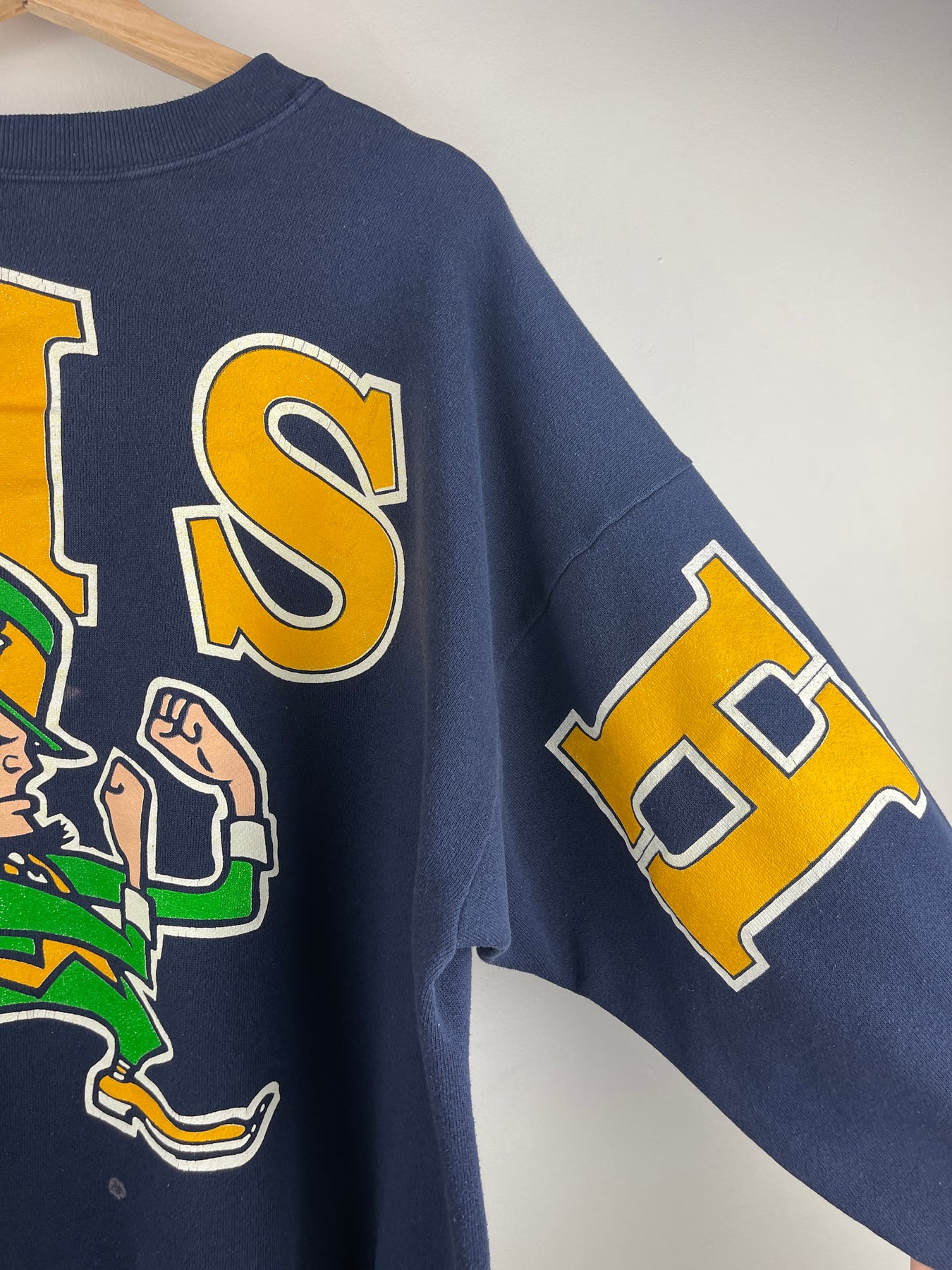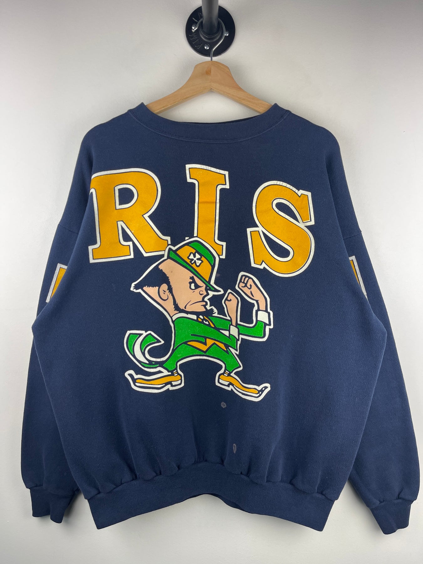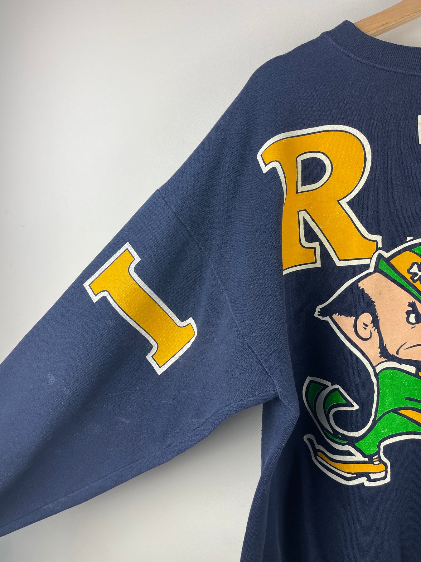 Vintage 90s Notre Dame Fightining Irish Big Spellout Navy Crewneck