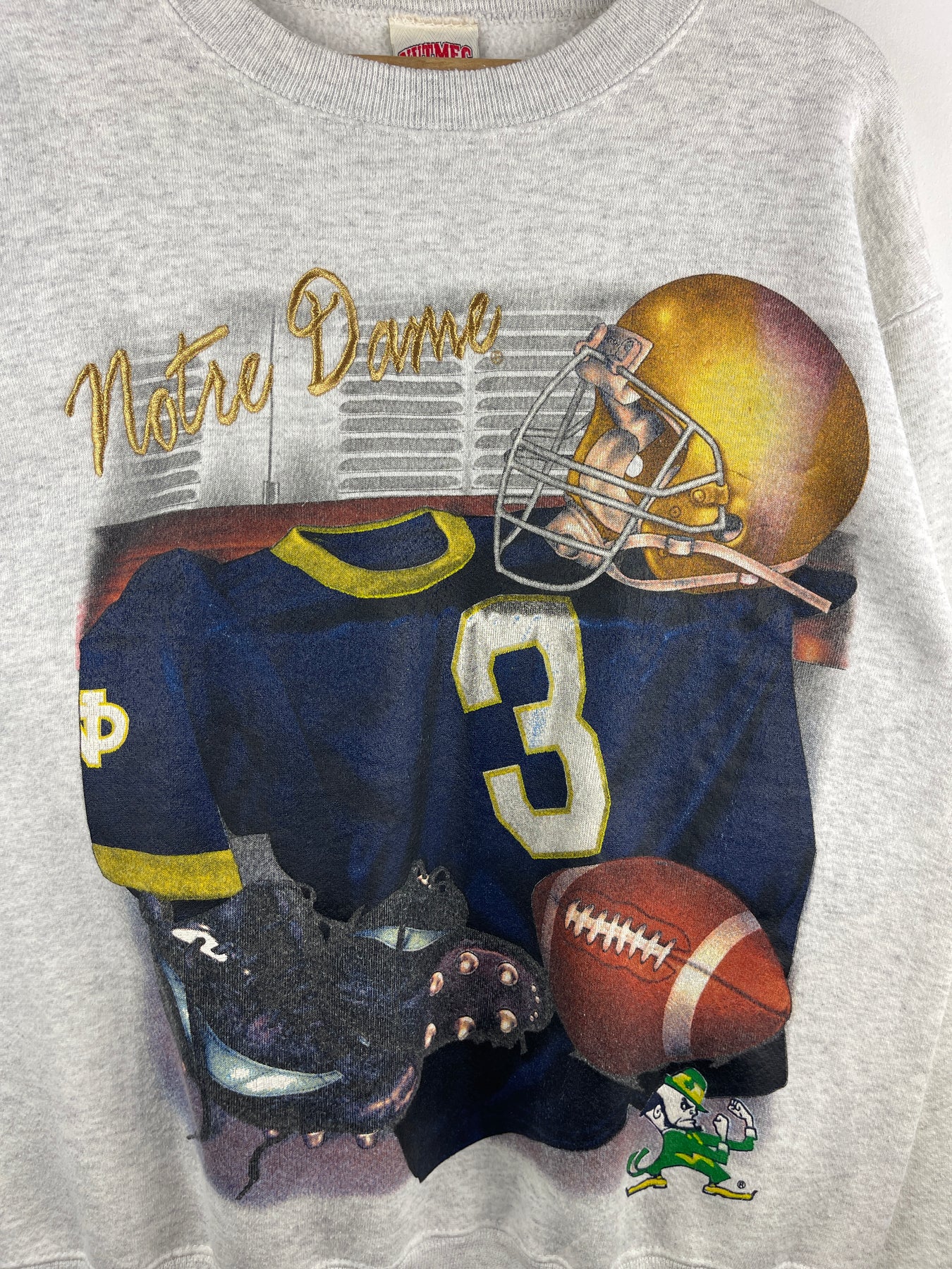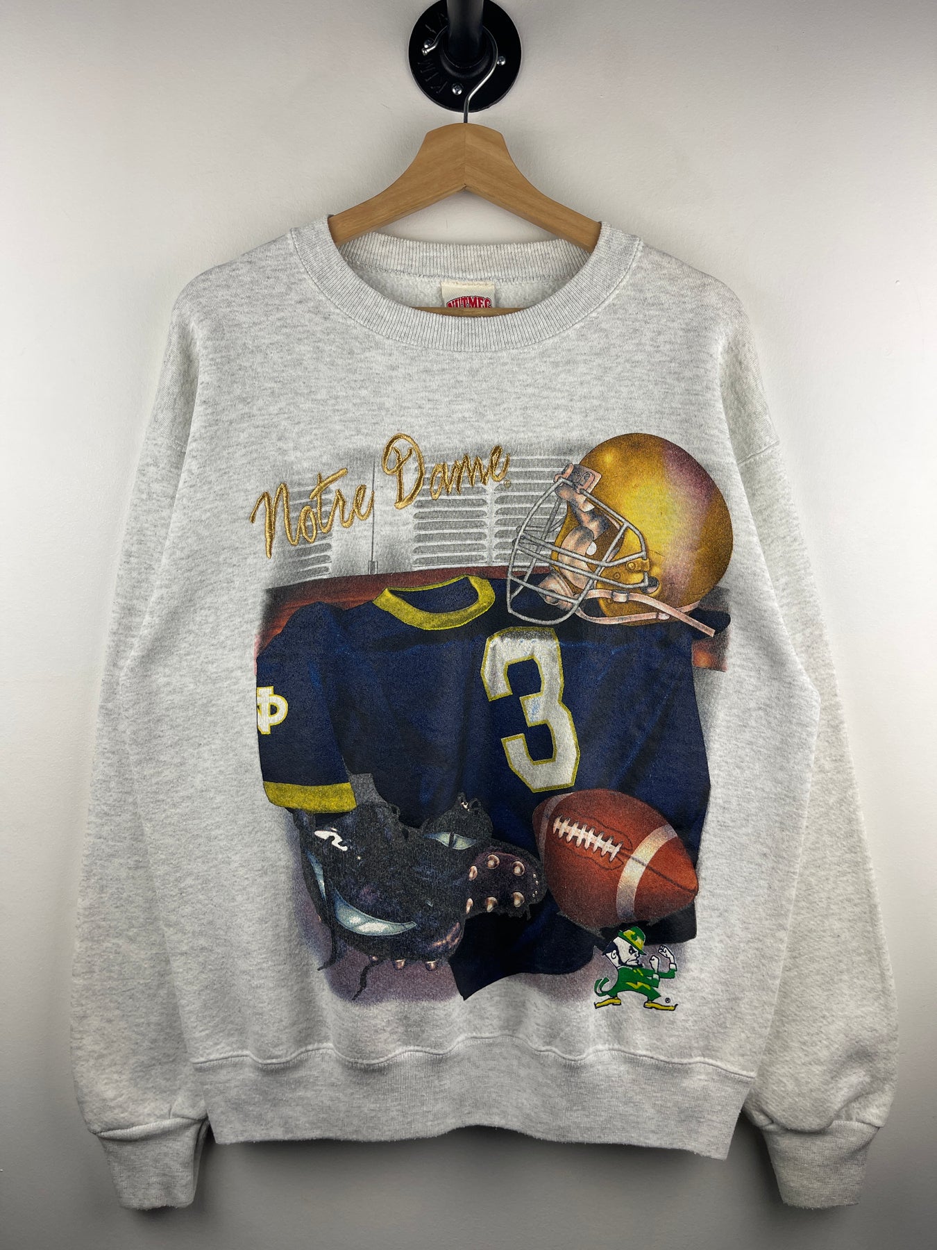 Vintage 90s Nutmeg Notre Dame Fighting Irish Football Grey Crewneck