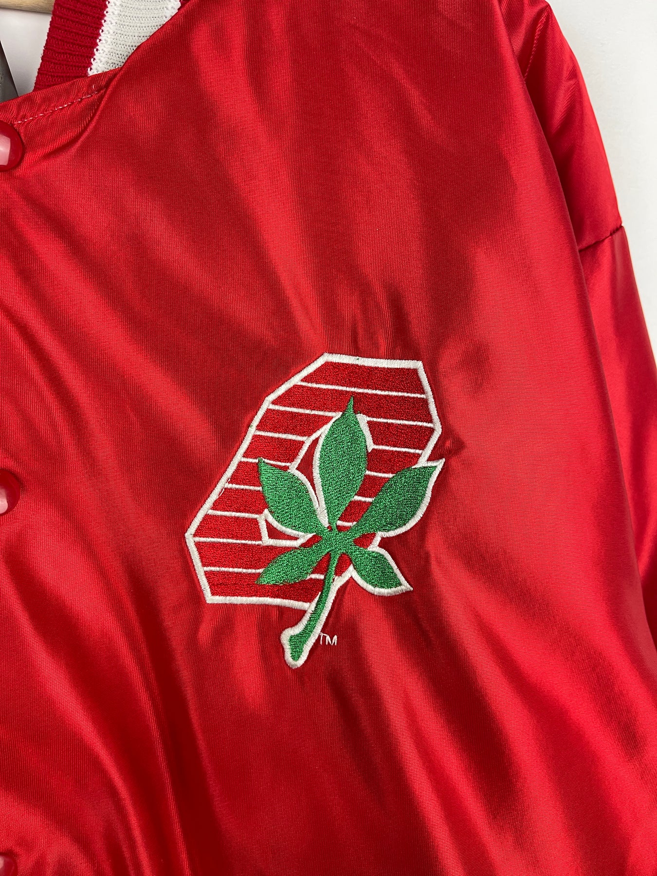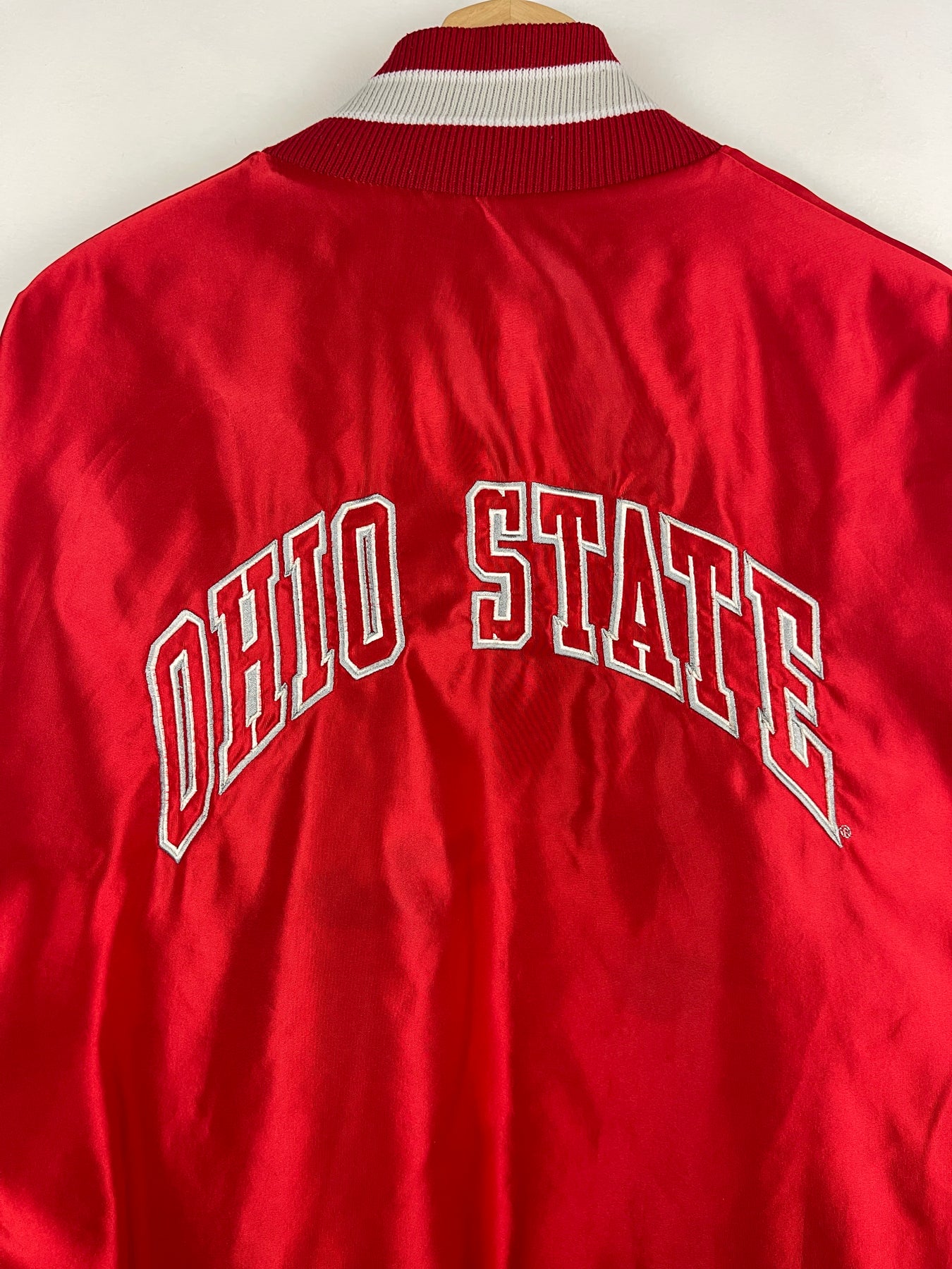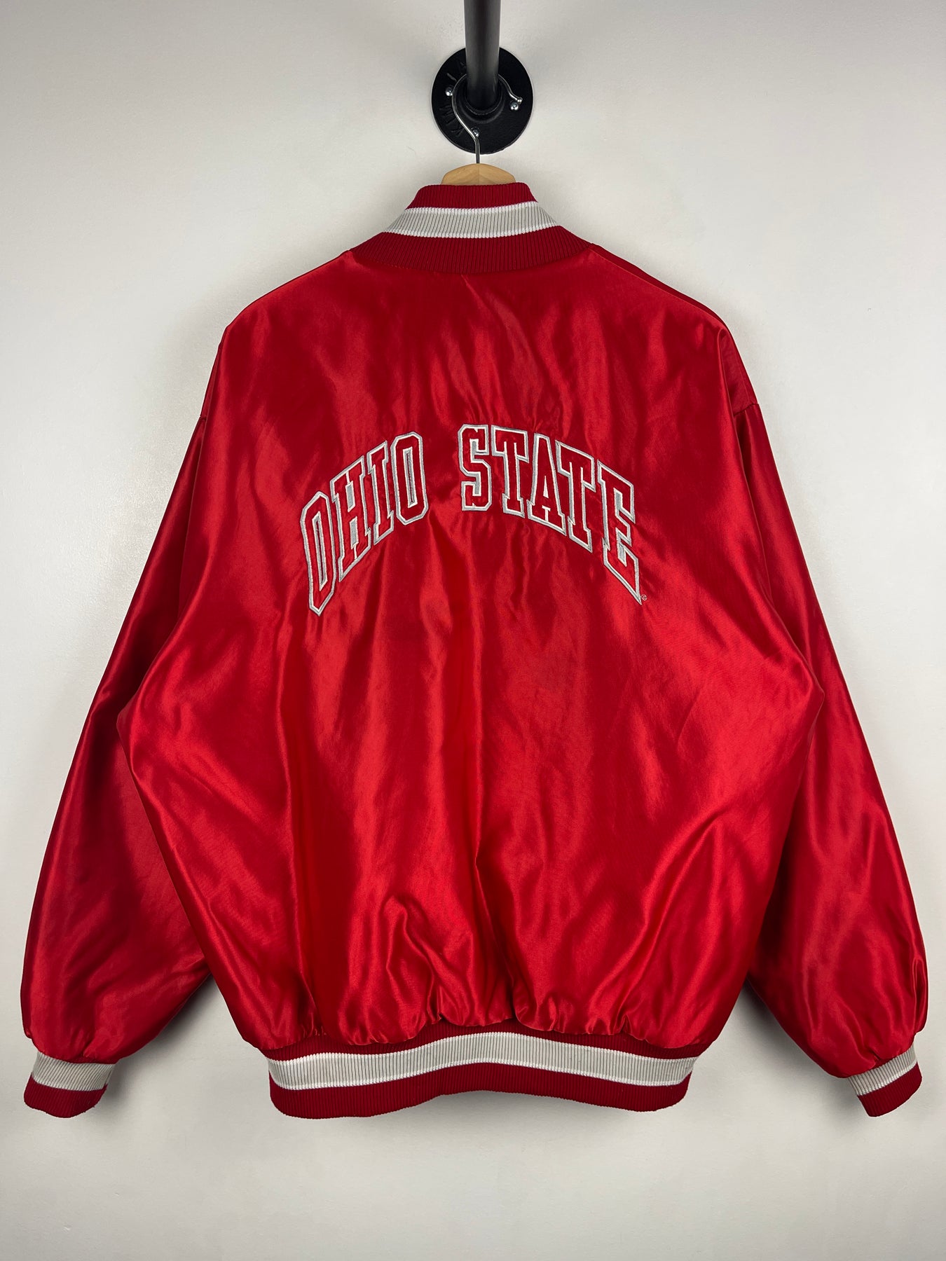 Vintage 90s Ohio State Universty Red Satin Varsity Bomber Jacket