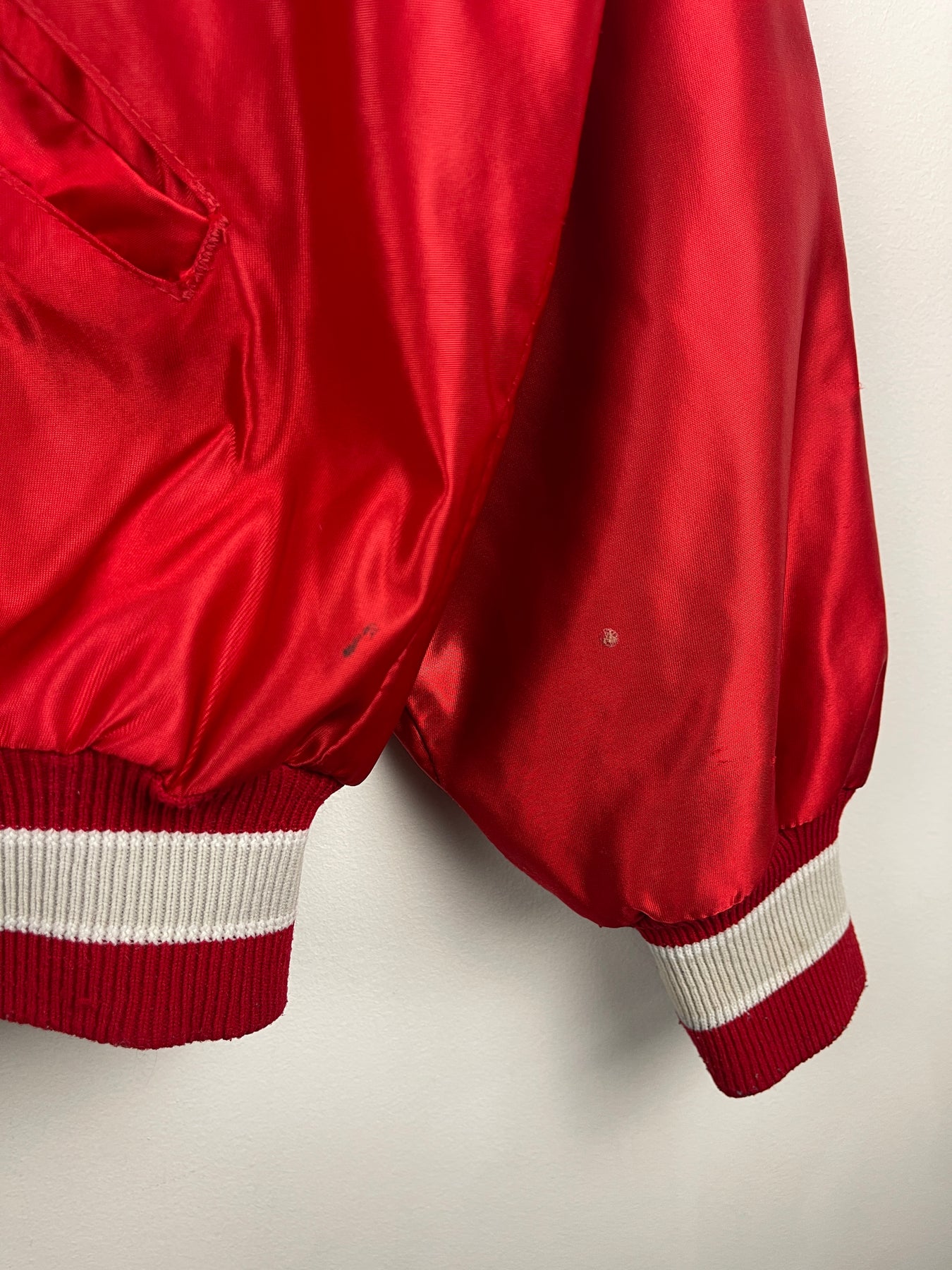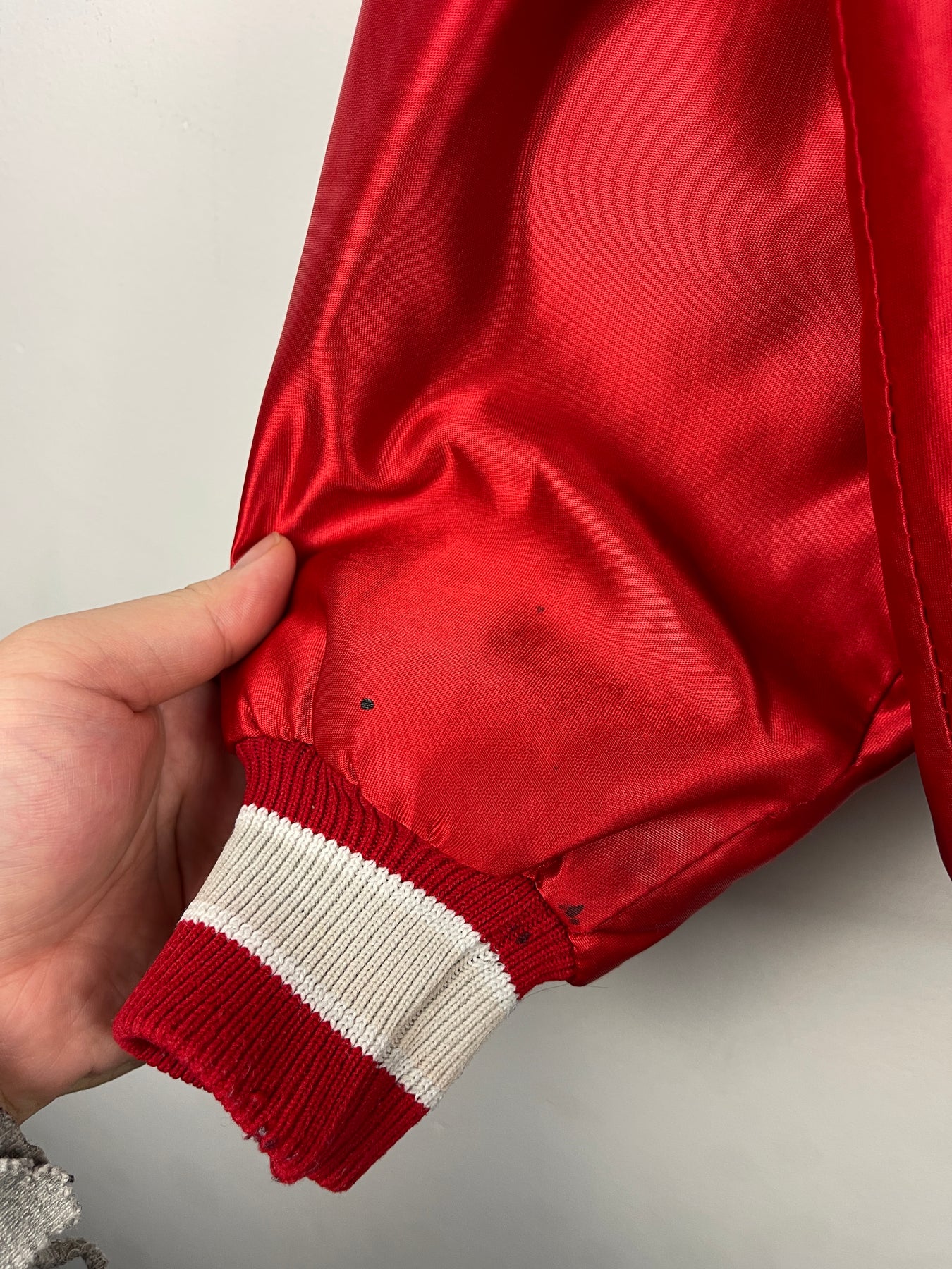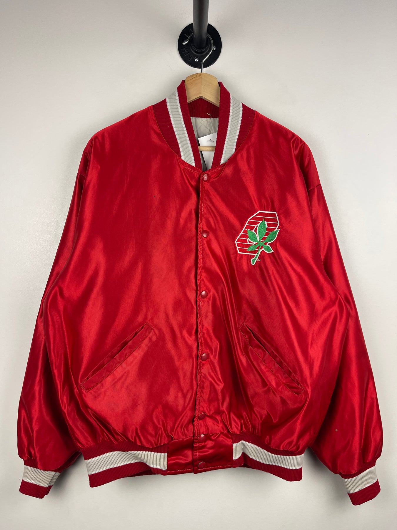 Vintage 90s Ohio State Universty Red Satin Varsity Bomber Jacket
