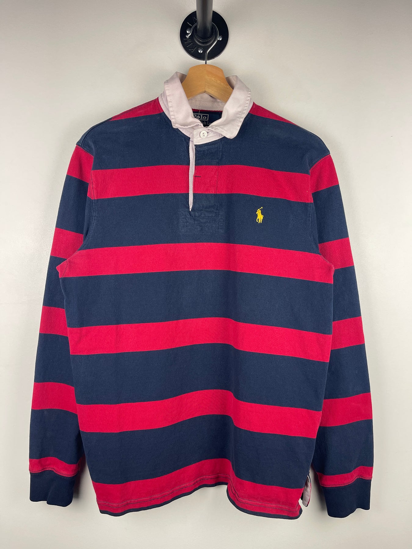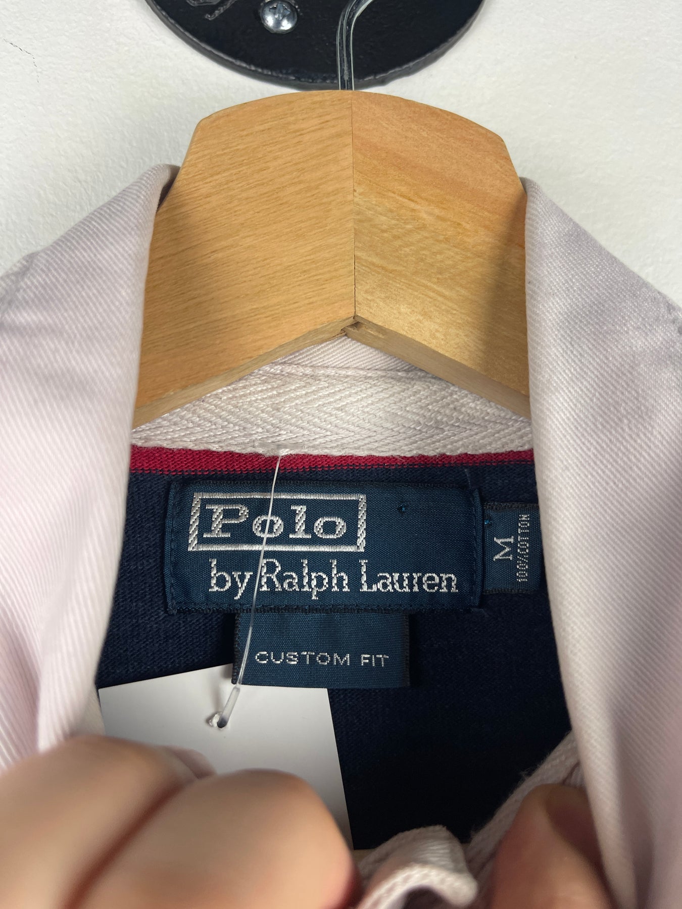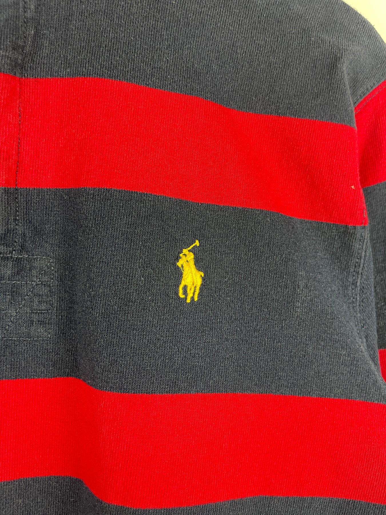 Vintage 90s Polo Ralph Lauren Striped Navy & Red Polo Rugby Long Sleeve