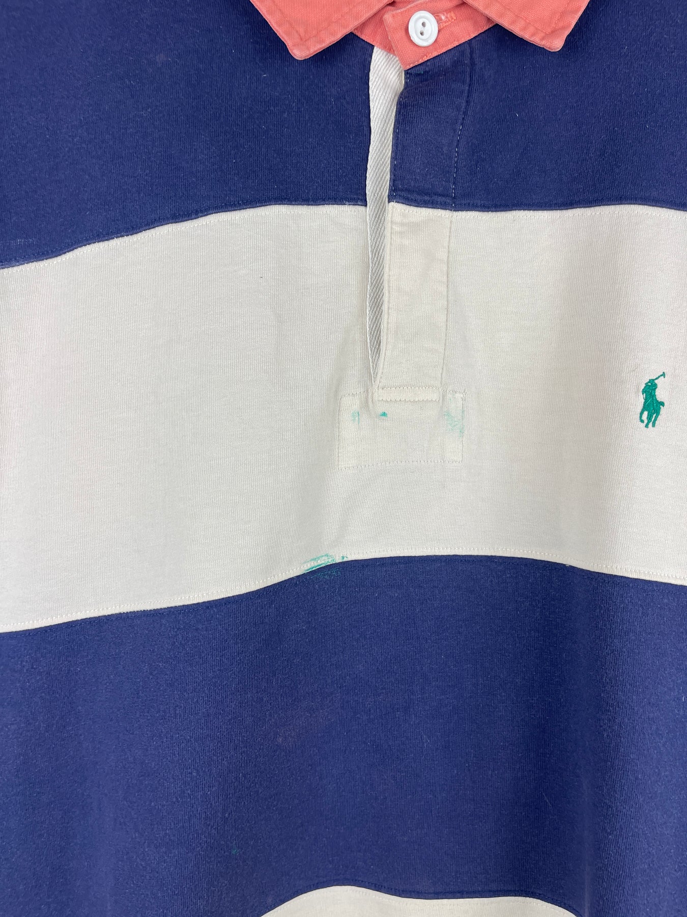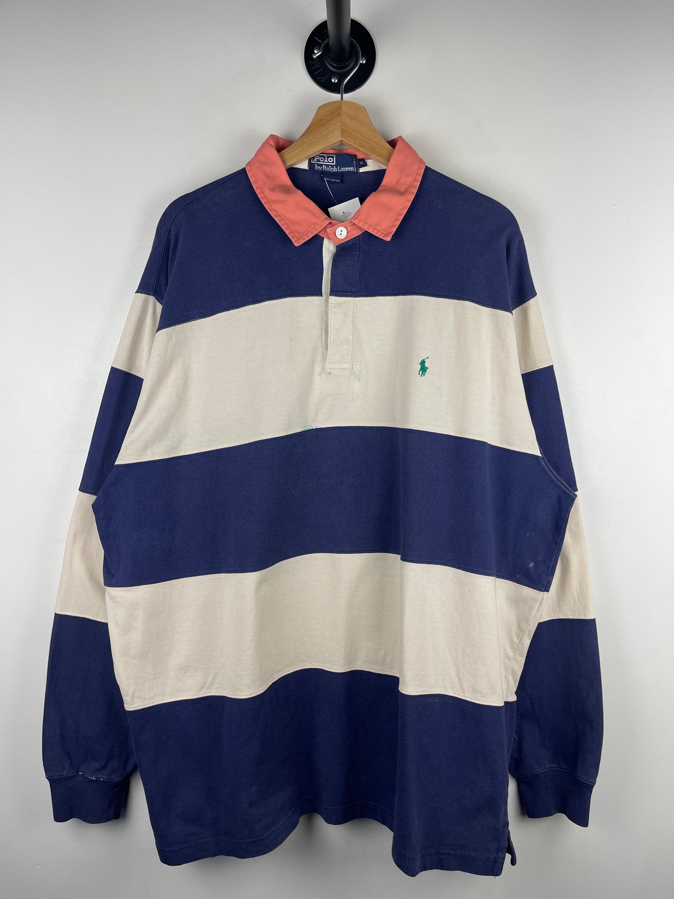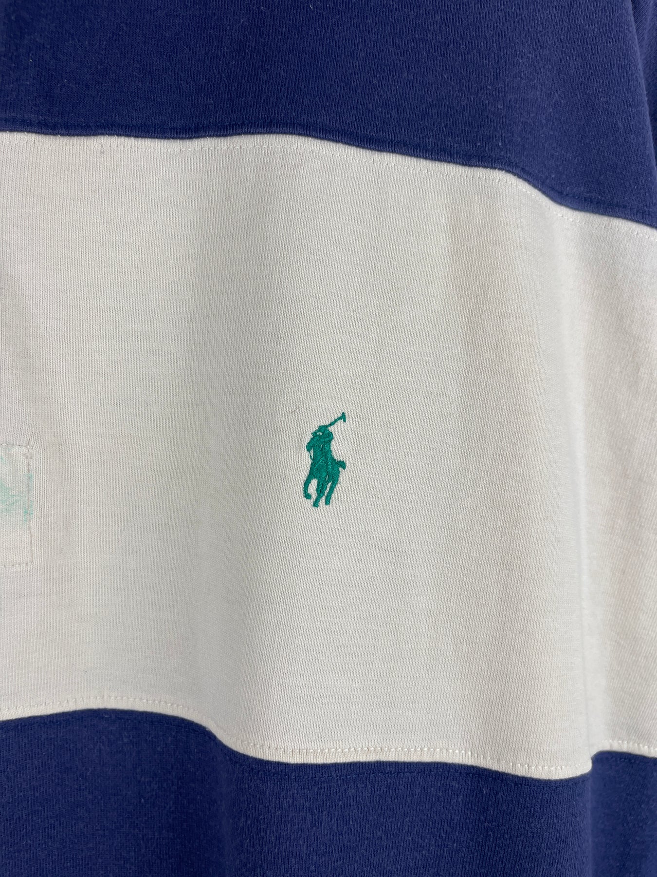 Vintage 90s Polo Ralph Lauren Striped Navy & White Polo Rugby Long Sleeve