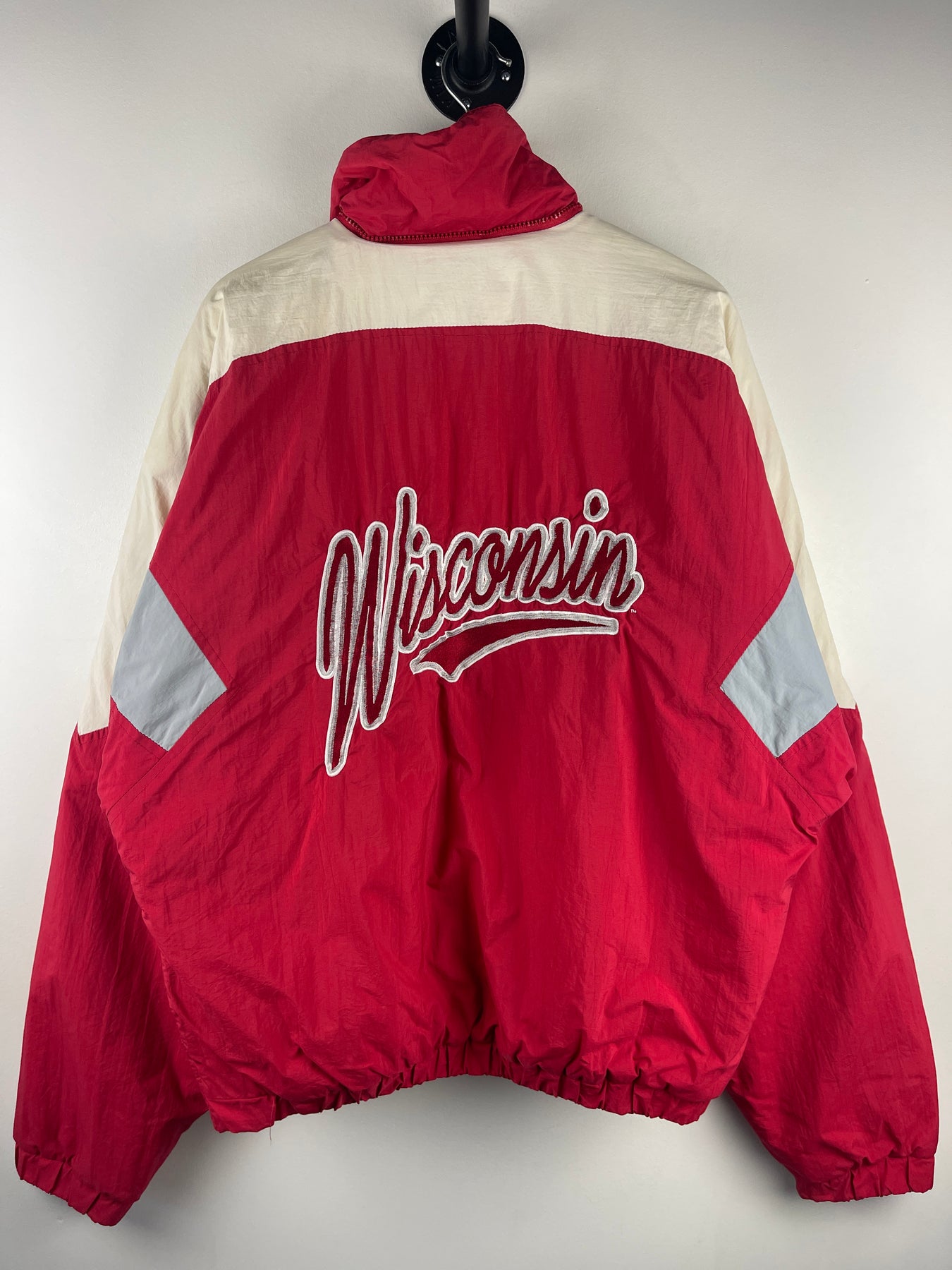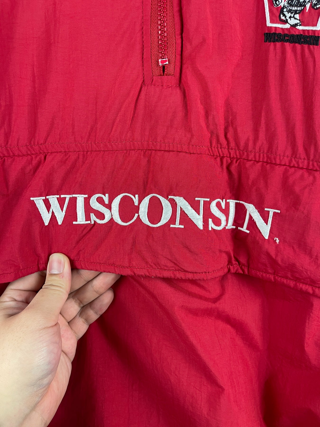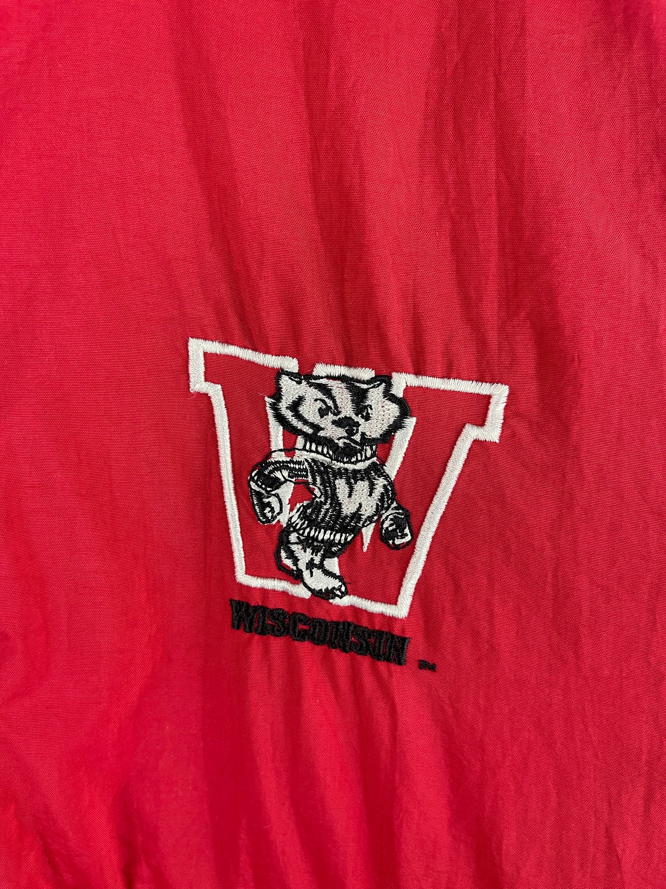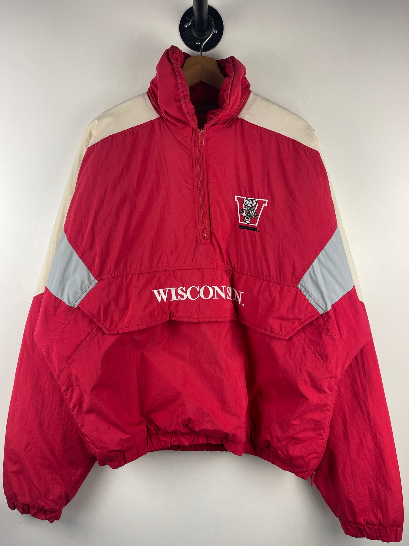 Vintage 90s Red Oak Wisconsin Badgers Red Half Zip Pullover Insulated Jacket