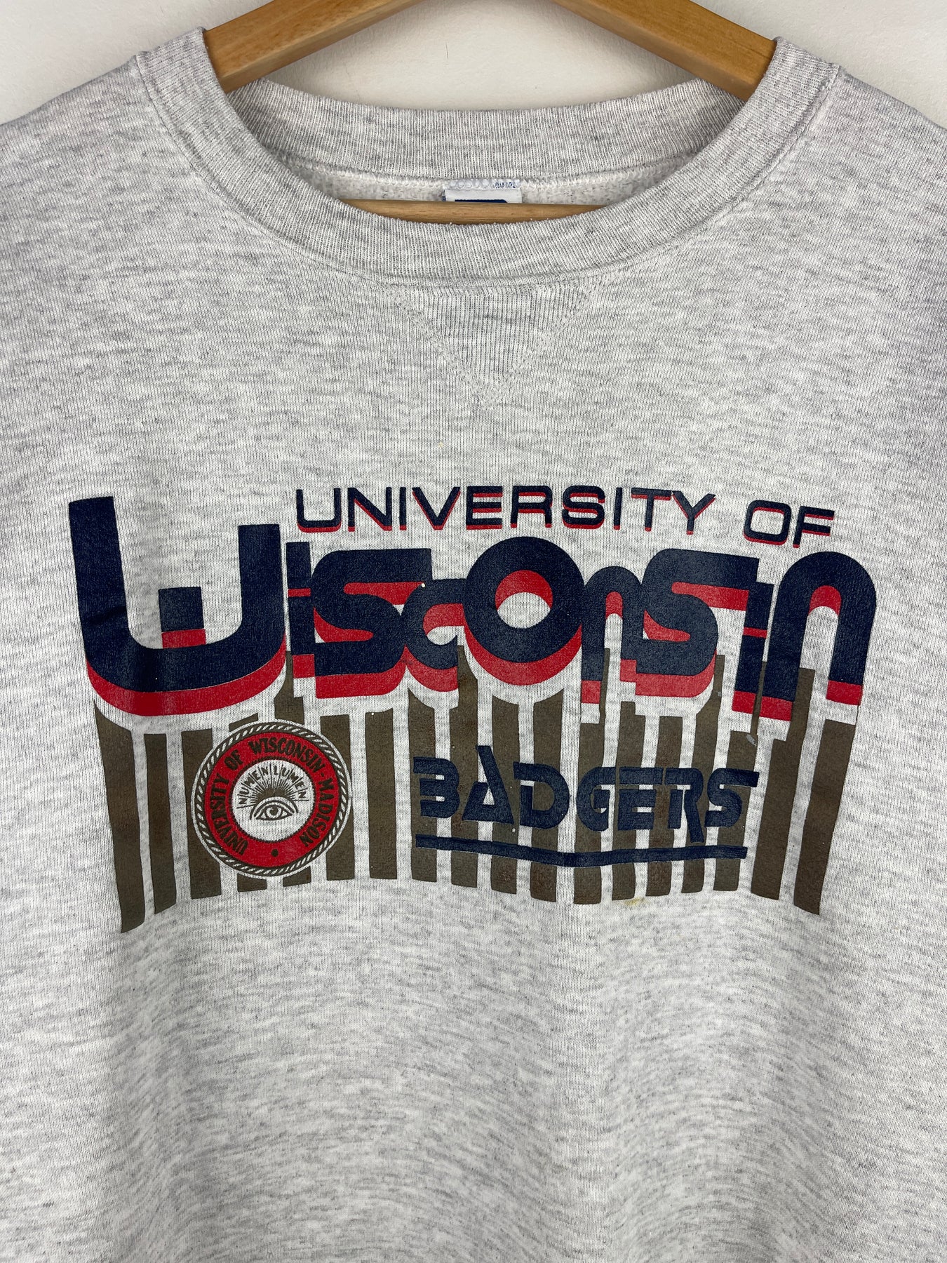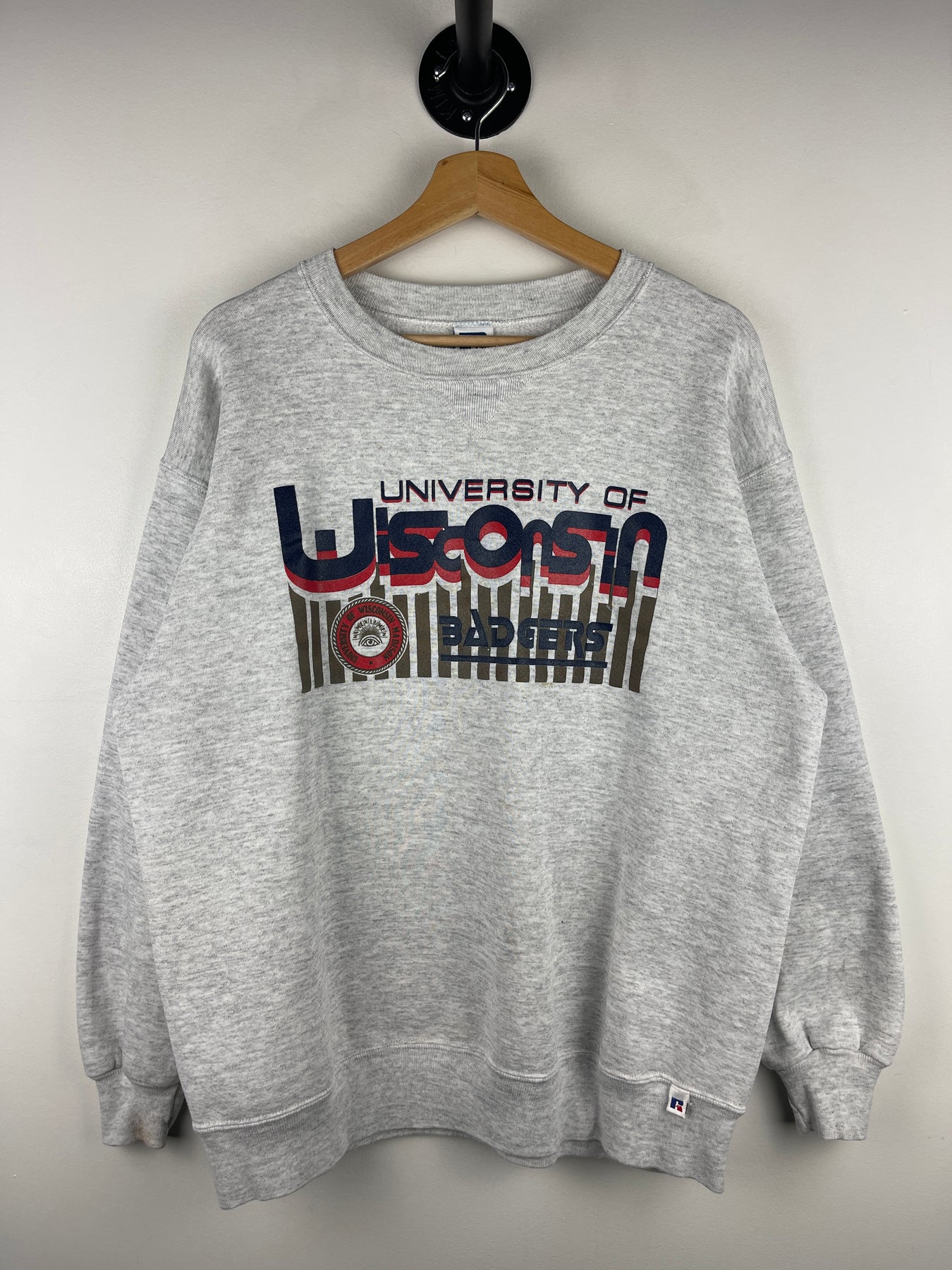 Vintage 90s Russell Athletic Wisconsin Badgers Grey Crewneck