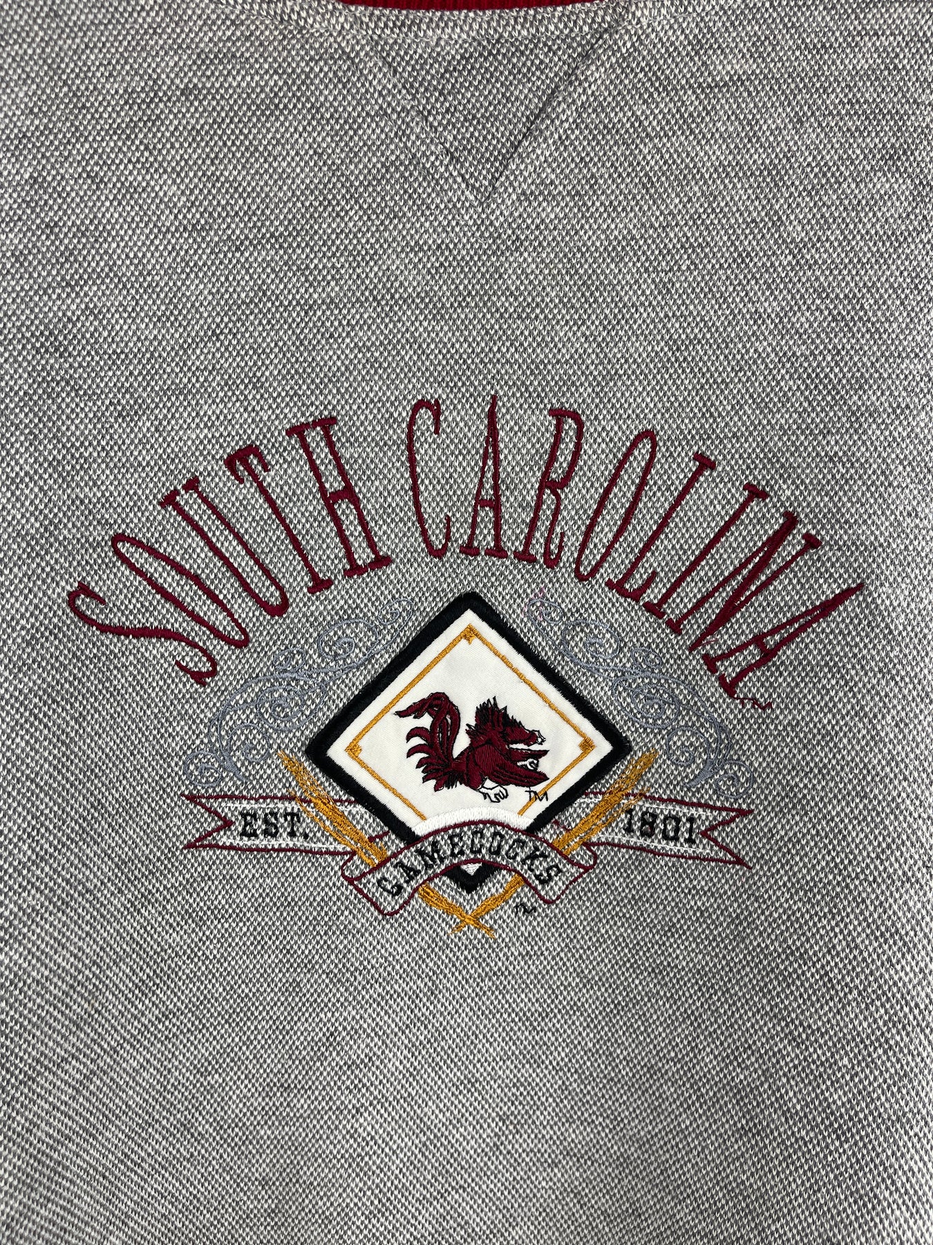 Vintage 90s South Carolina Gamecocks University Embroidered Grey Crewneck