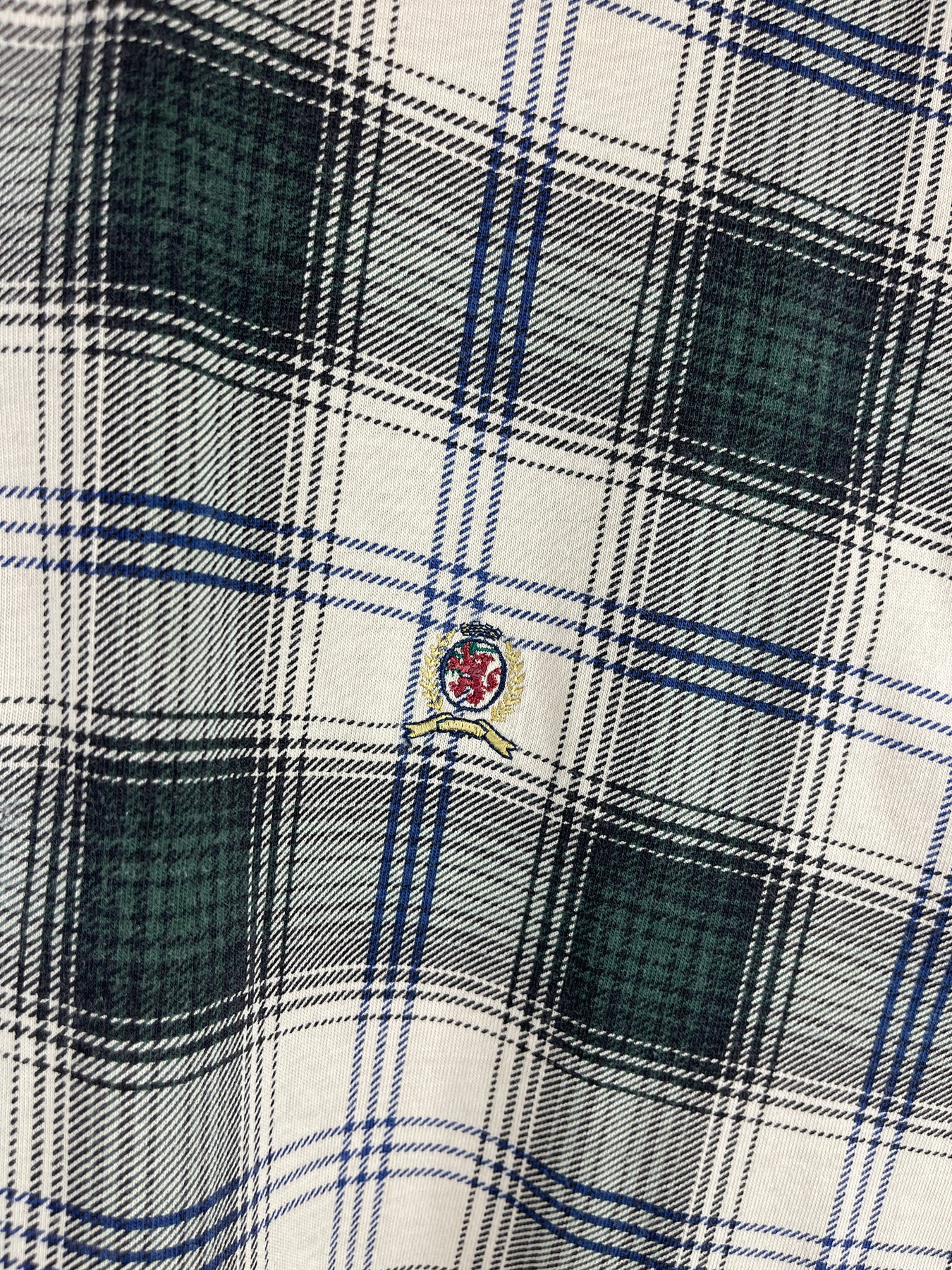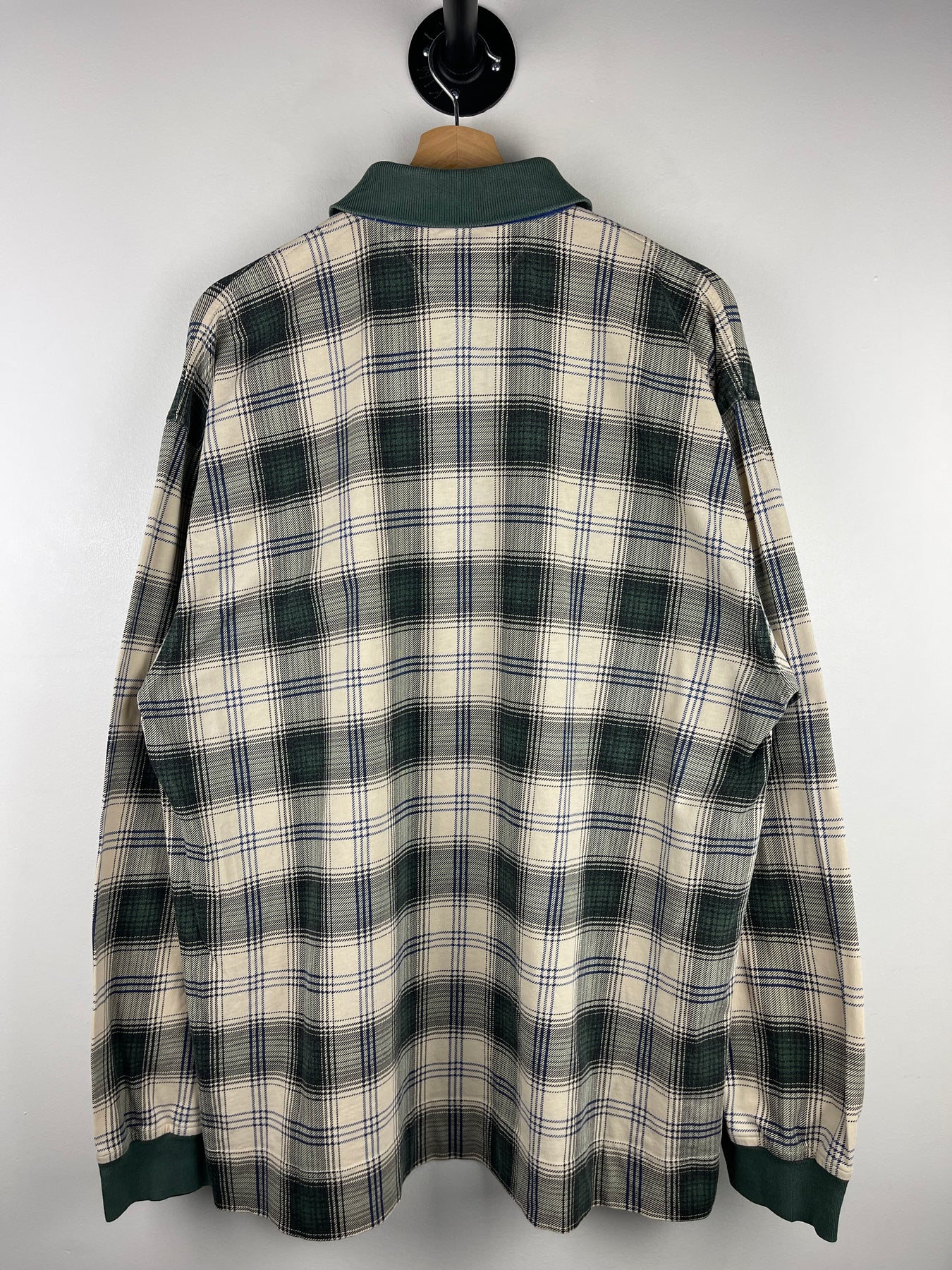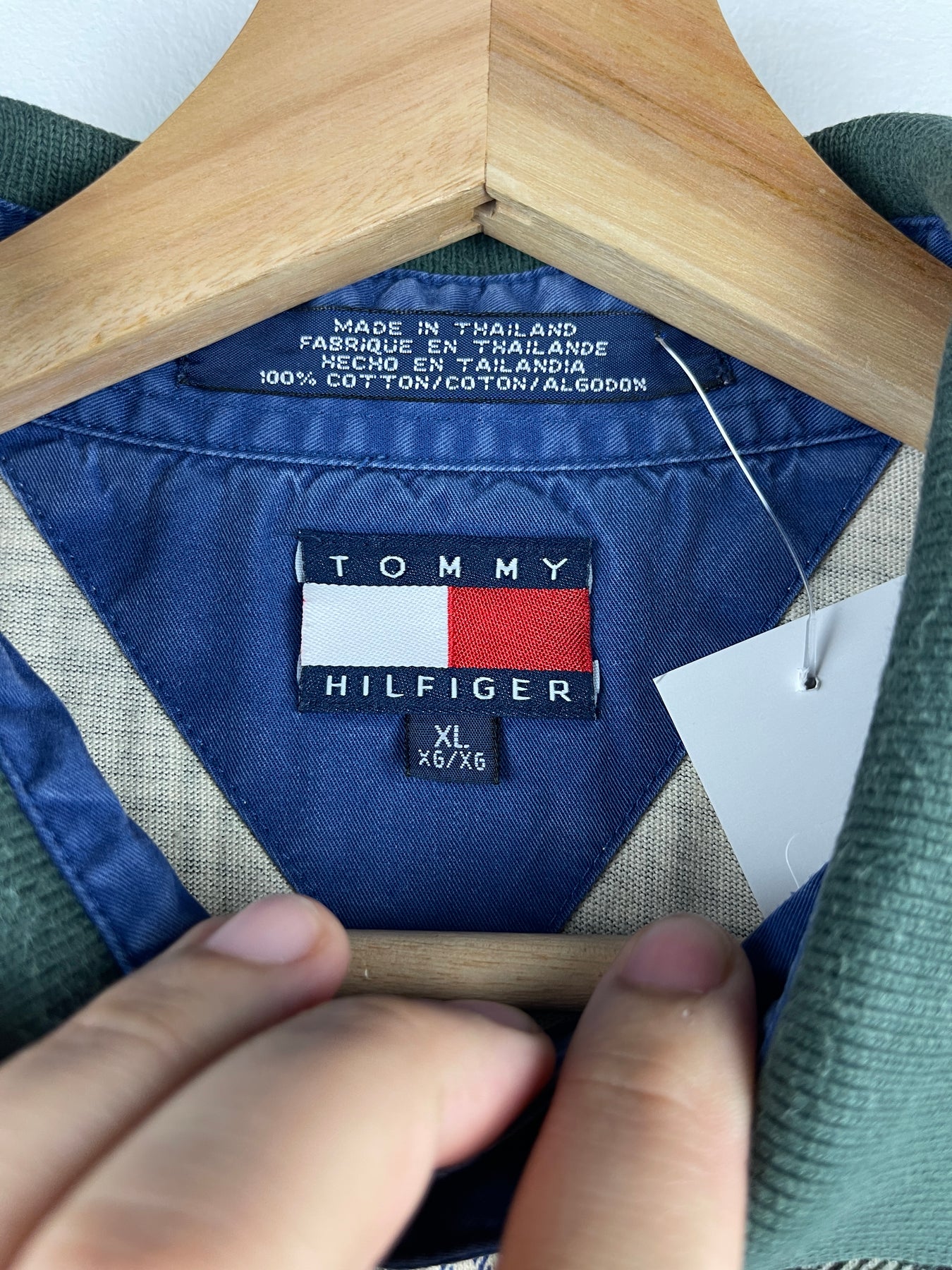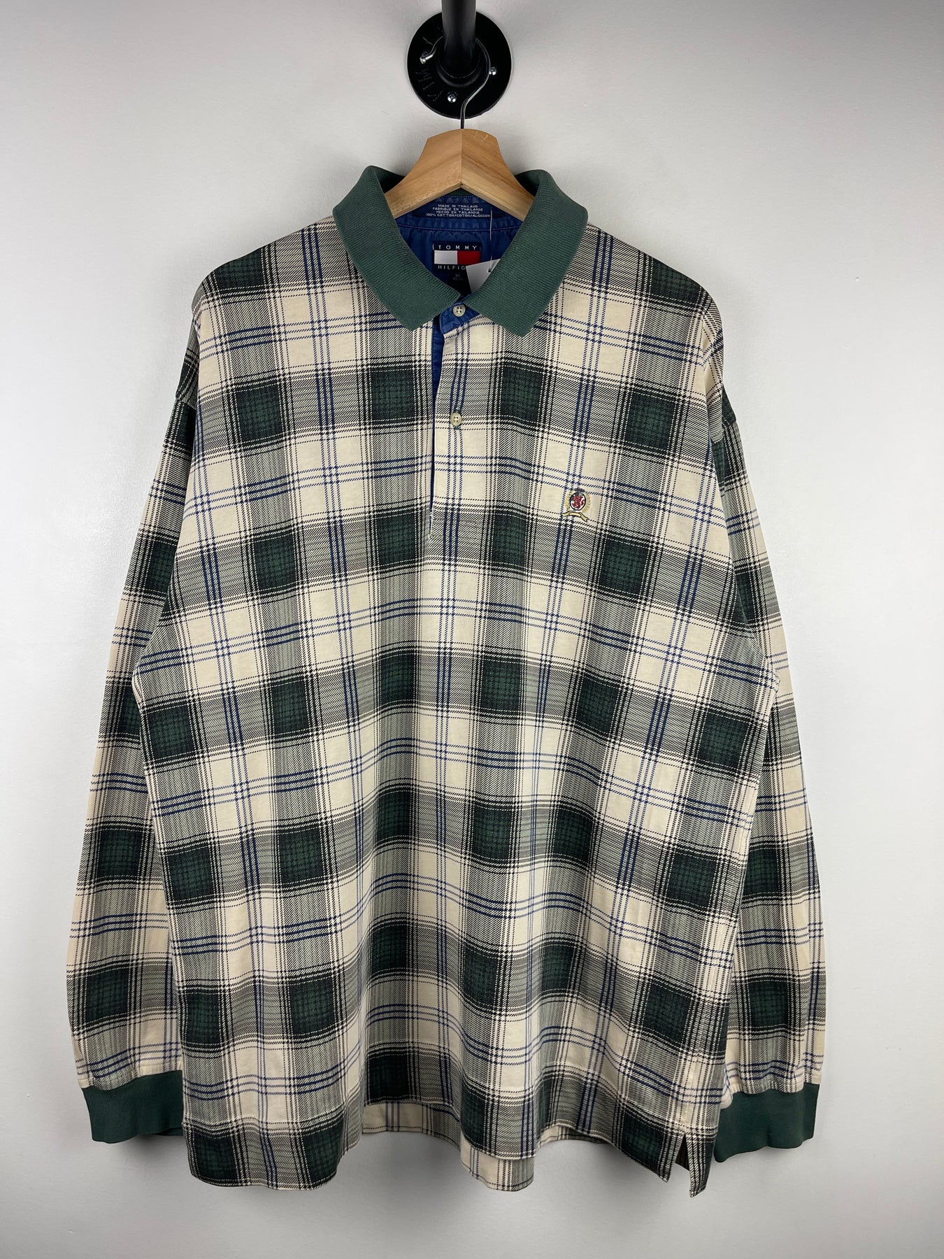 Vintage 90s Tommy Hilfiger Plaid Green Polo Rugby Long Sleeve