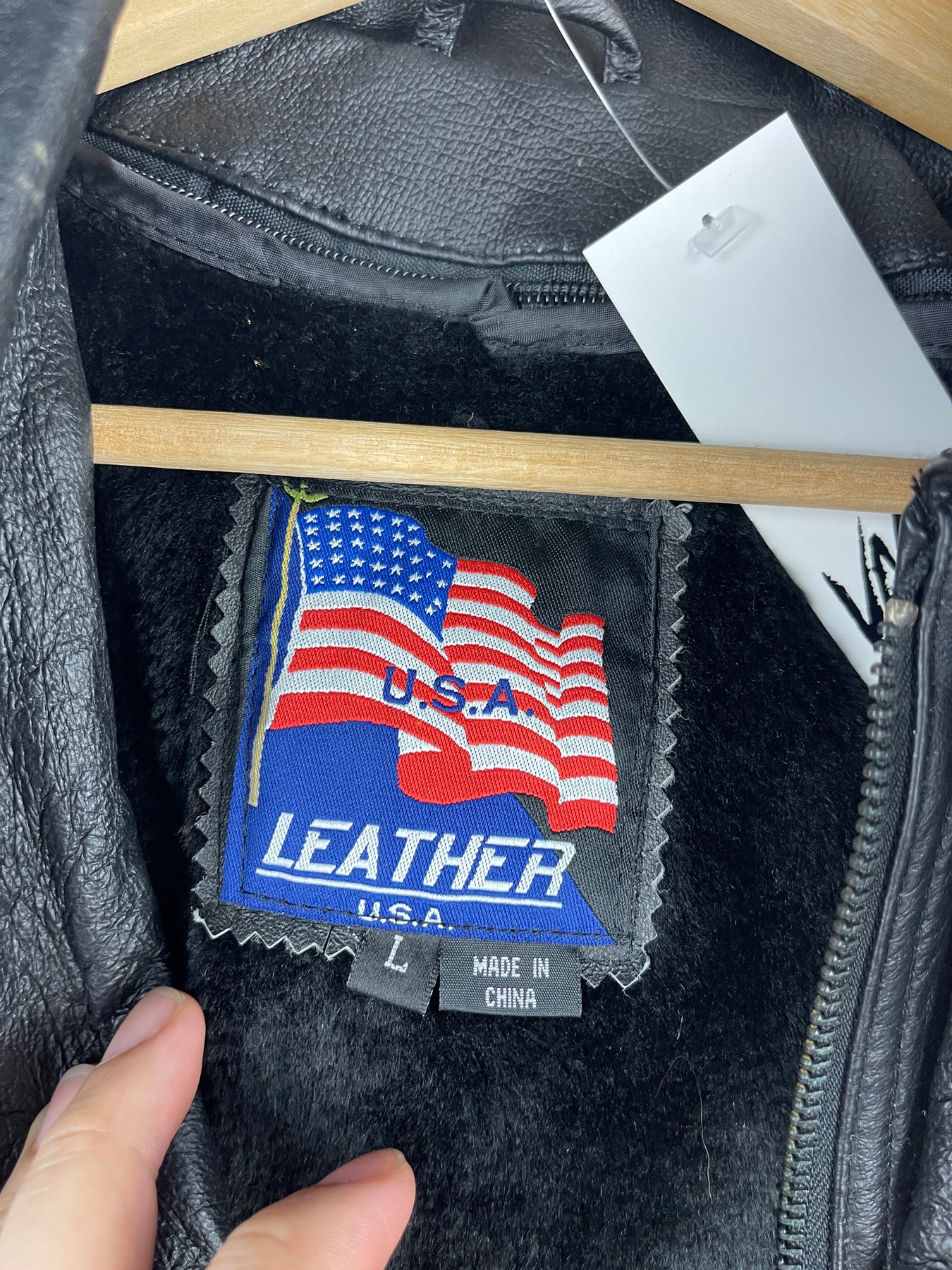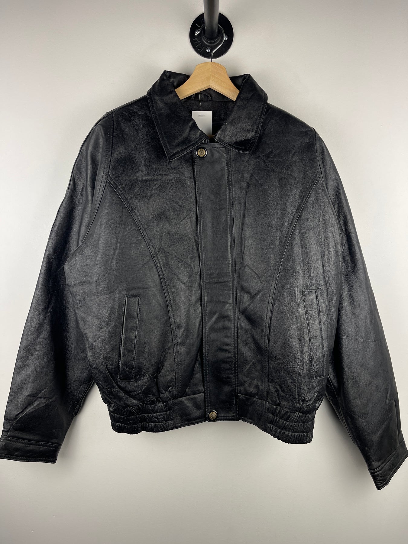 Vintage 90s USA Leather Black Leather Bomber Jacket