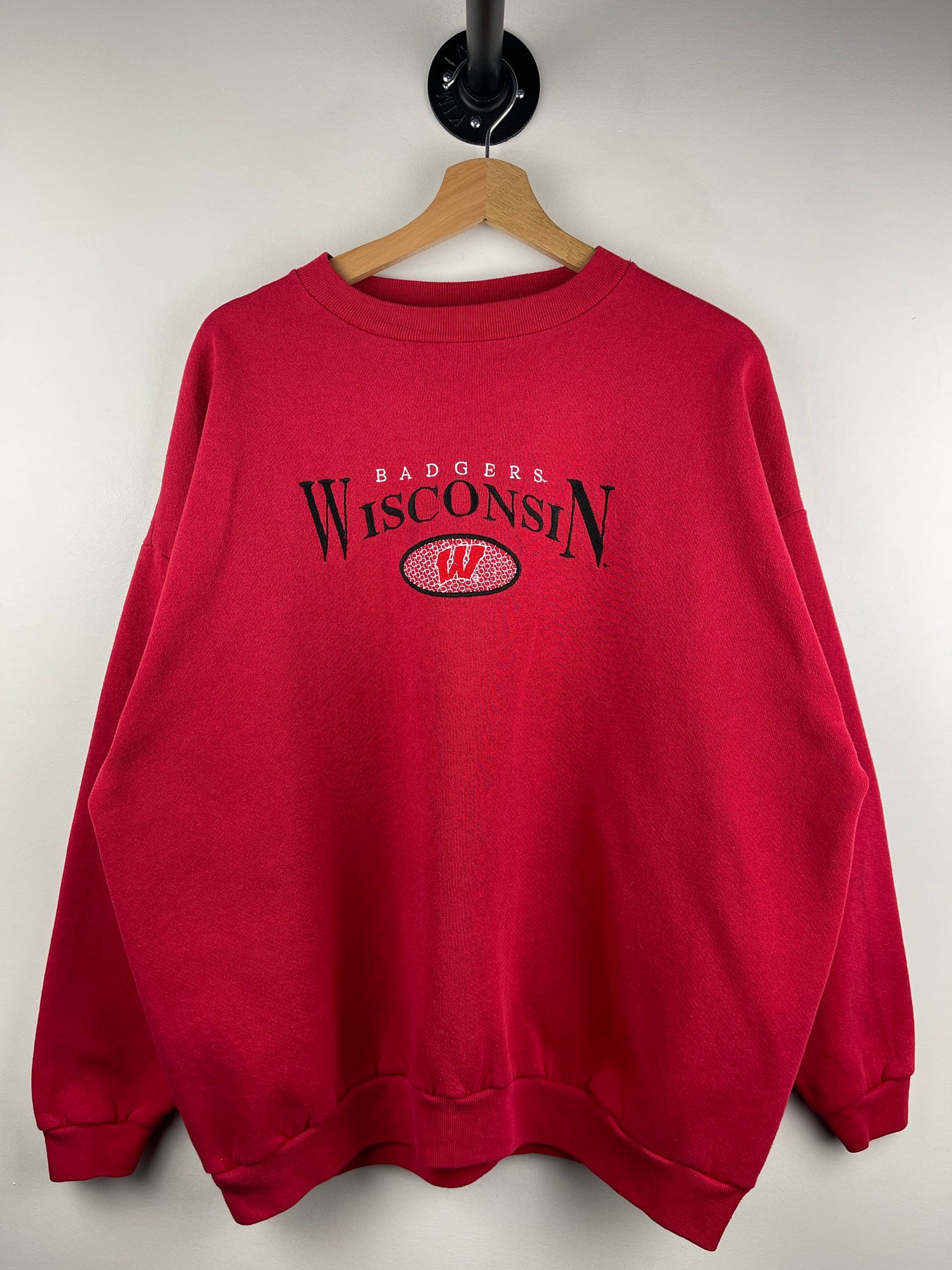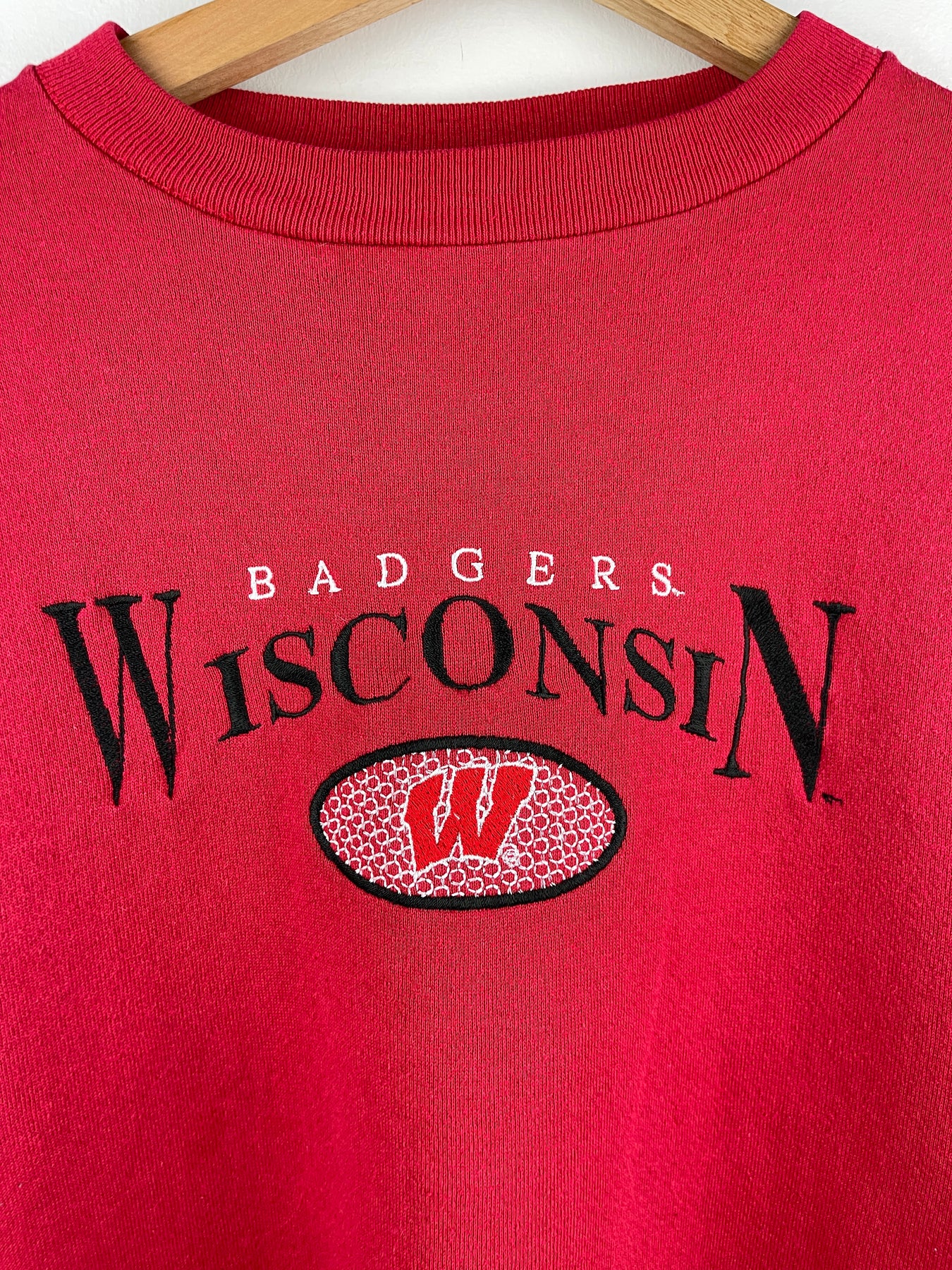Vintage 90s Wisconsin Badgers Embroidered Red Crewneck