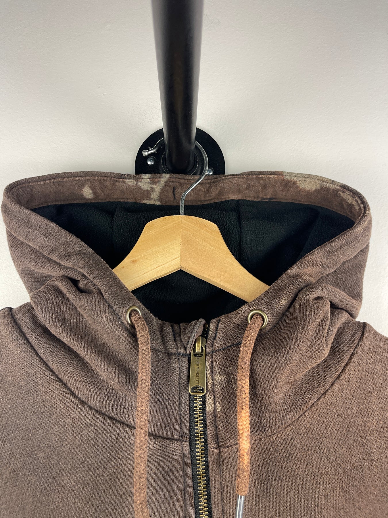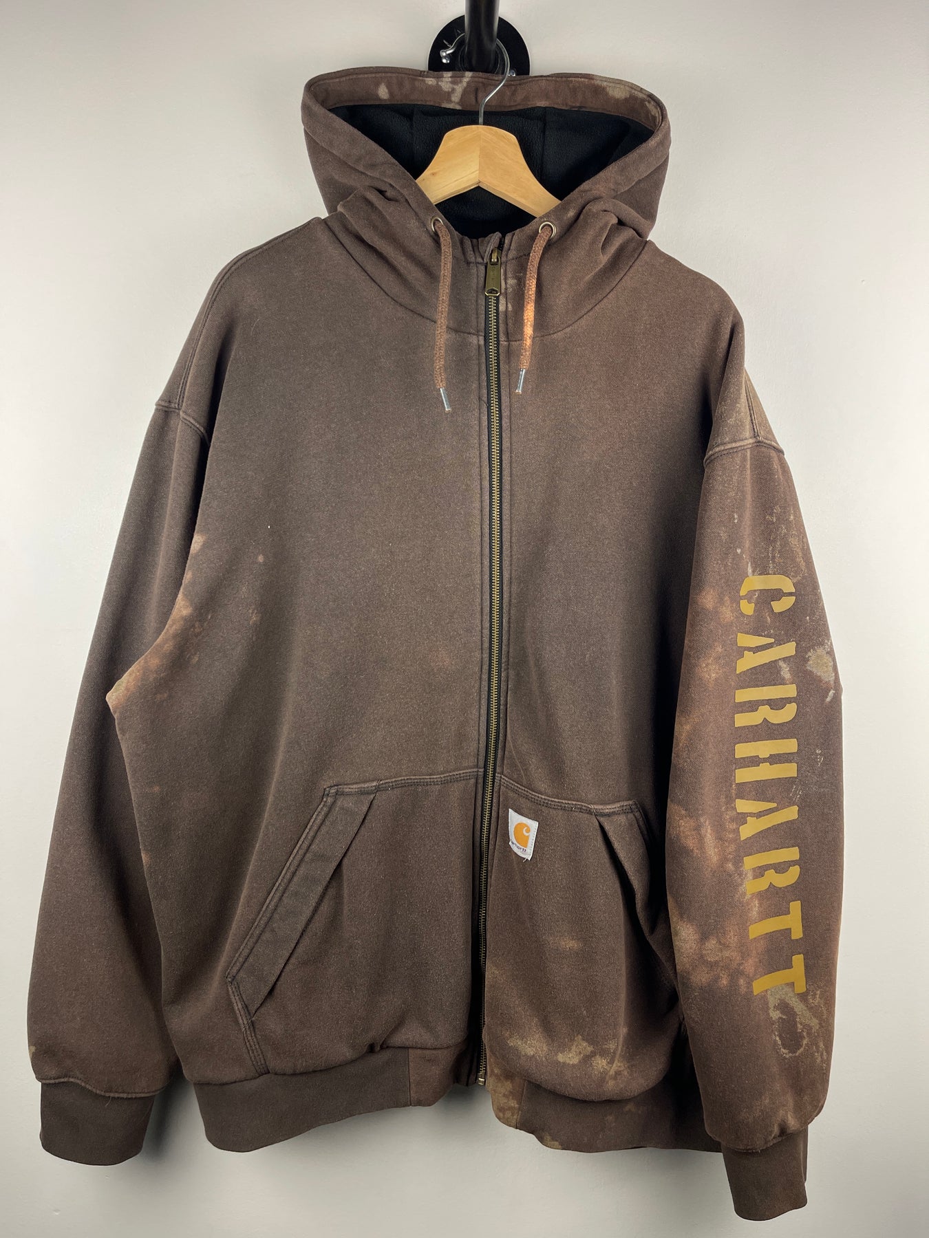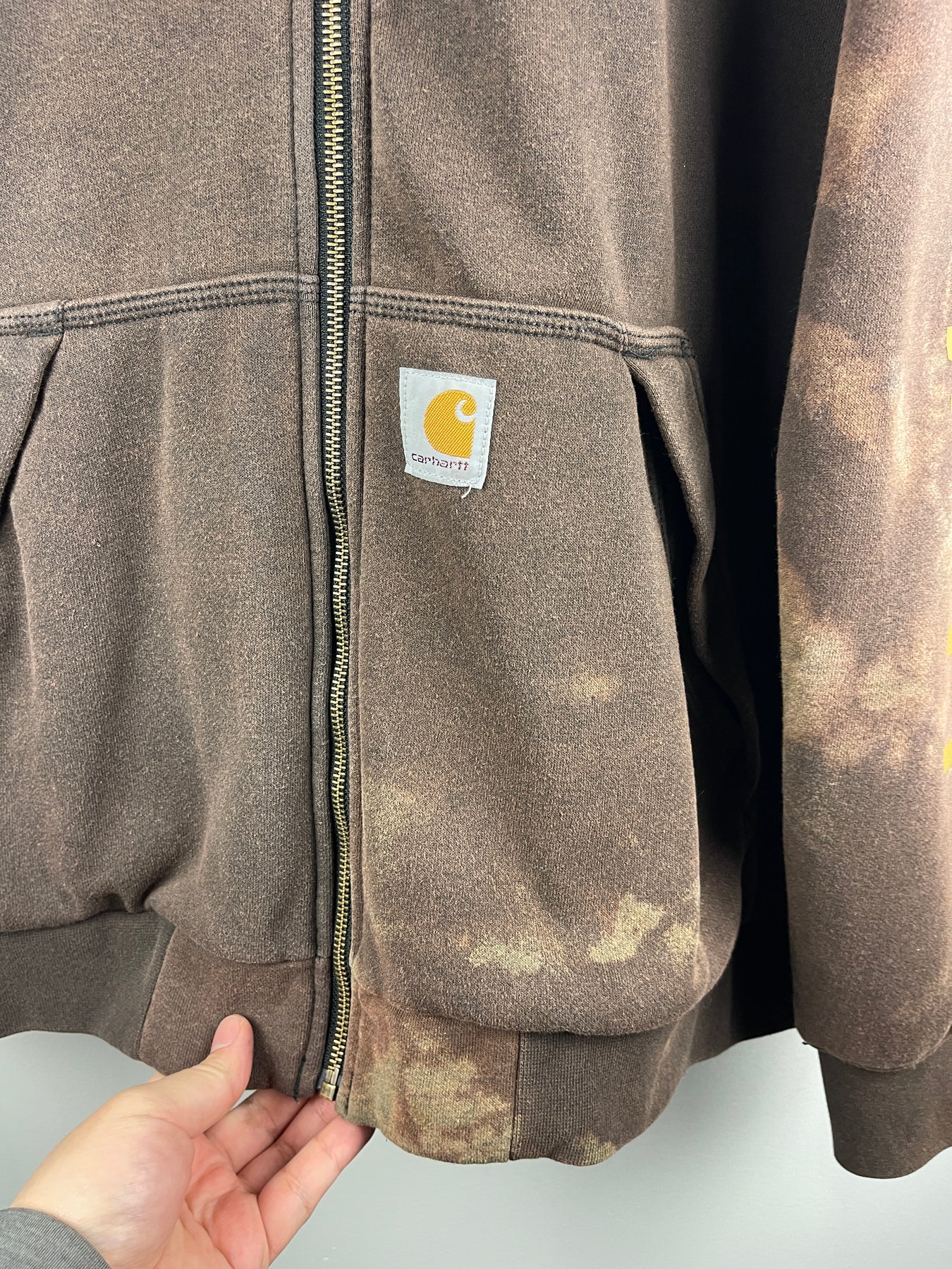 Vintage Carhartt Patch Spellout Fleece Lined Brown Zip Up Hoodie