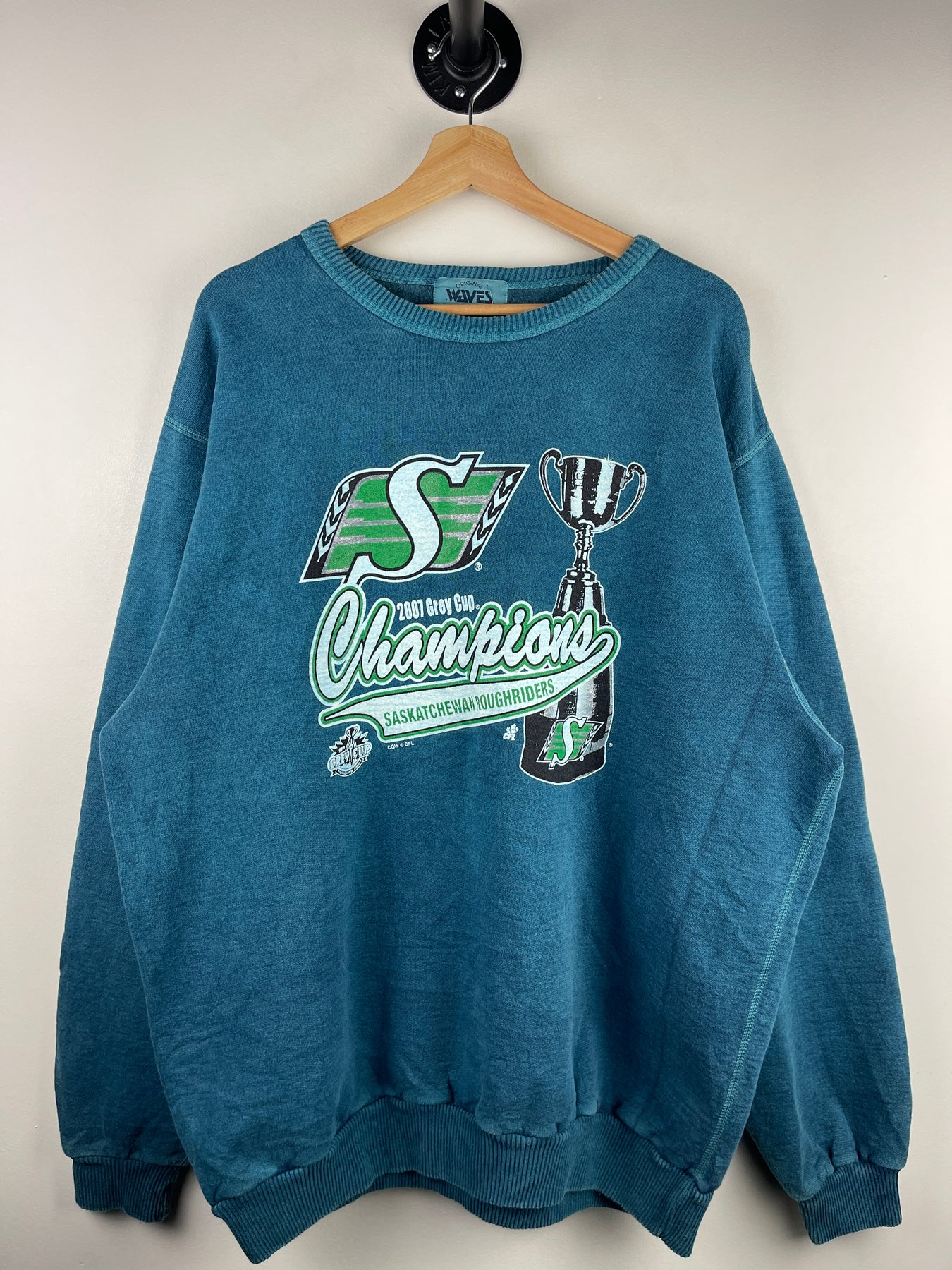 Vintage CFL Saskatchewan Roughriders Grey Cup Champions Teal Crewneck