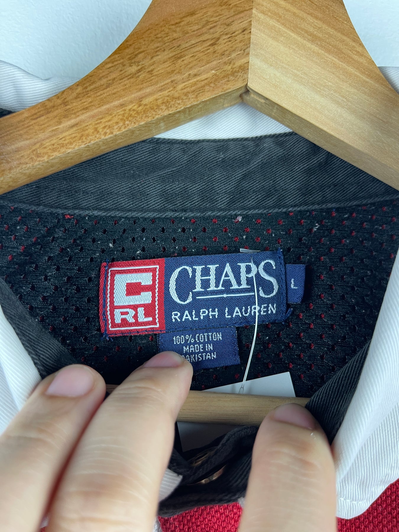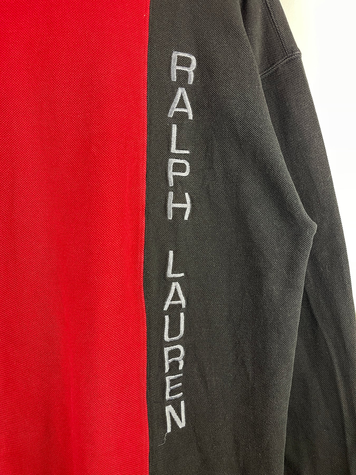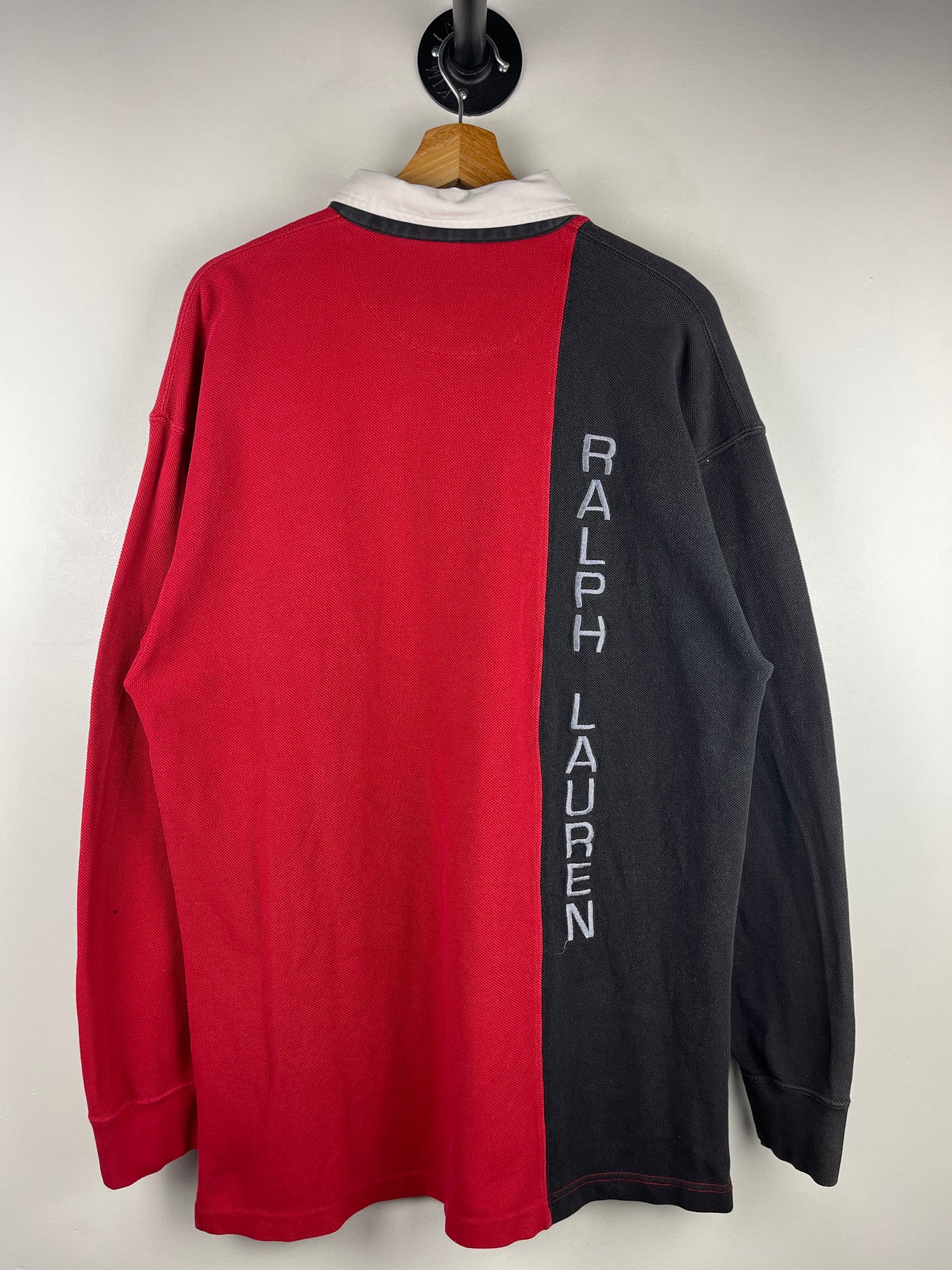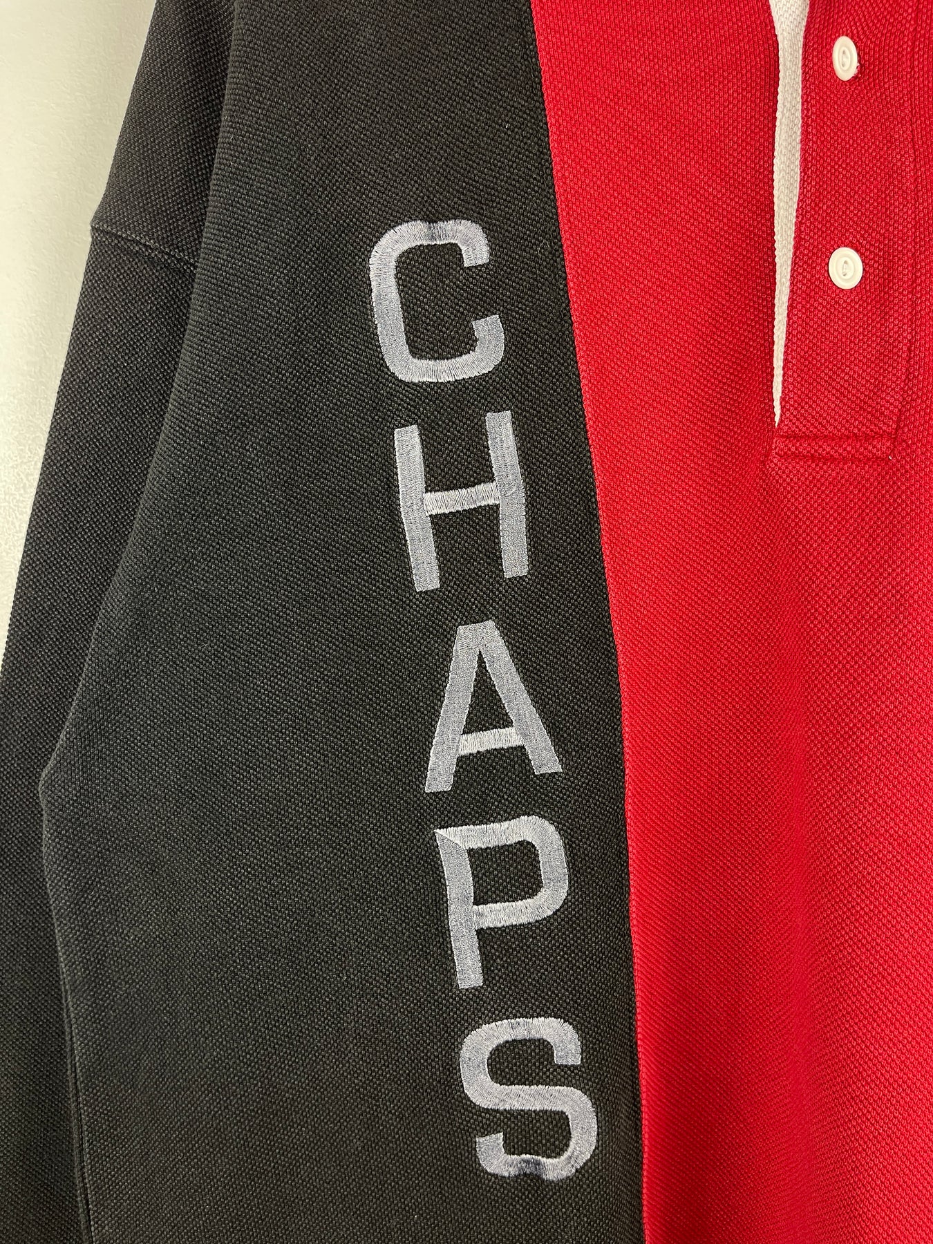 Vintage Chaps Ralph Lauren Embroidered Red & Black Polo Rugby Long Sleeve