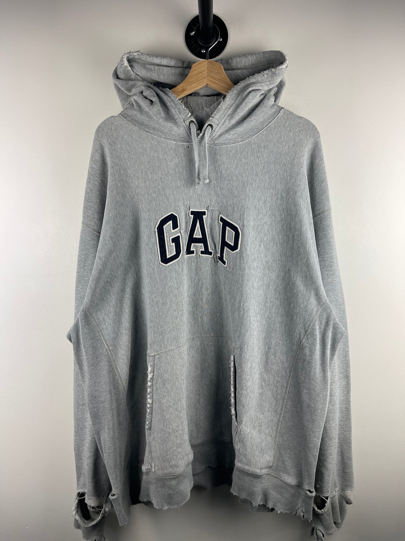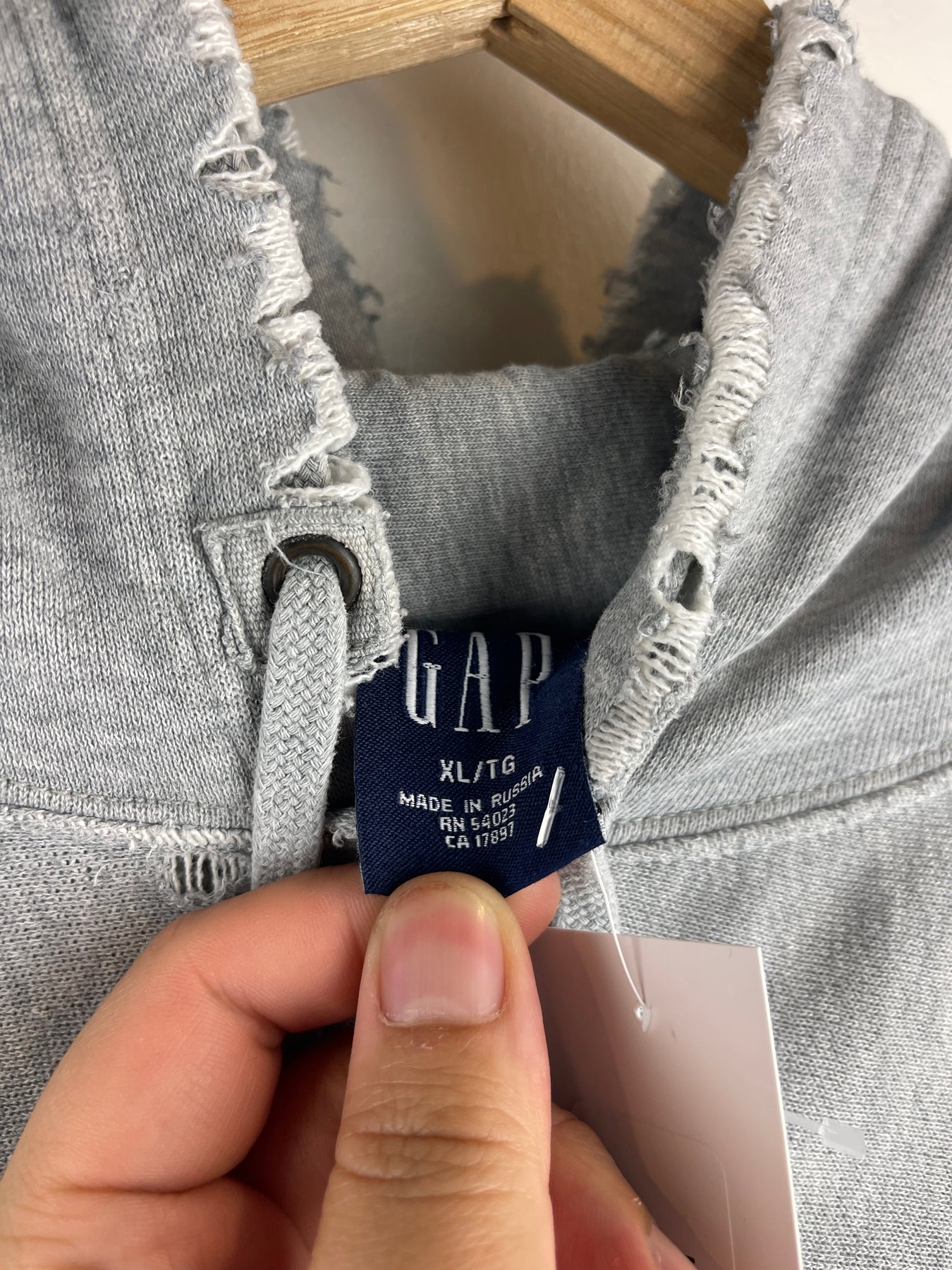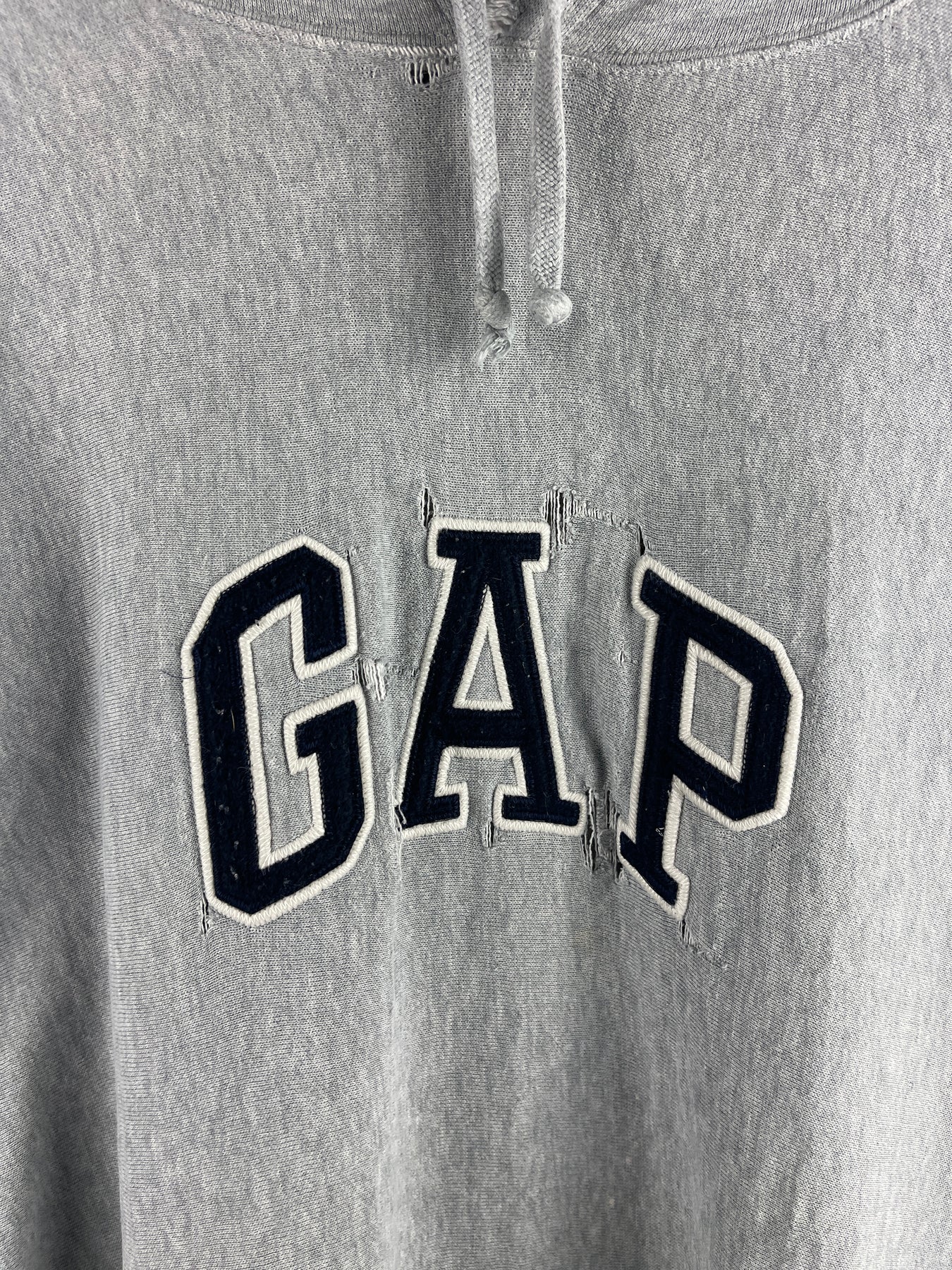 Vintage Gap Spellout Embroidered Thrashed Grey Hoodie