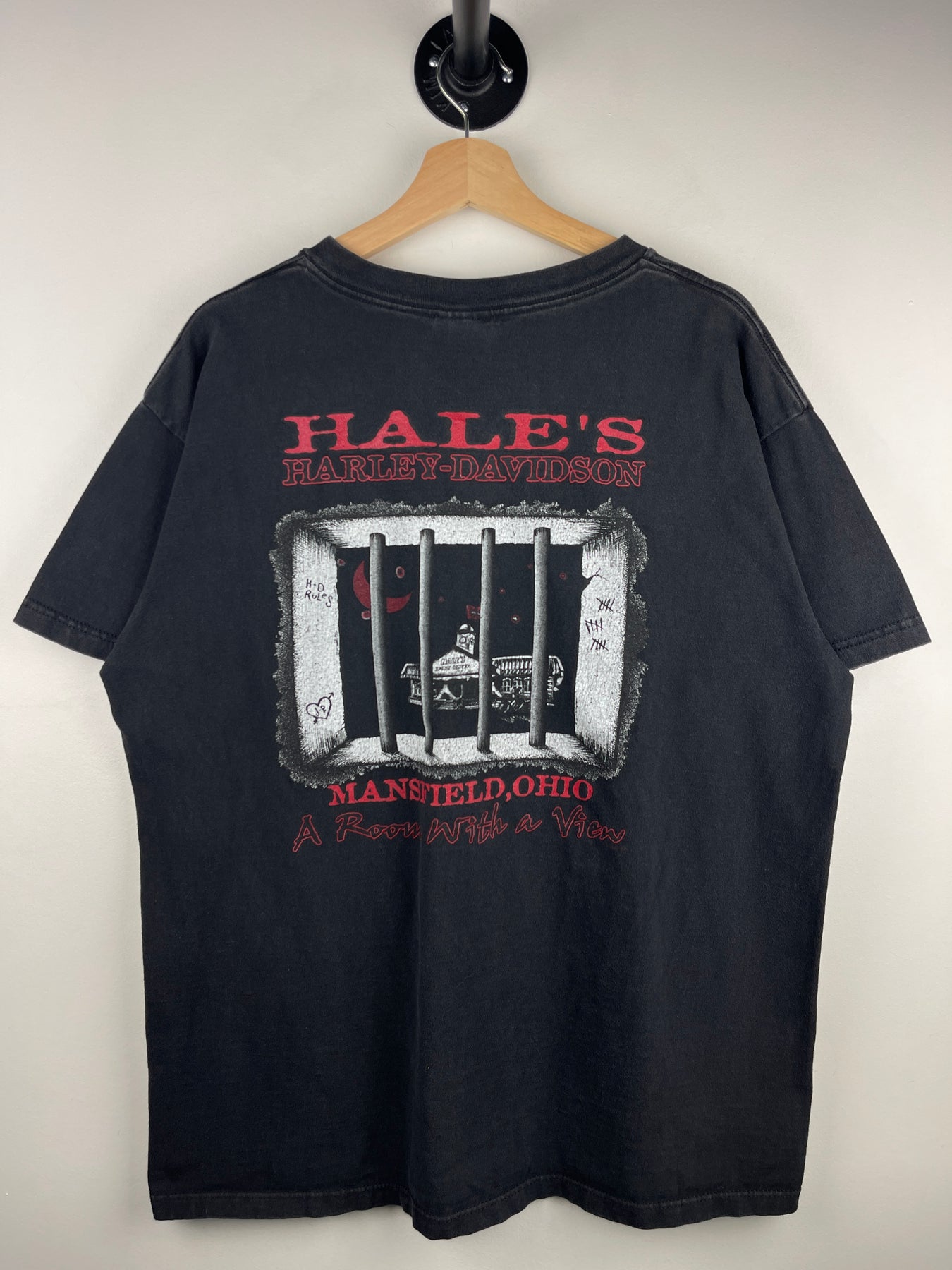 Vintage Harley Davidson Jail Mansfield Ohio Black Tee