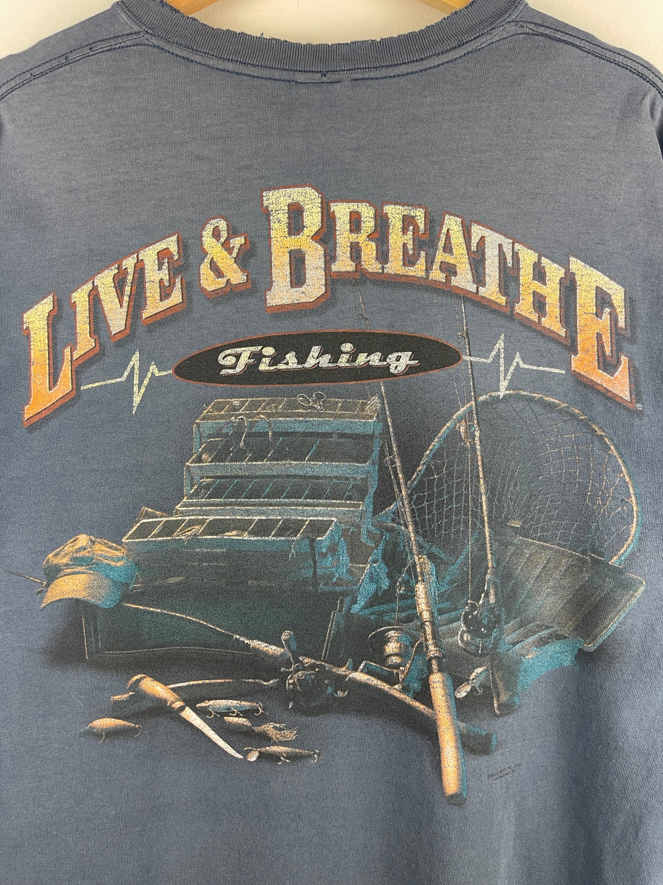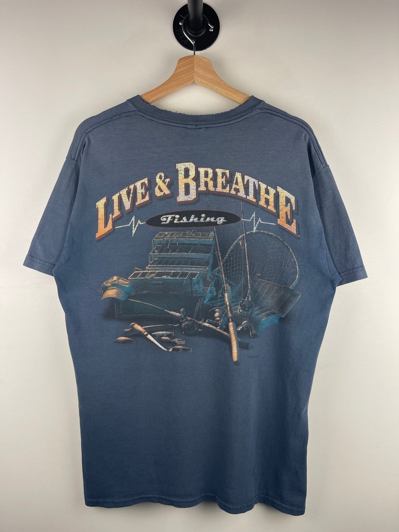 Vintage Live & Breathe Fishing Faded Navy Tee