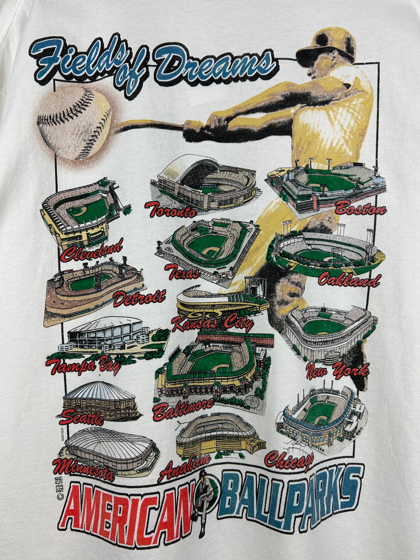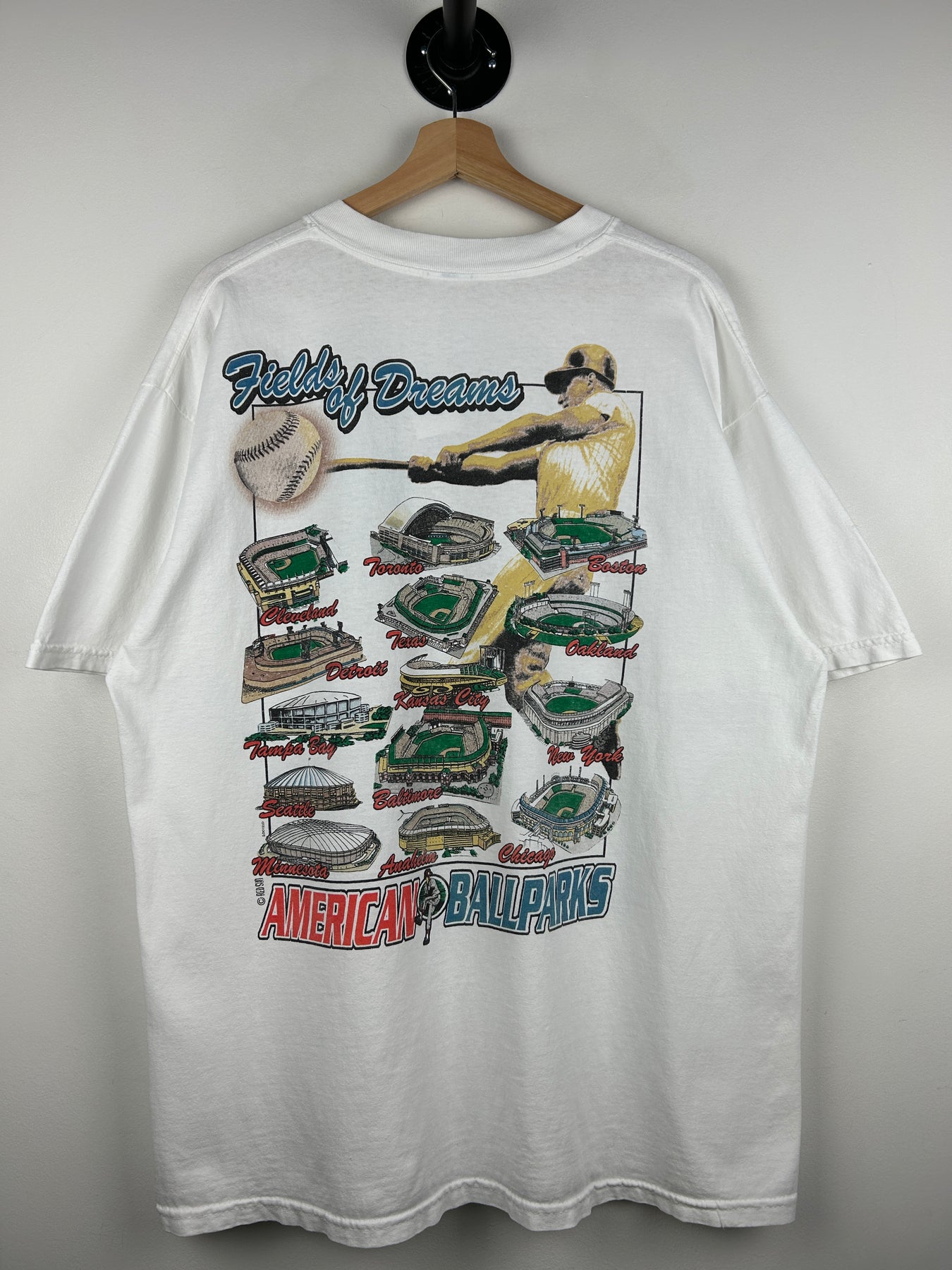 Vintage MLB American League Ballparks Baseball Fields White Tee
