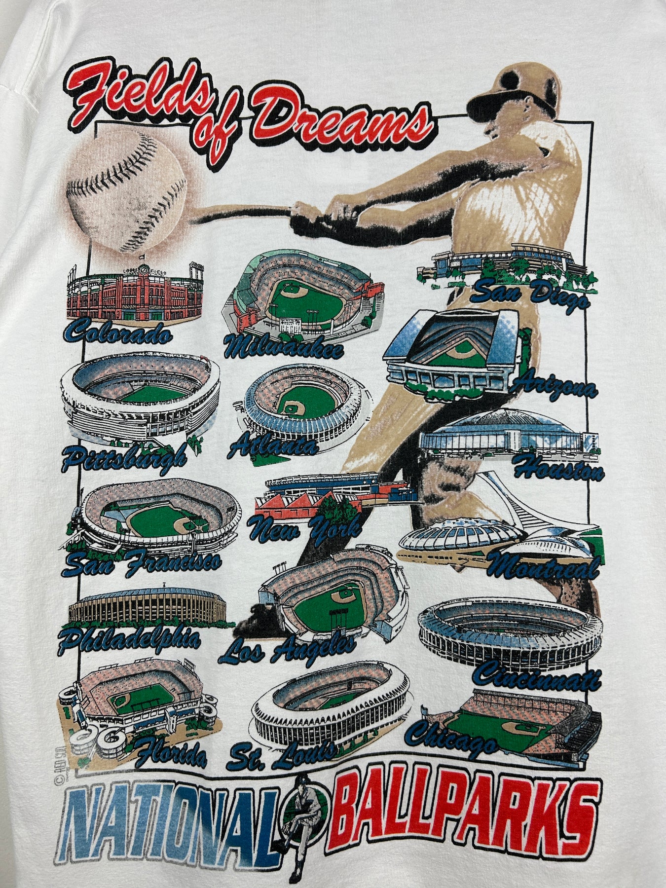 Vintage MLB National League Ballparks Baseball Fields White Tee