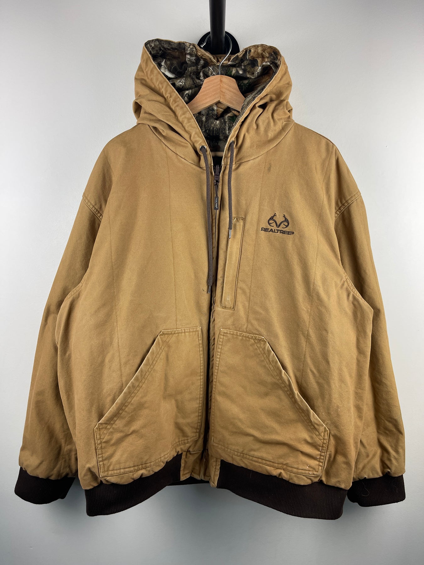 Vintage Real Tree Camo & Beige Reversible Hooded Work Jacket