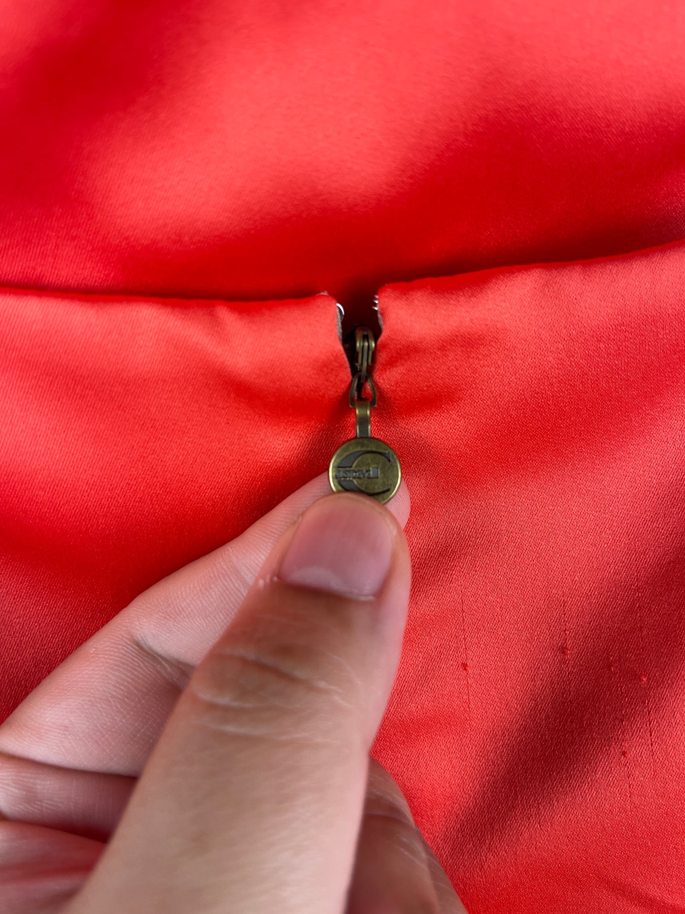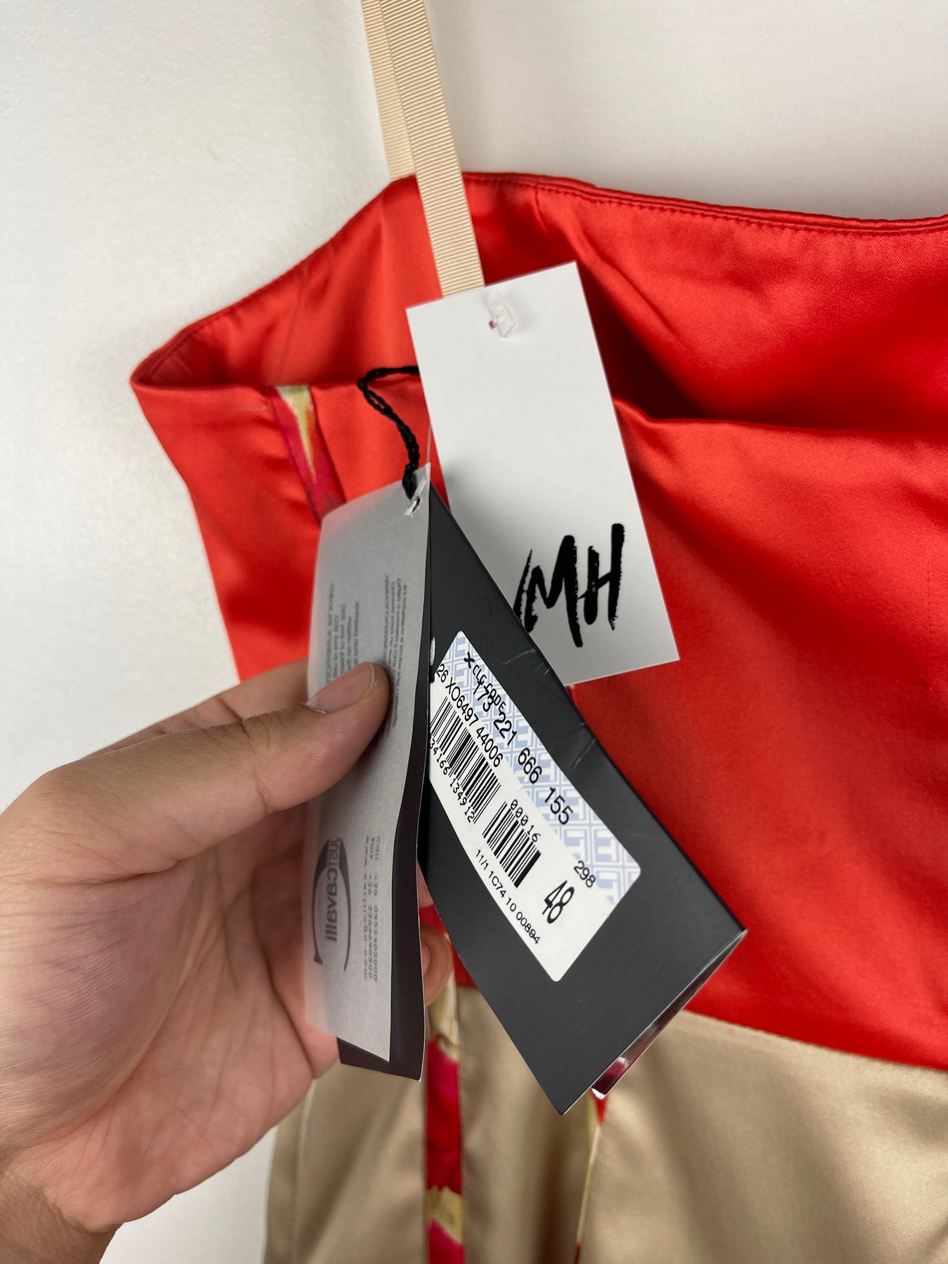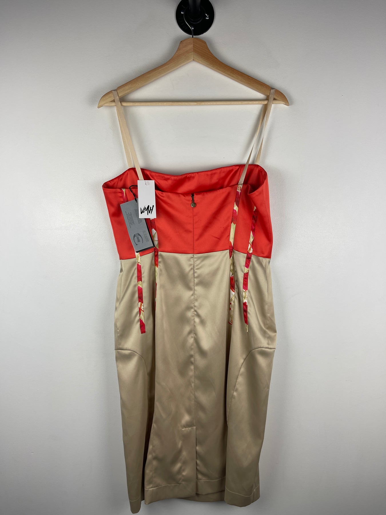 Vintage Roberto Cavalli Just Cavalli Women's Beige & Red Satin Midi-Dress