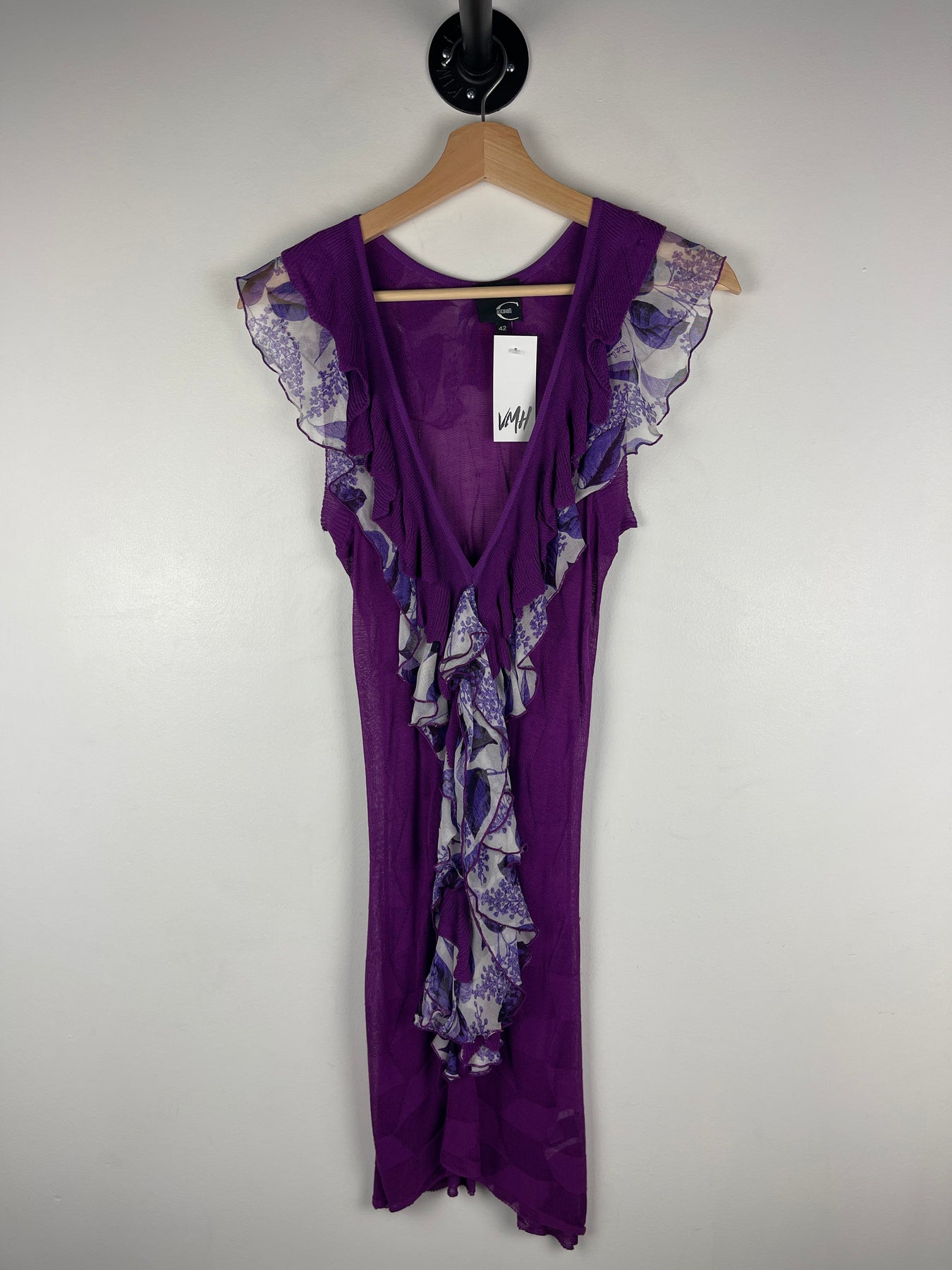 Vintage Roberto Cavalli Just Cavalli Women's Purple Ruffled Mini Dress