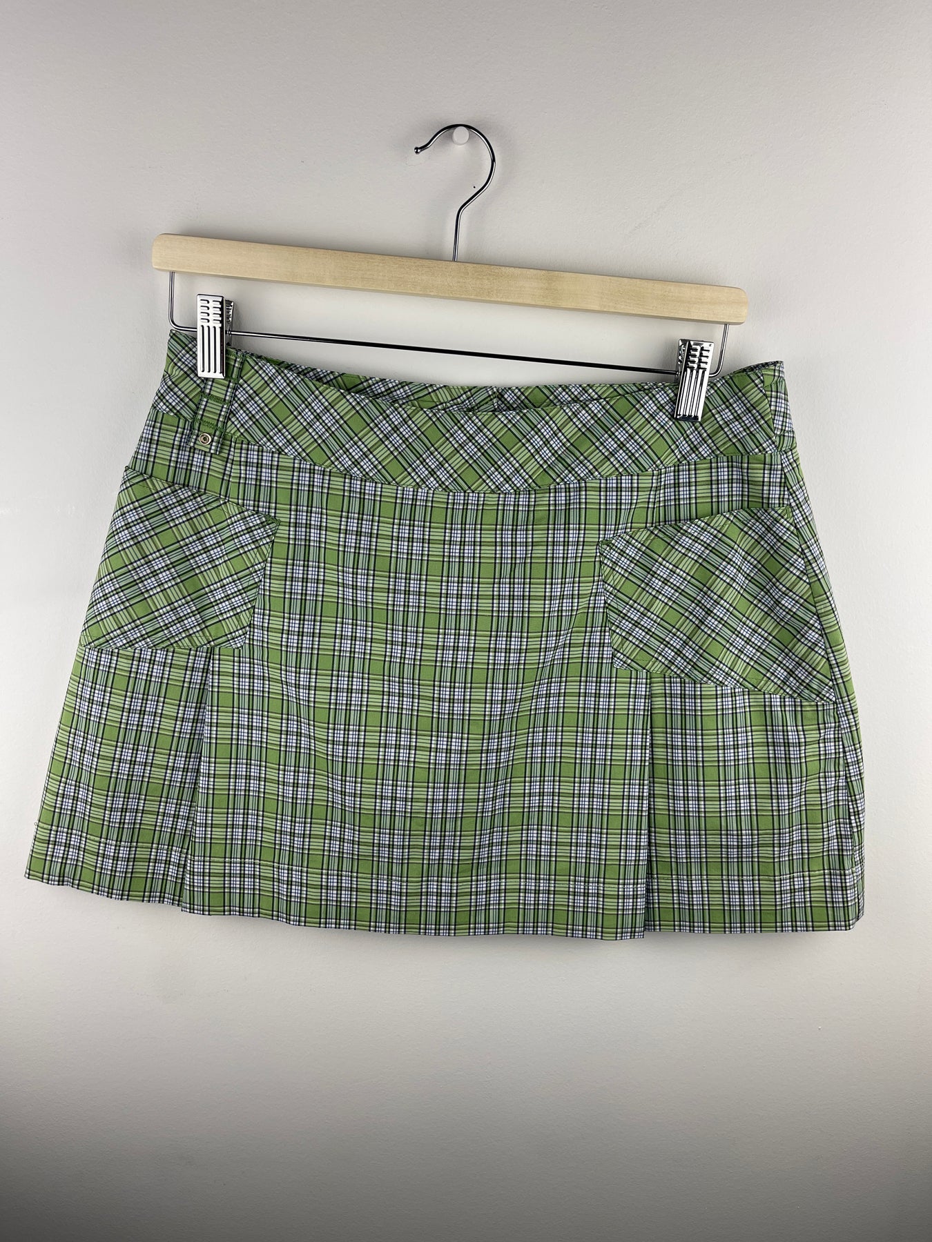 Vintage Lole Golf Green & White Plaid Pleated Women’s Mini Skort