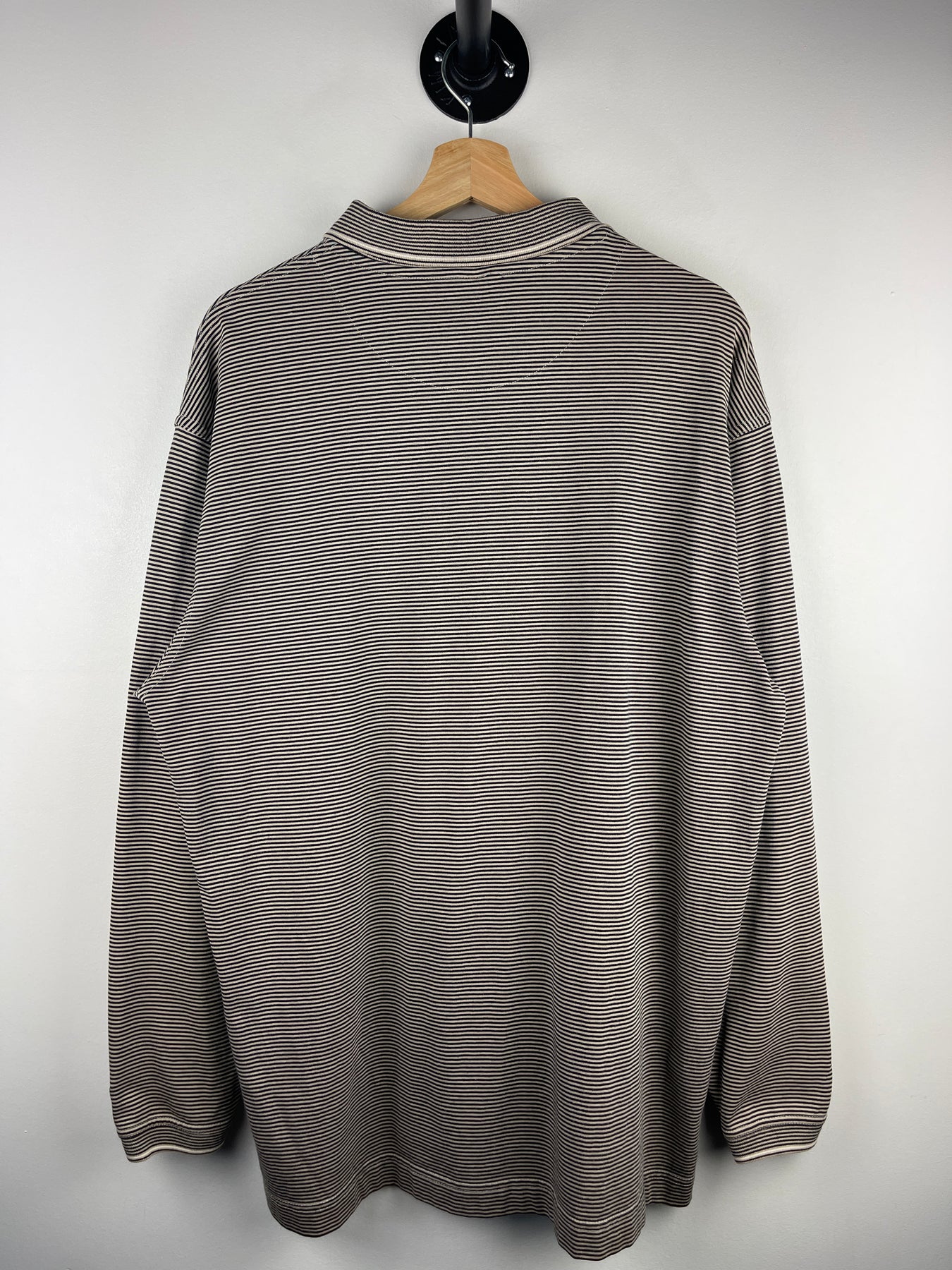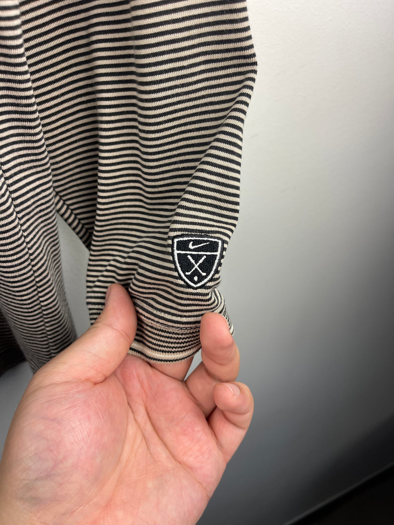 Vintage Nike Golf Beige & Black Striped Long Sleeve Polo Shirt