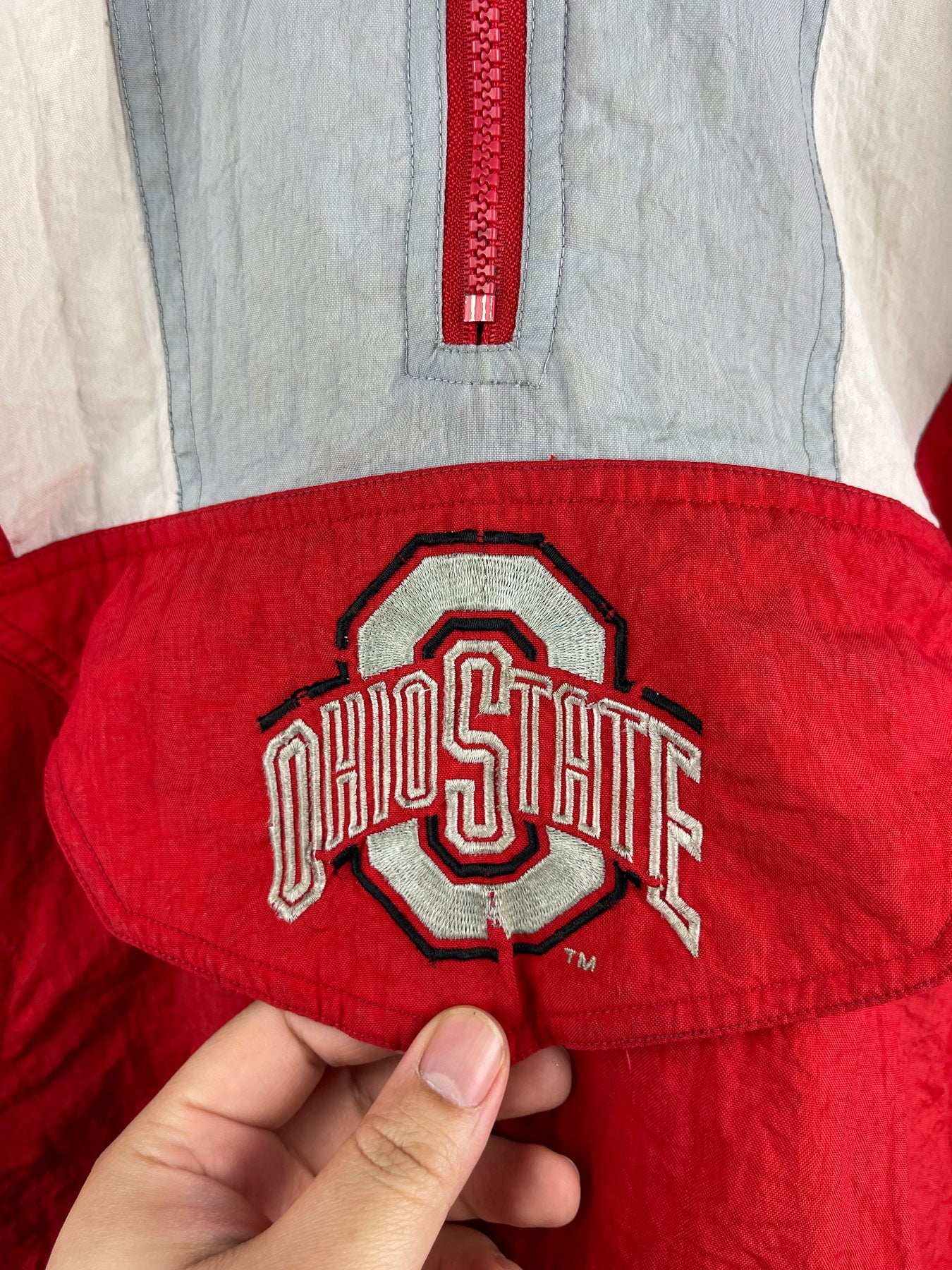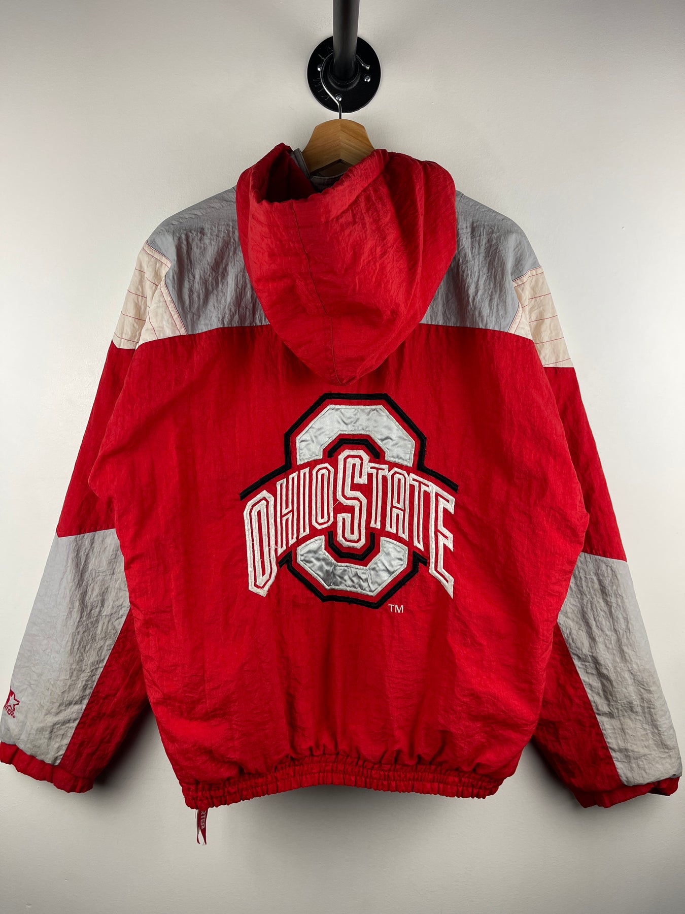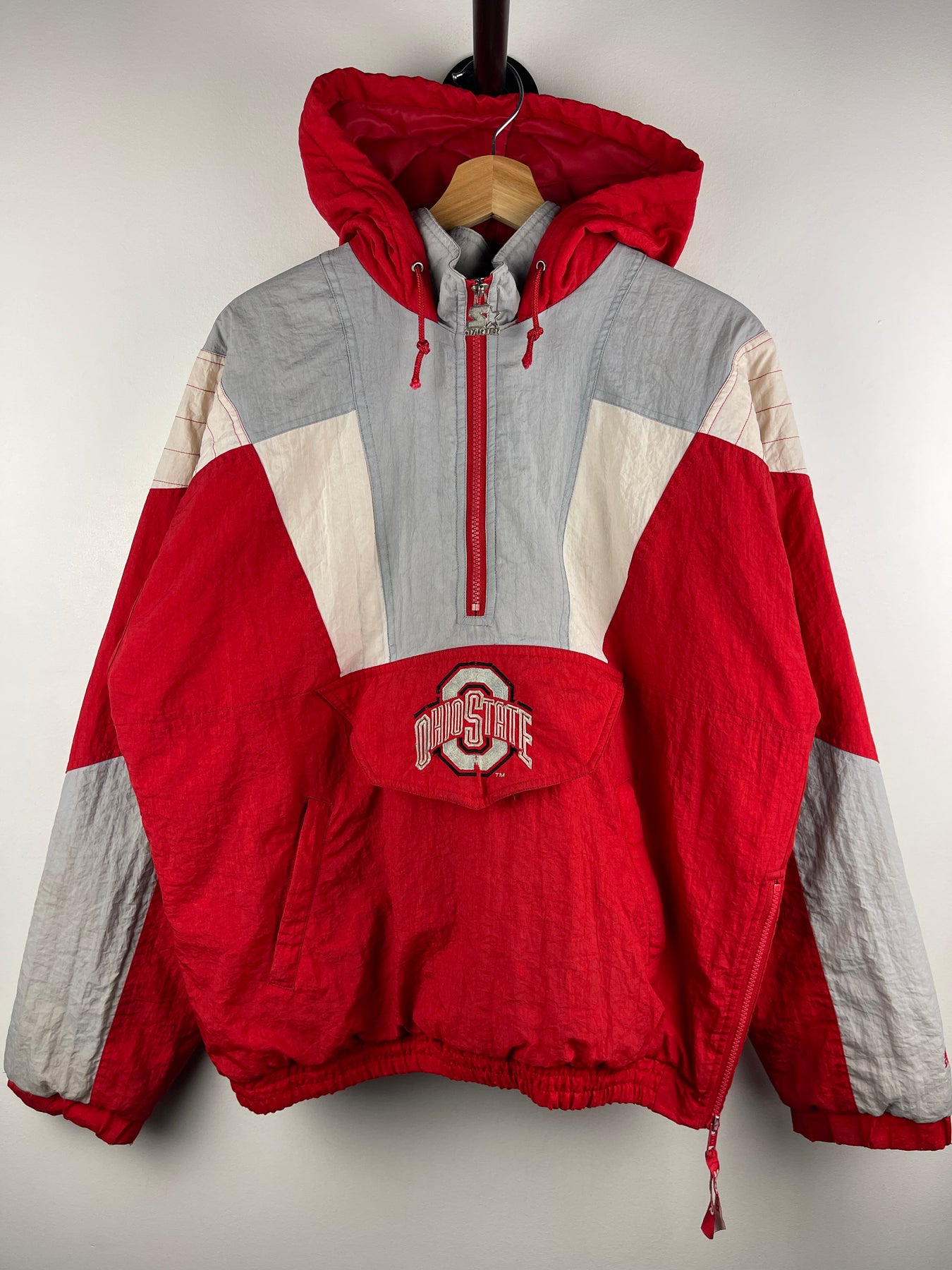 Vintage 90s Starter Ohio State University Red & Grey Pullover Hooded Jacket