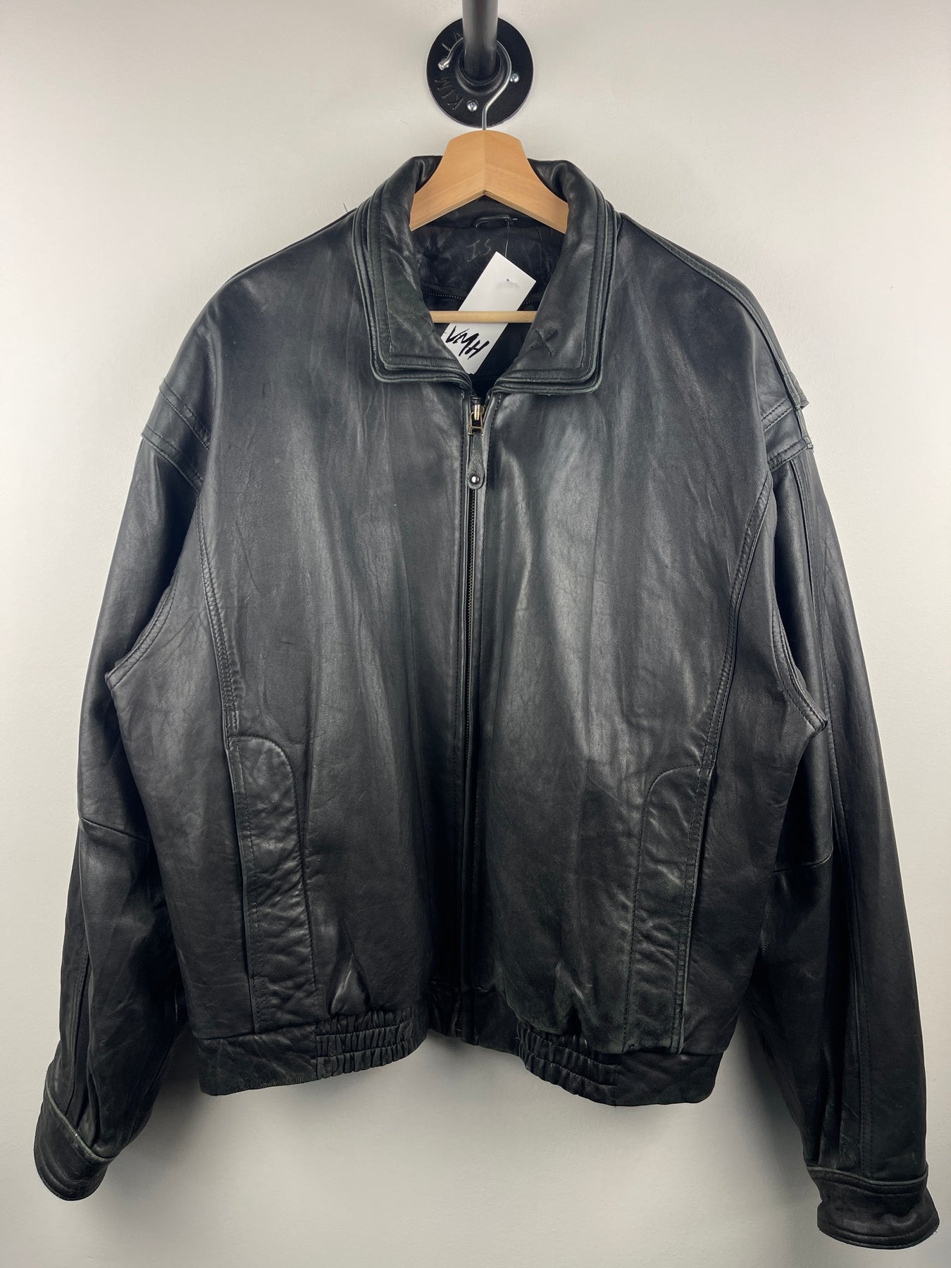 Vintage 90s Wilsons Black Leather Bomber Jacket