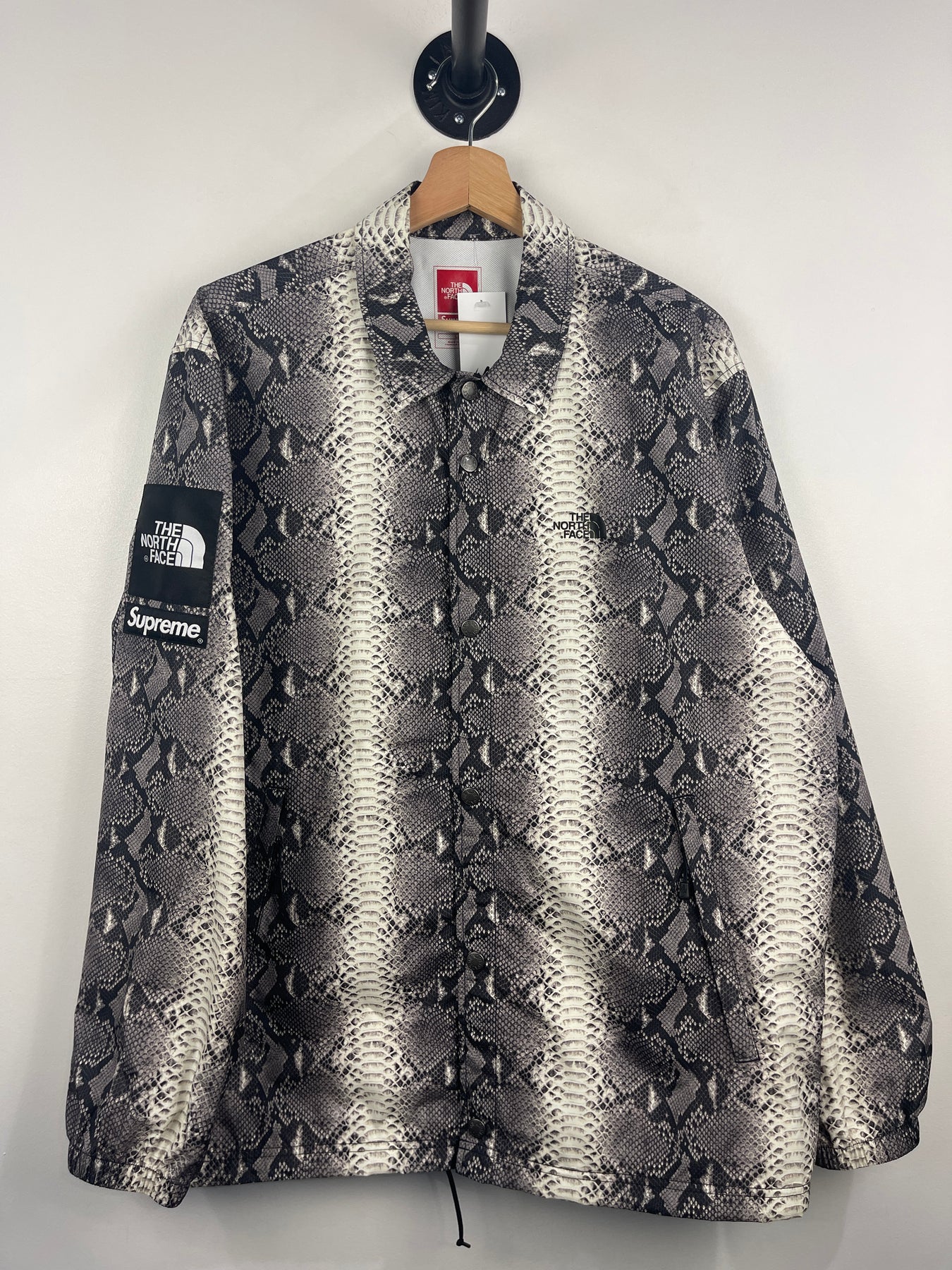 Supreme X The North Face SS18 Snakeskin Taped Seam Black Coaches Jacket