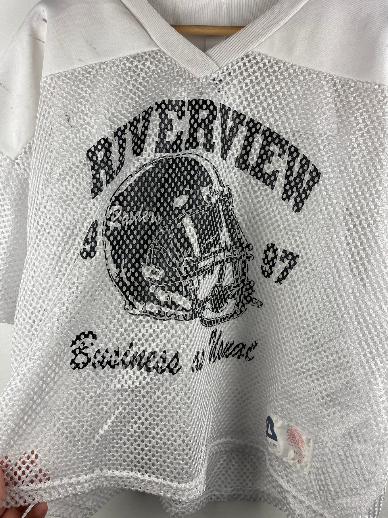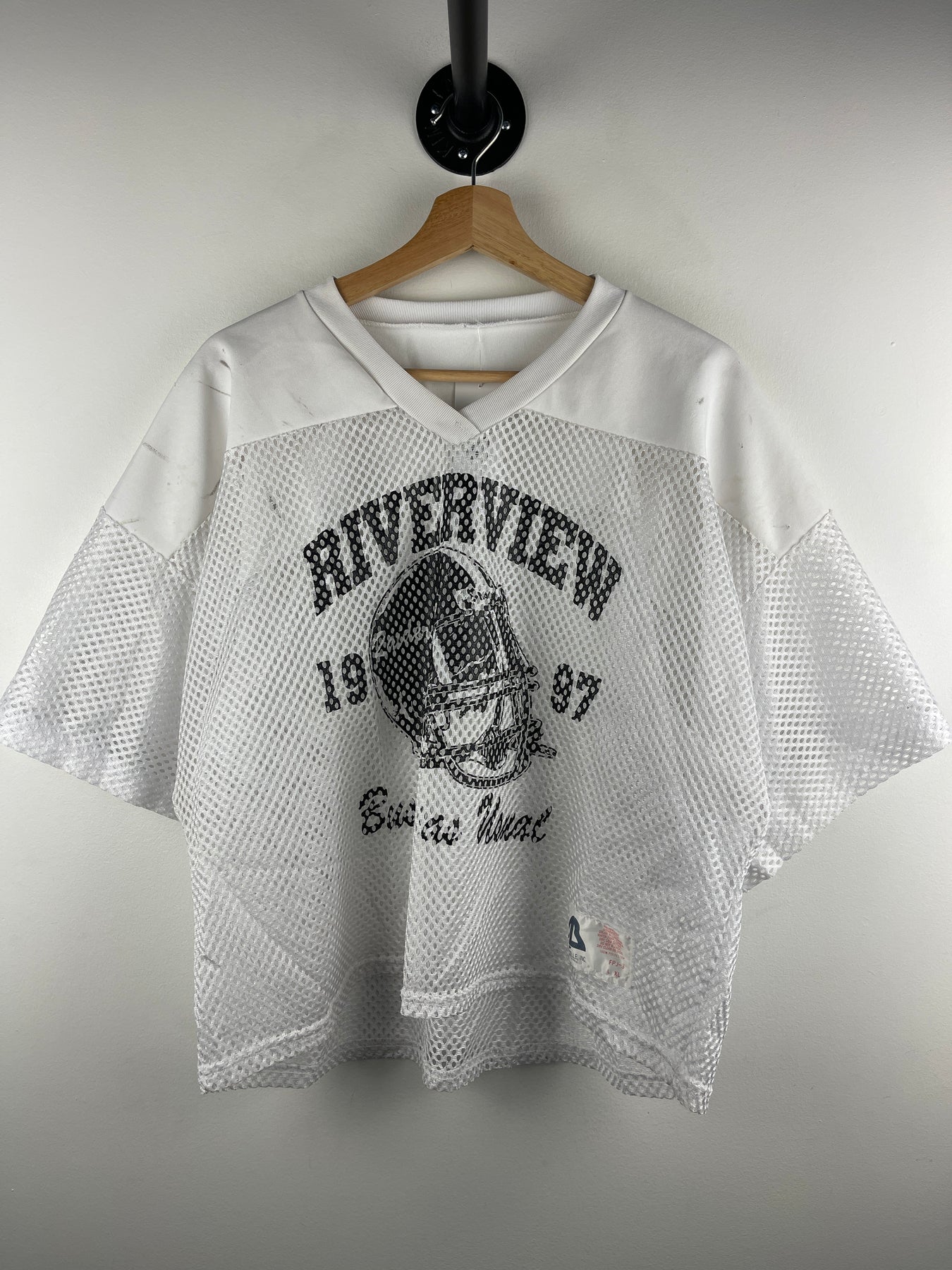 Vintage 90s Riverview Football White Mesh Cropped Football Jersey