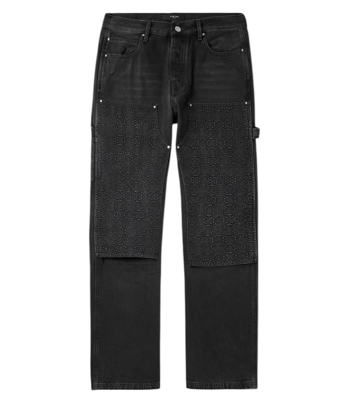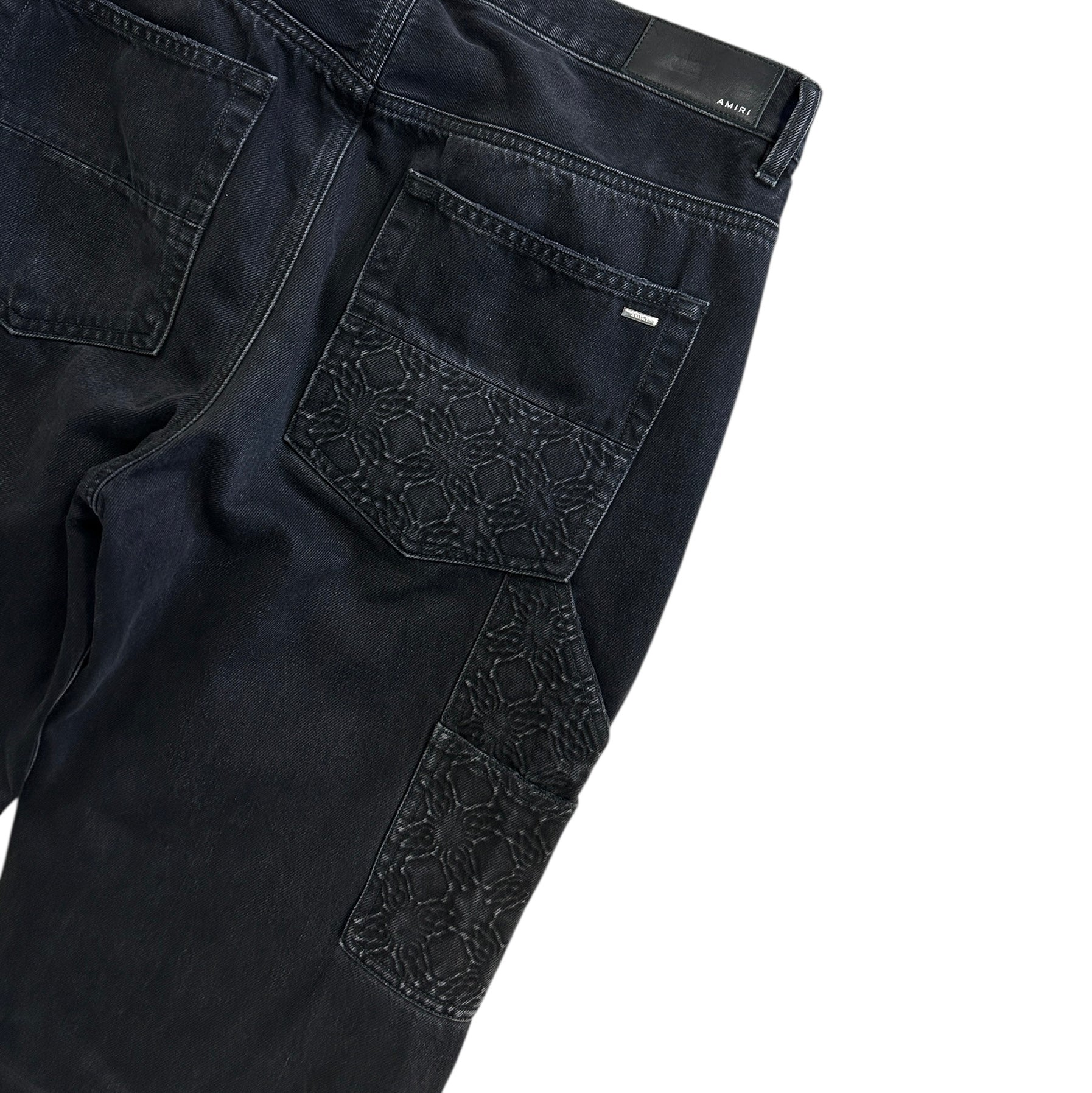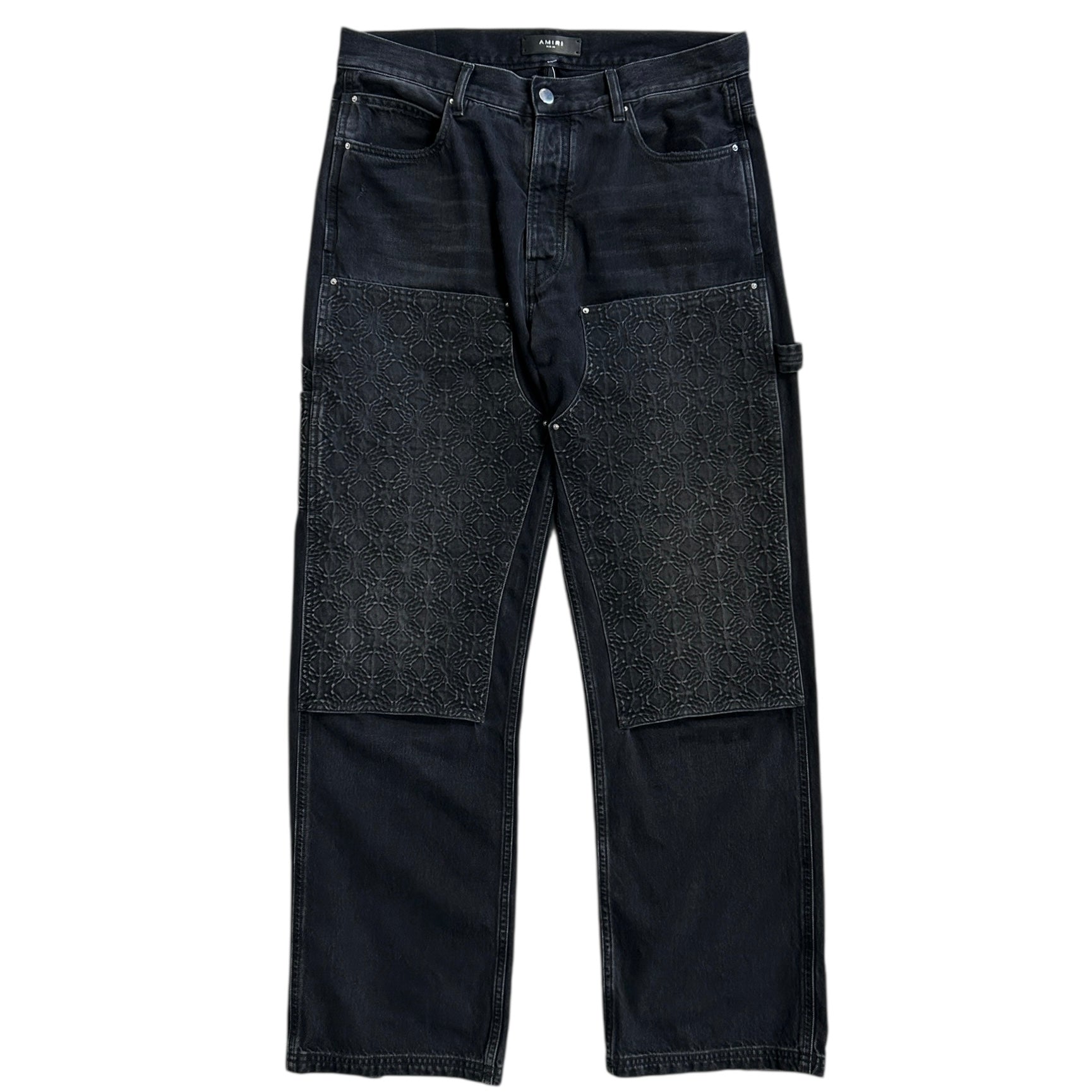 Amiri Straight Leg Panned Debossed Double Knee Black Denim Jeans