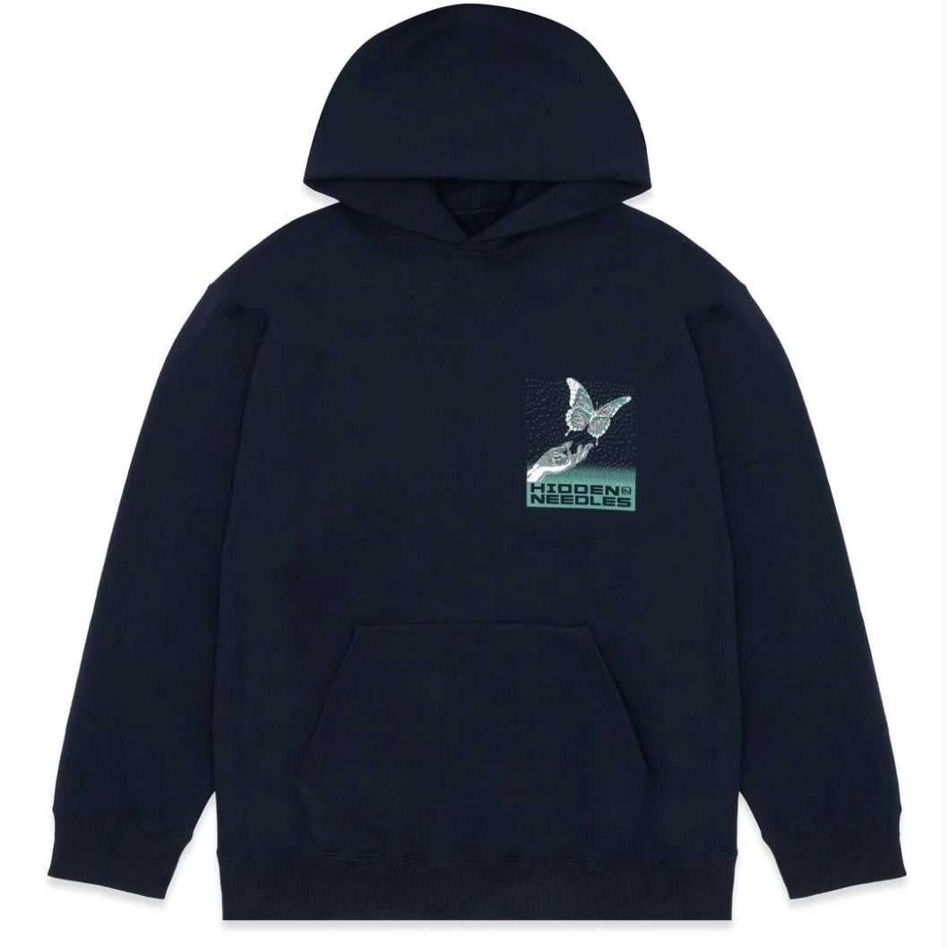 Hidden NY X Needles Pixel Butterfly H Logo Navy Hoodie