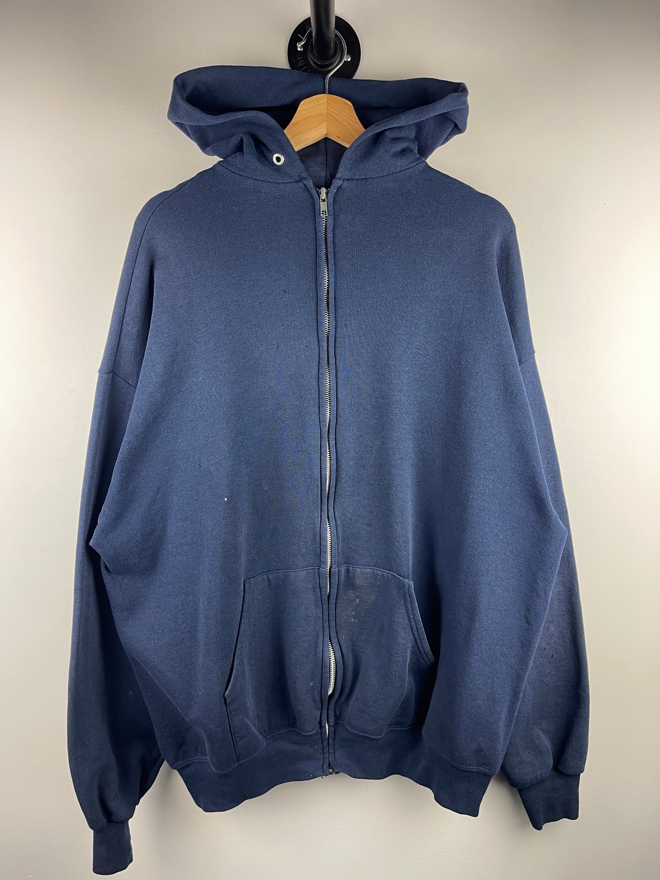 Vintage 90s Jerzees Blank Navy Zip Up Hoodie