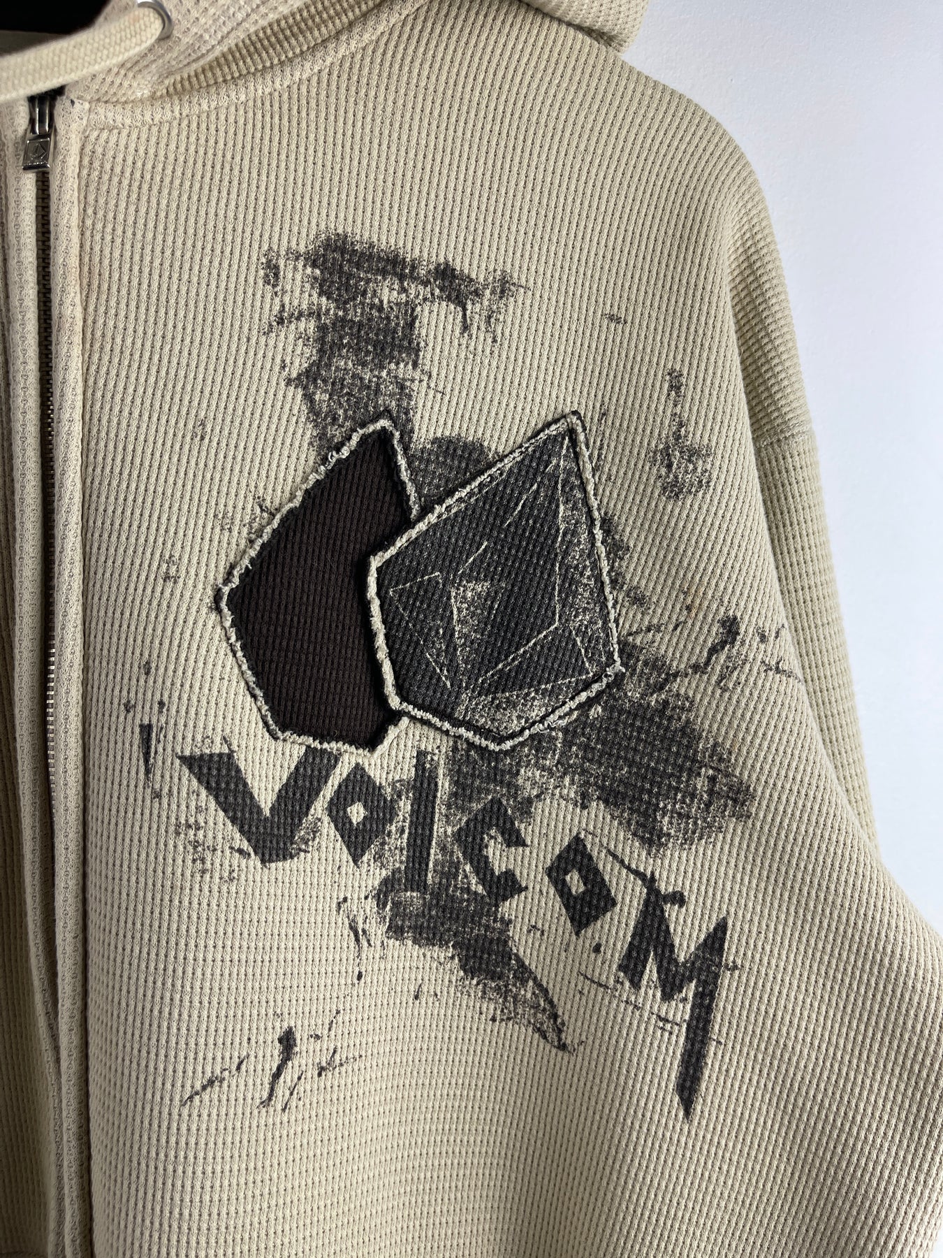 Vintage Y2K Volcom Skateboards Cream Thermal Zip Up Hoodie