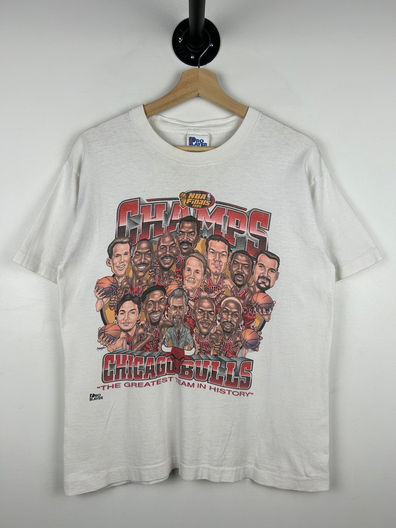 Vintage 90s NBA Pro Chicago Bulls Caricature Championship White Tee