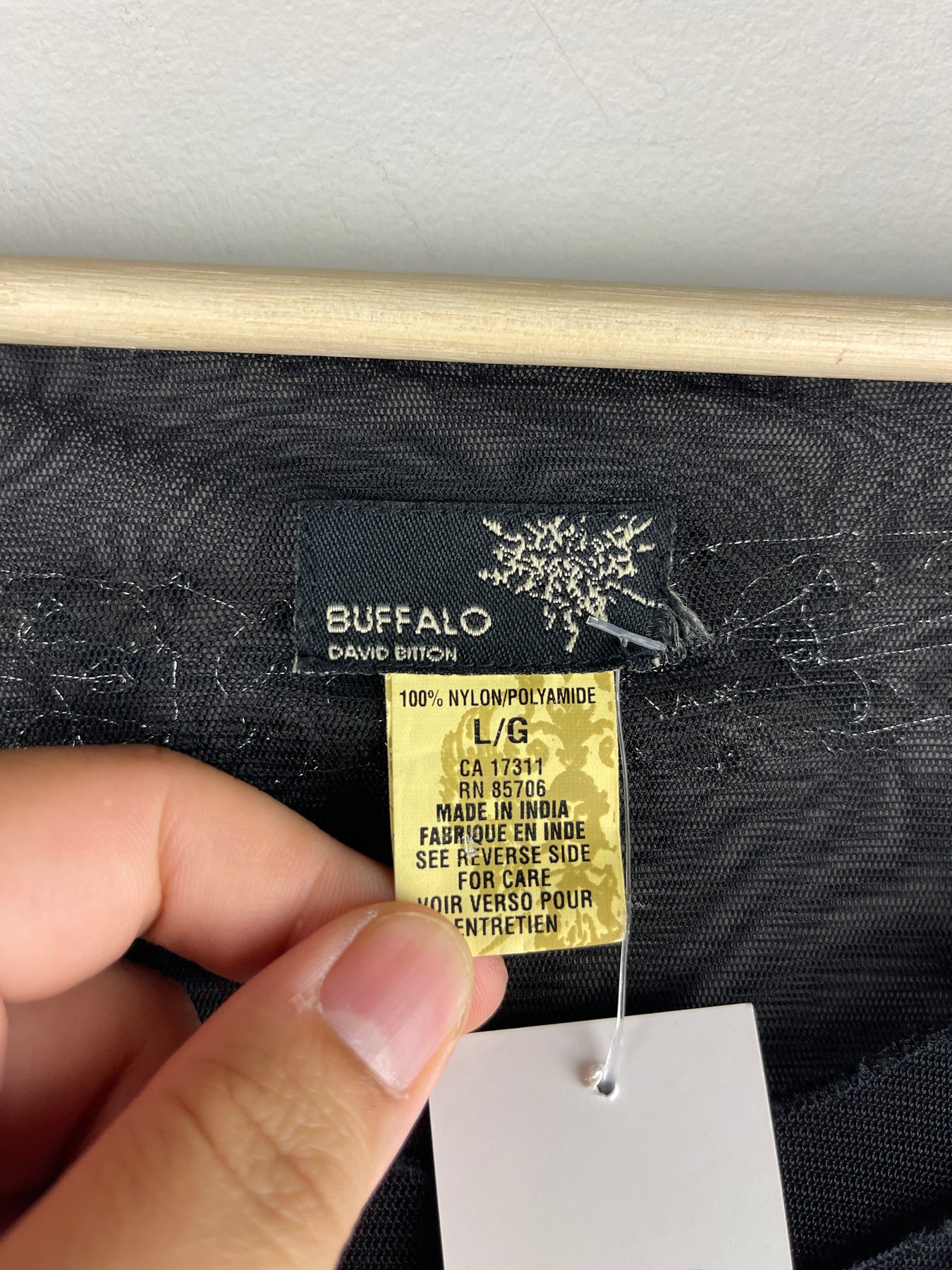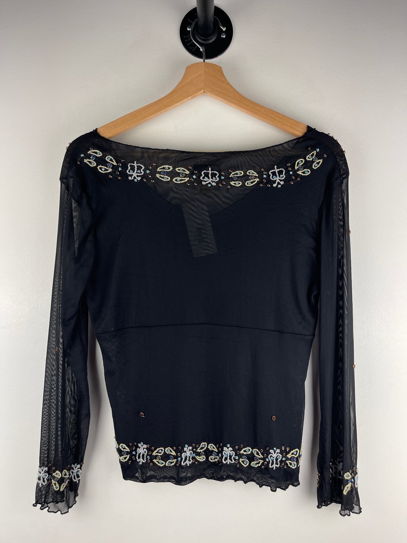 Vintage Buffalo Beaded Women's Black Mesh Long Sleeve