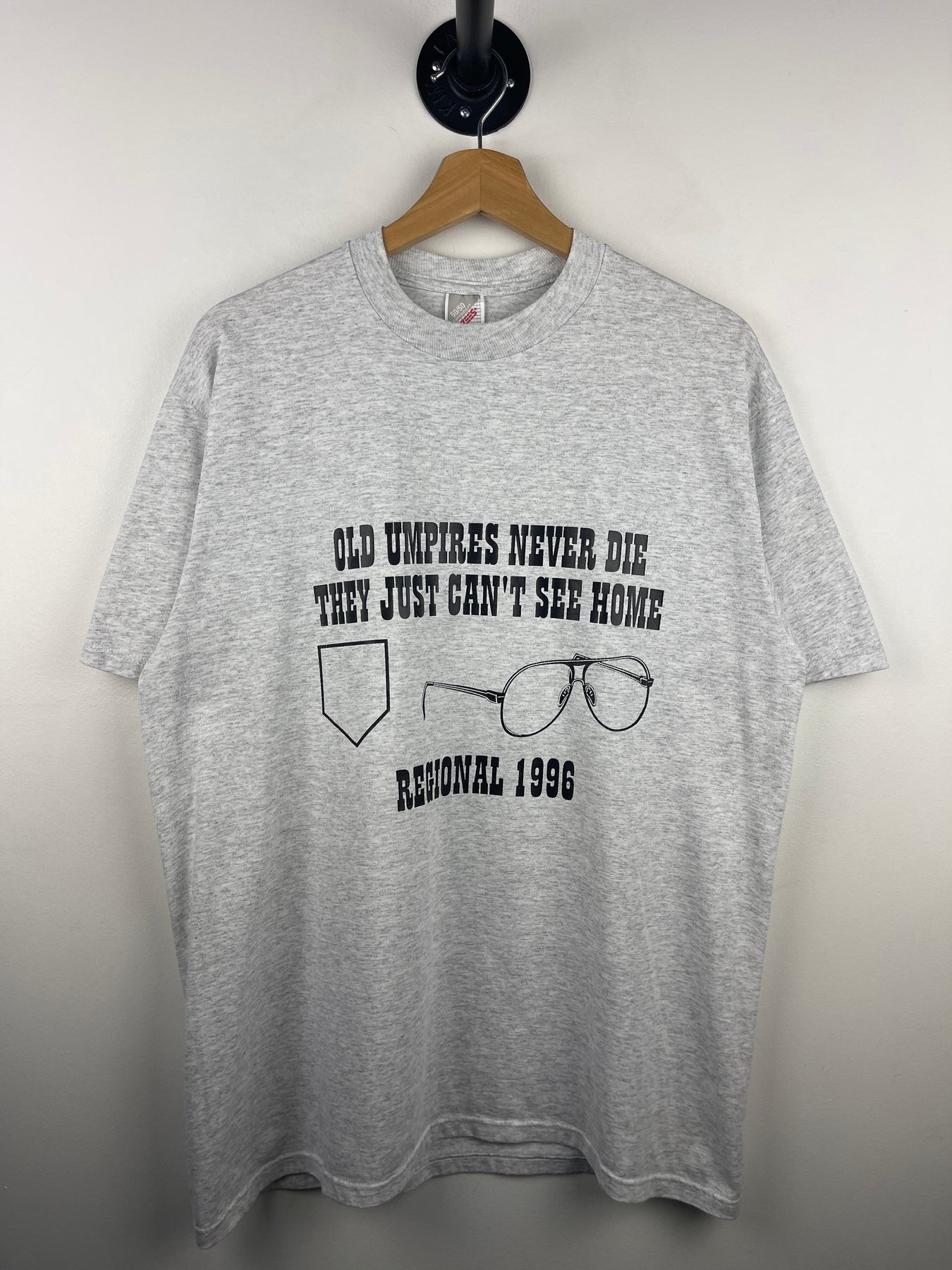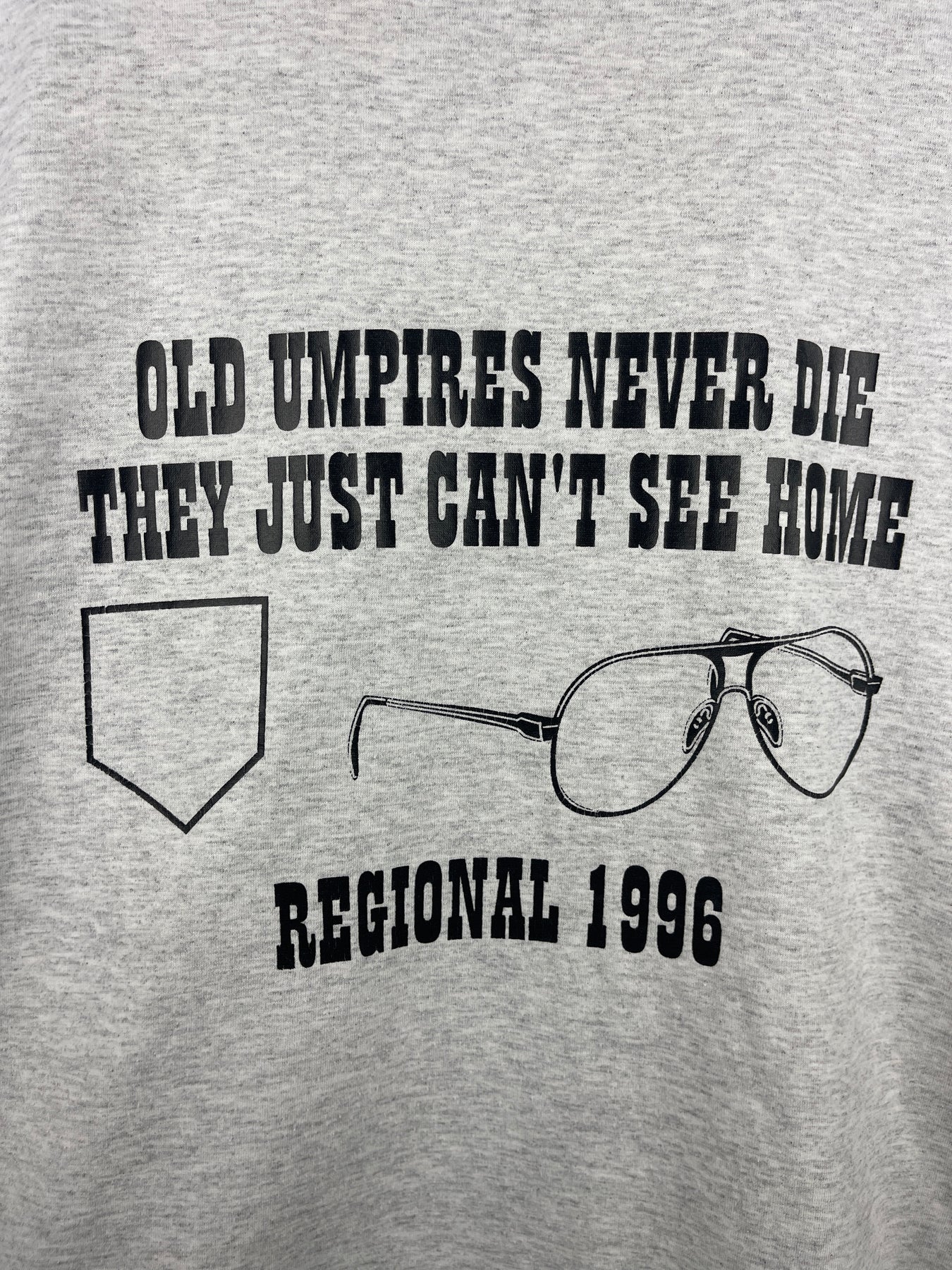 Vintage 90s Baseball Old Umpires Never Die They Just Cant See Home Comedy Grey Tee