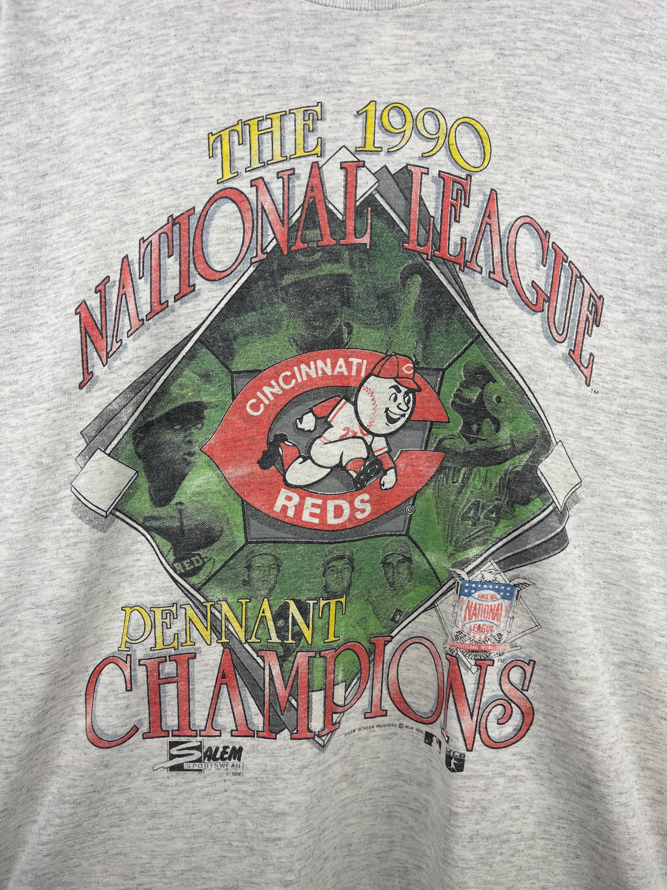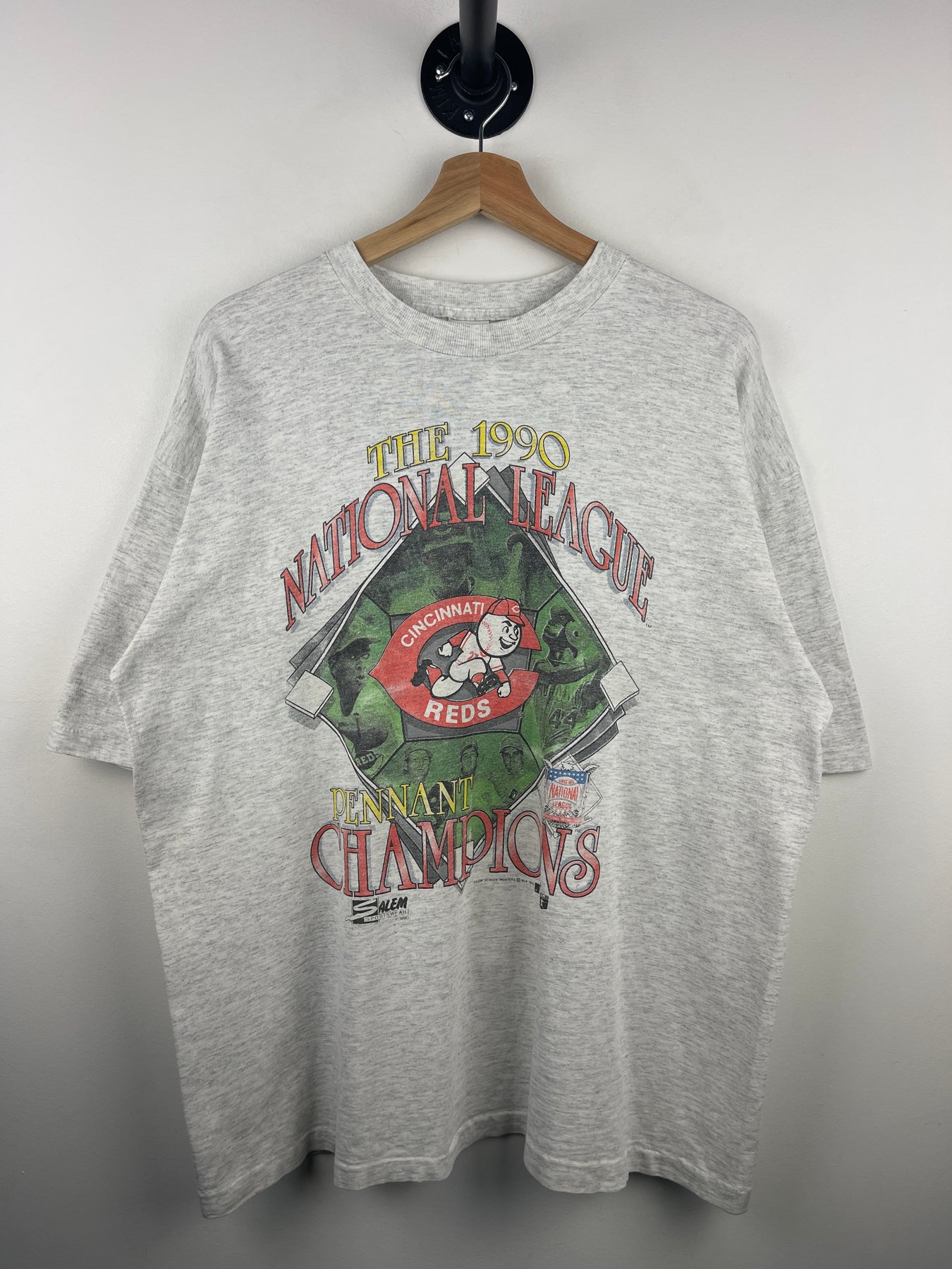 Vintage 90s MLB Salem Cincinnati Reds Pennant Champions Grey Tee