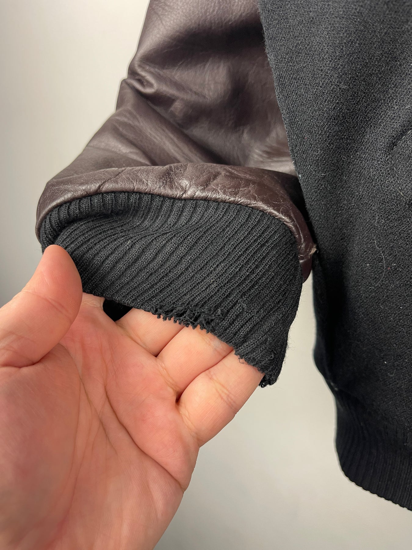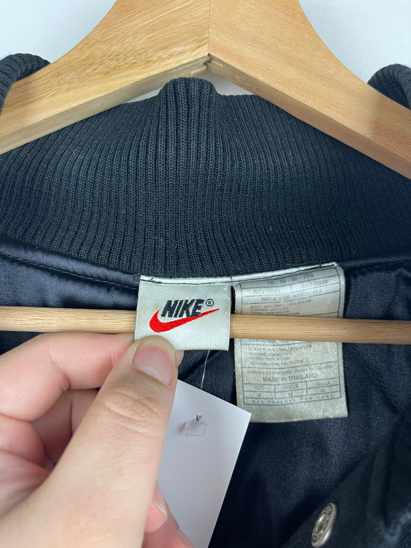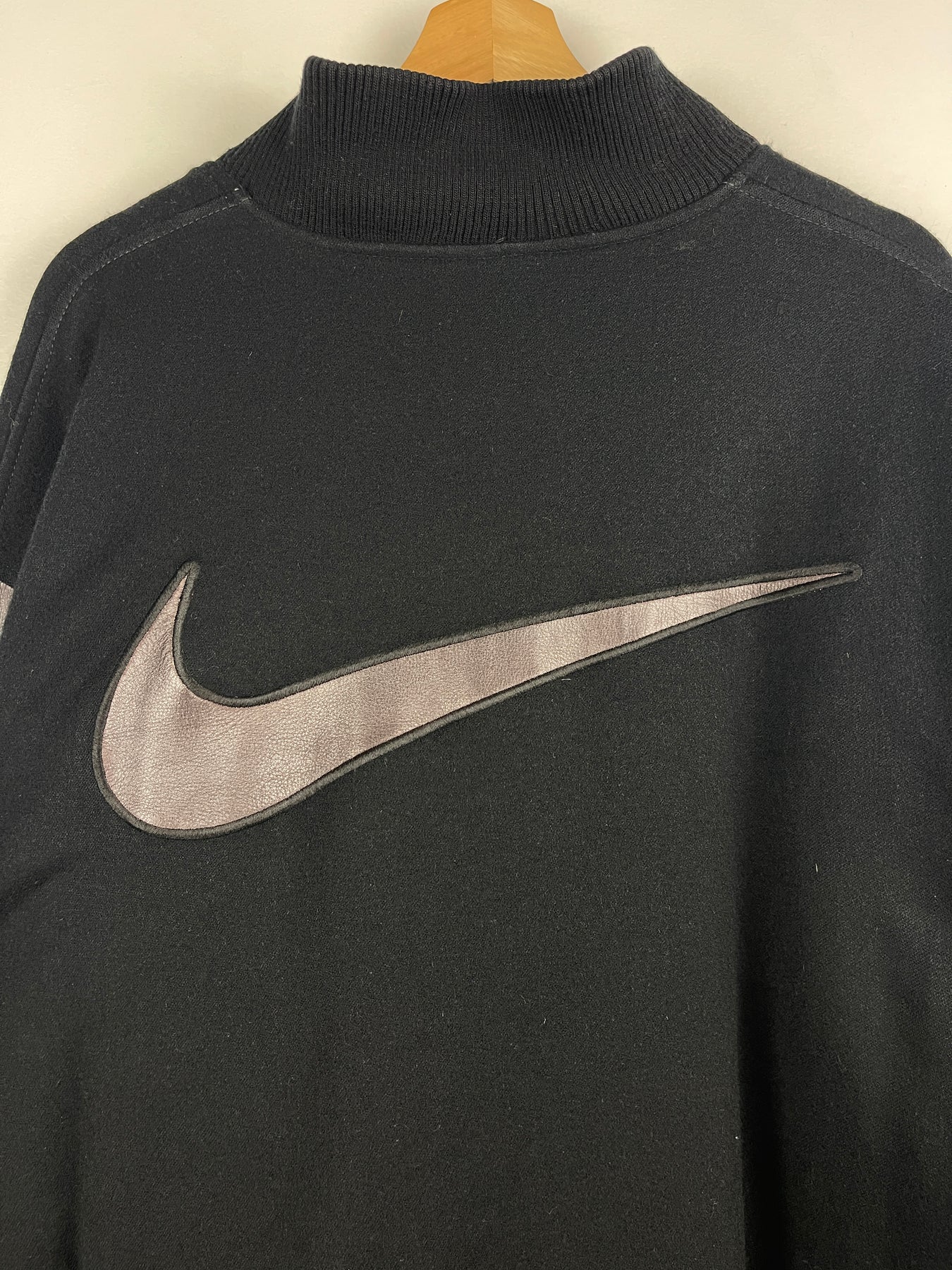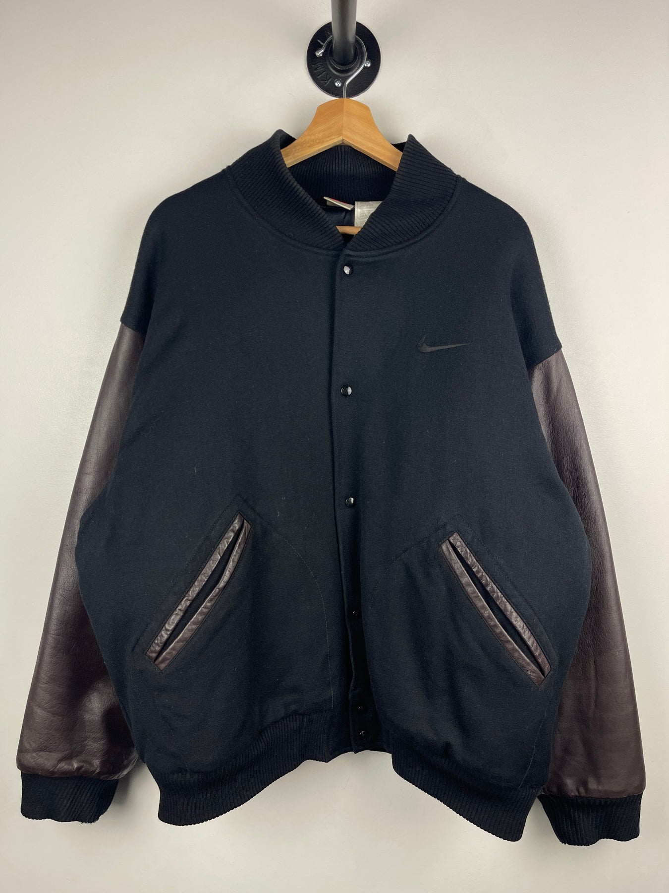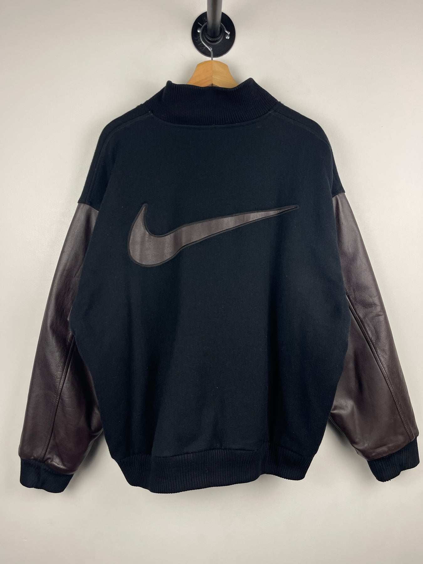 Vintage 90s Nike Swoosh Black & Brown Leather Wool Varsity Jacket