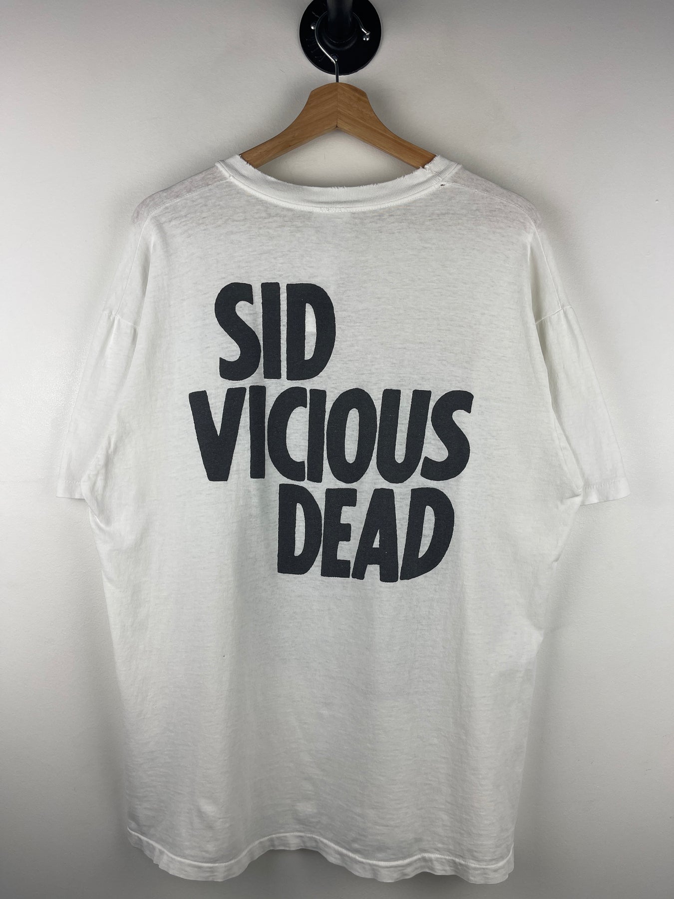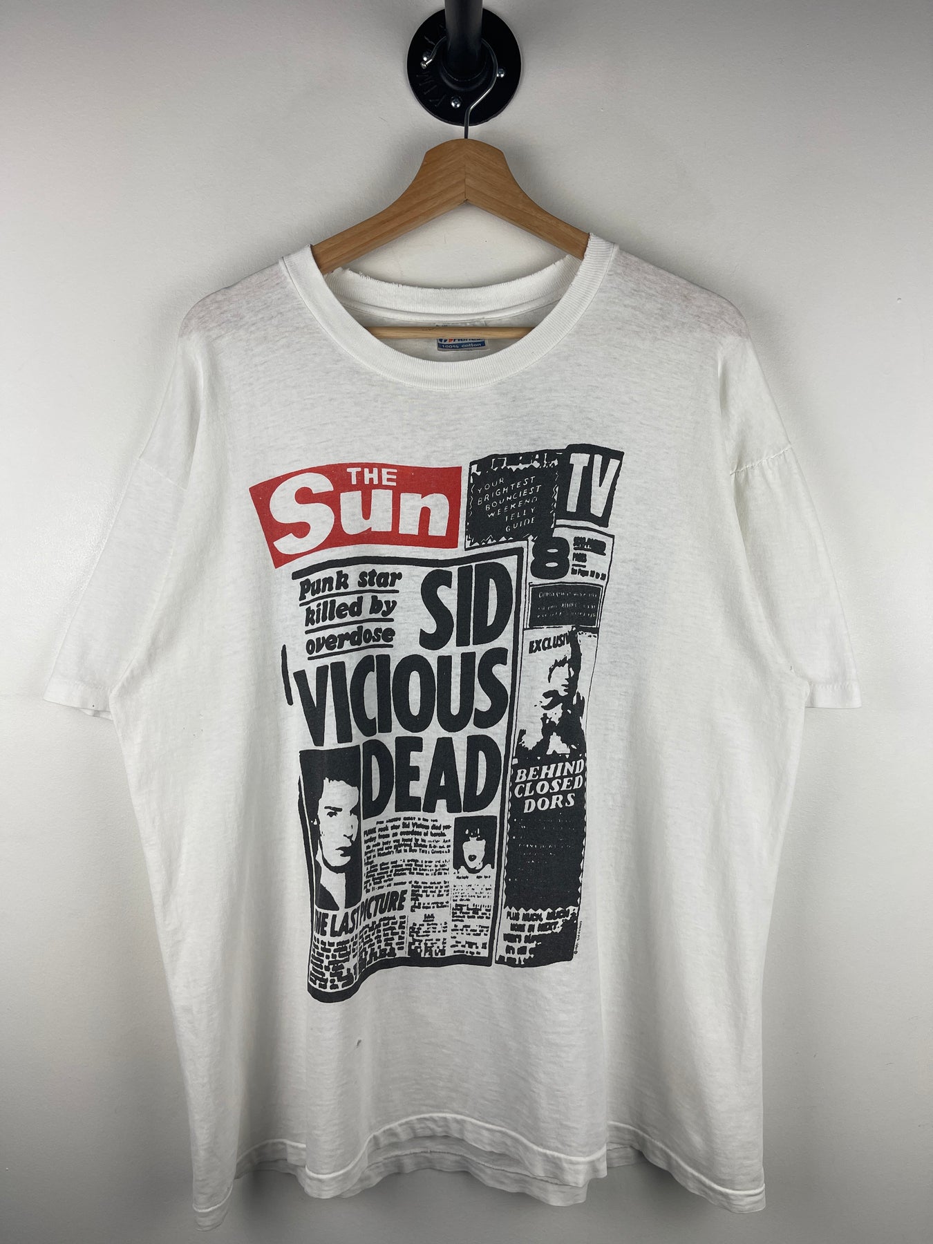 Vintage 90s Sex Pistols Sid Vicious Dead Newspaper White Tee