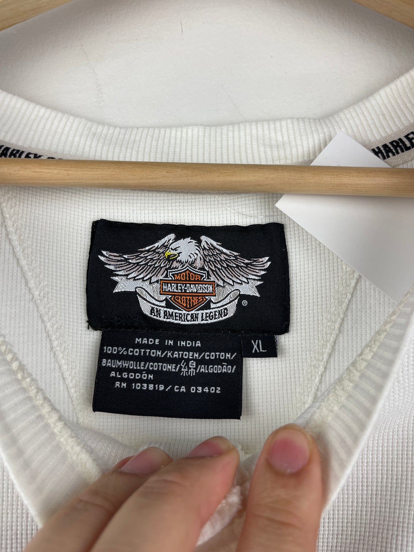 Vintage Harley Davidson Embroidered White Henley Long Sleeve Shirt