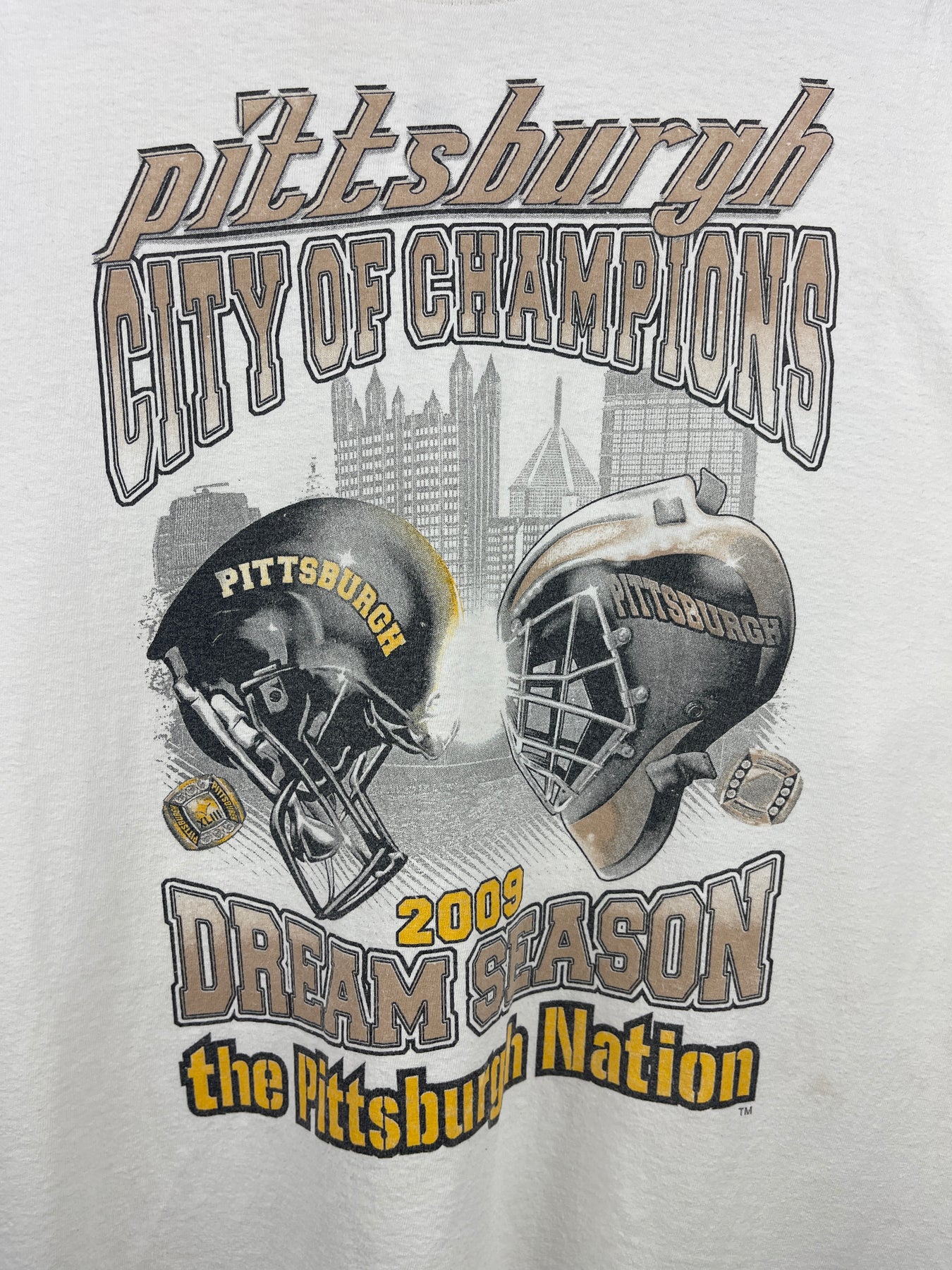 Vintage NFL NHL Pittsburgh Steelers & Penguins City Of Champions White Tee