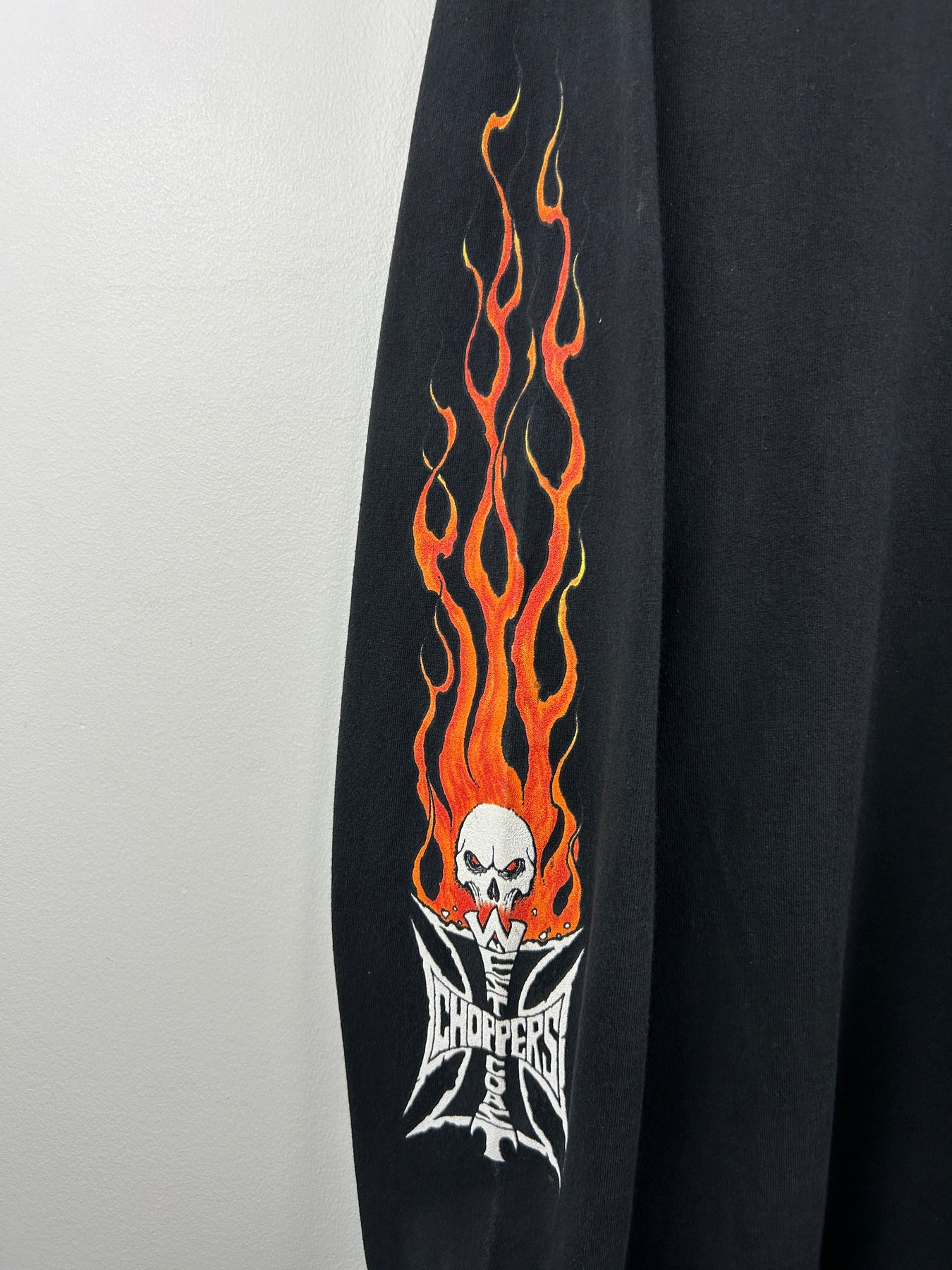 Vintage 2003 West Coast Choppers Flames Skull Black Long Sleeve
