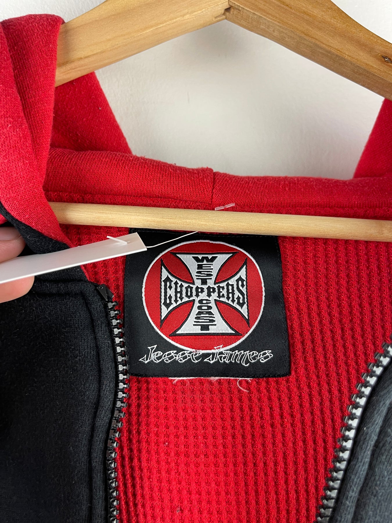 Vintage West Coast Choppers Long Beach Thermal Lined Black & Red Zip Up Hoodie