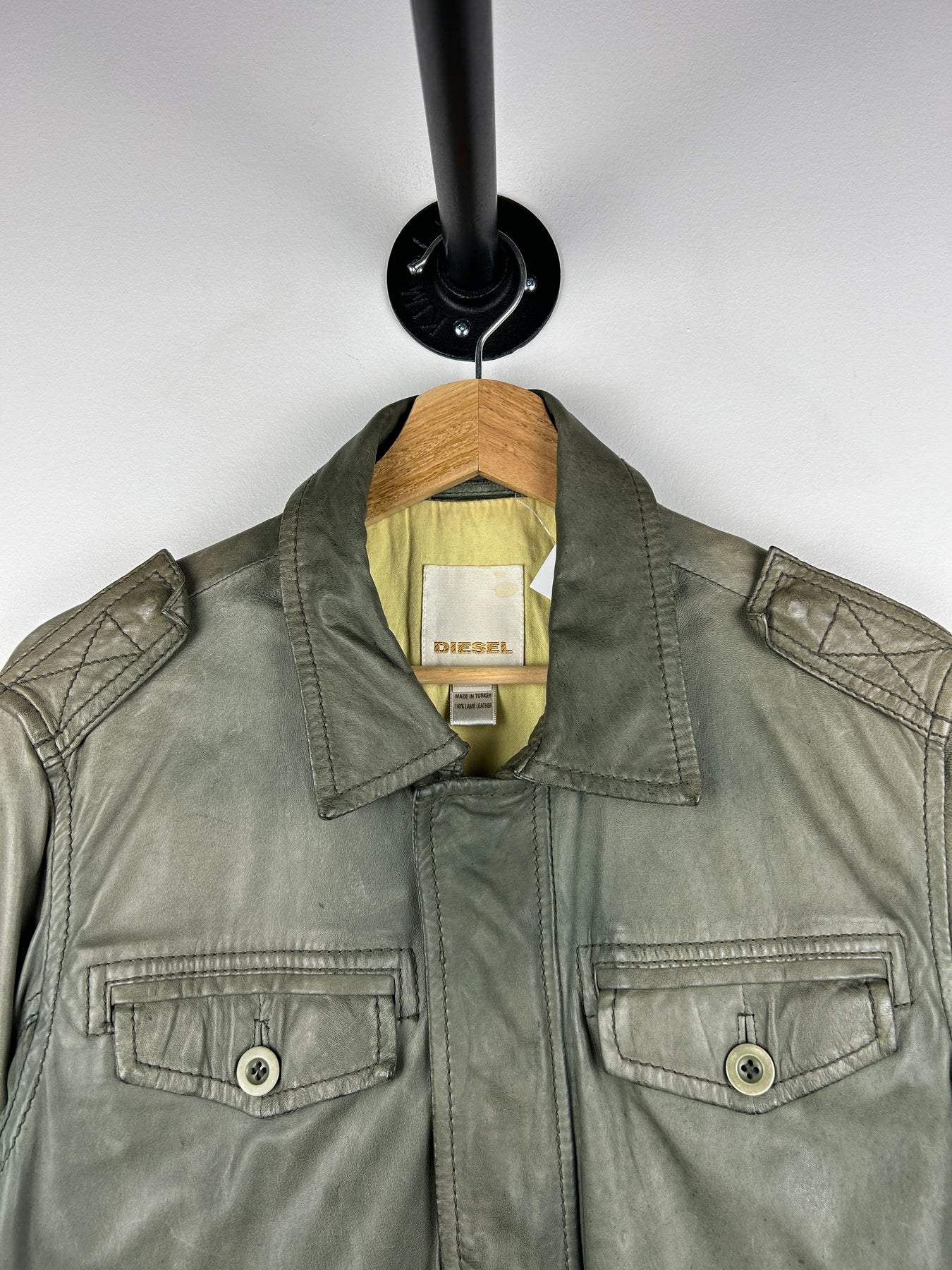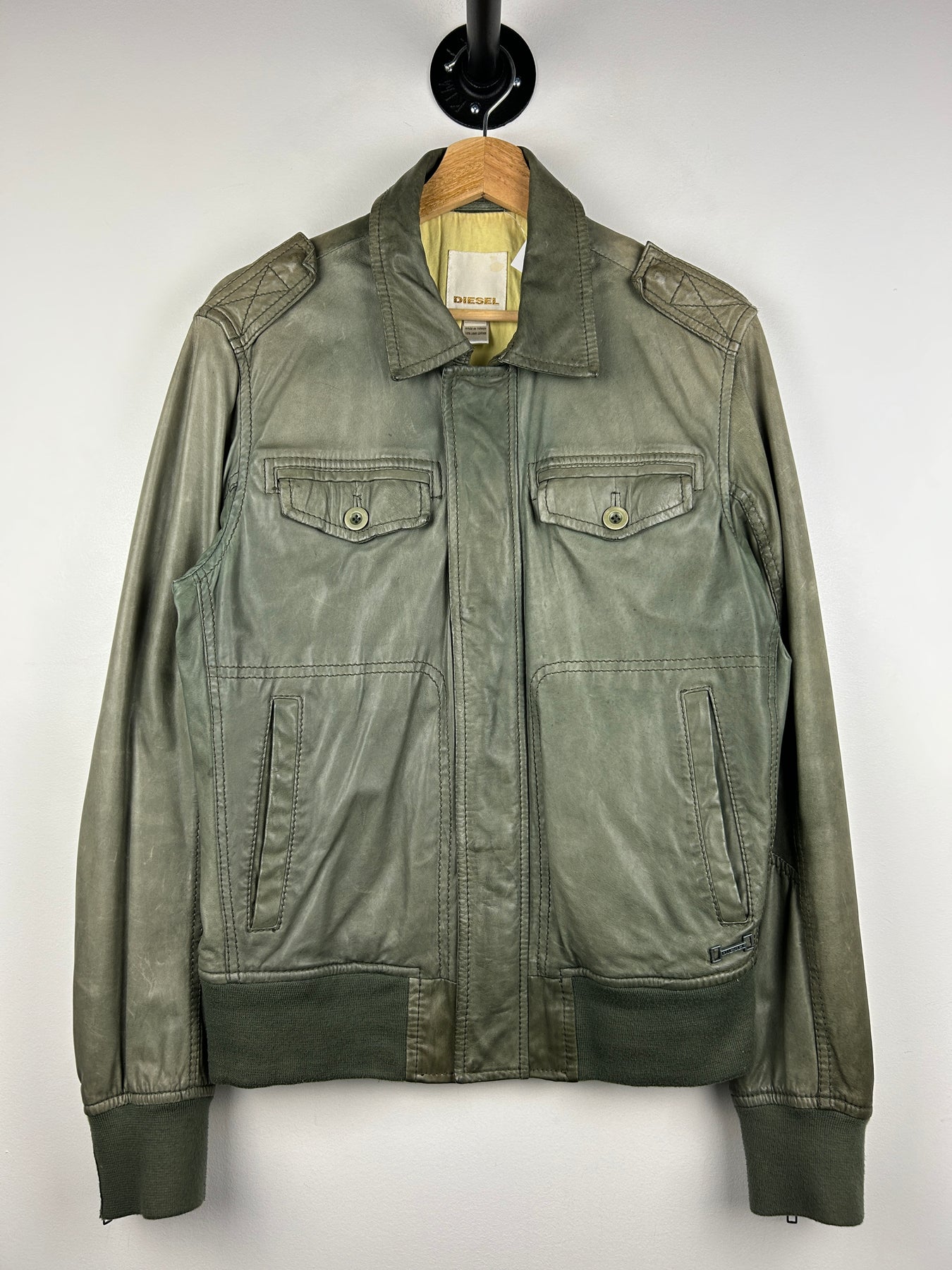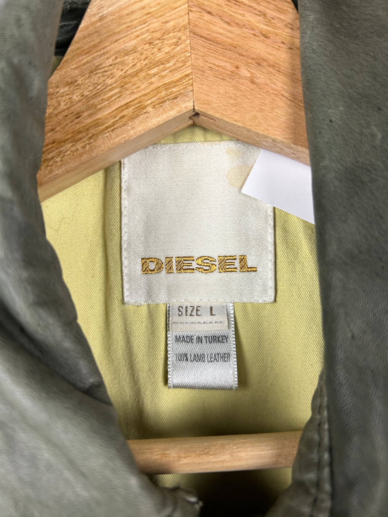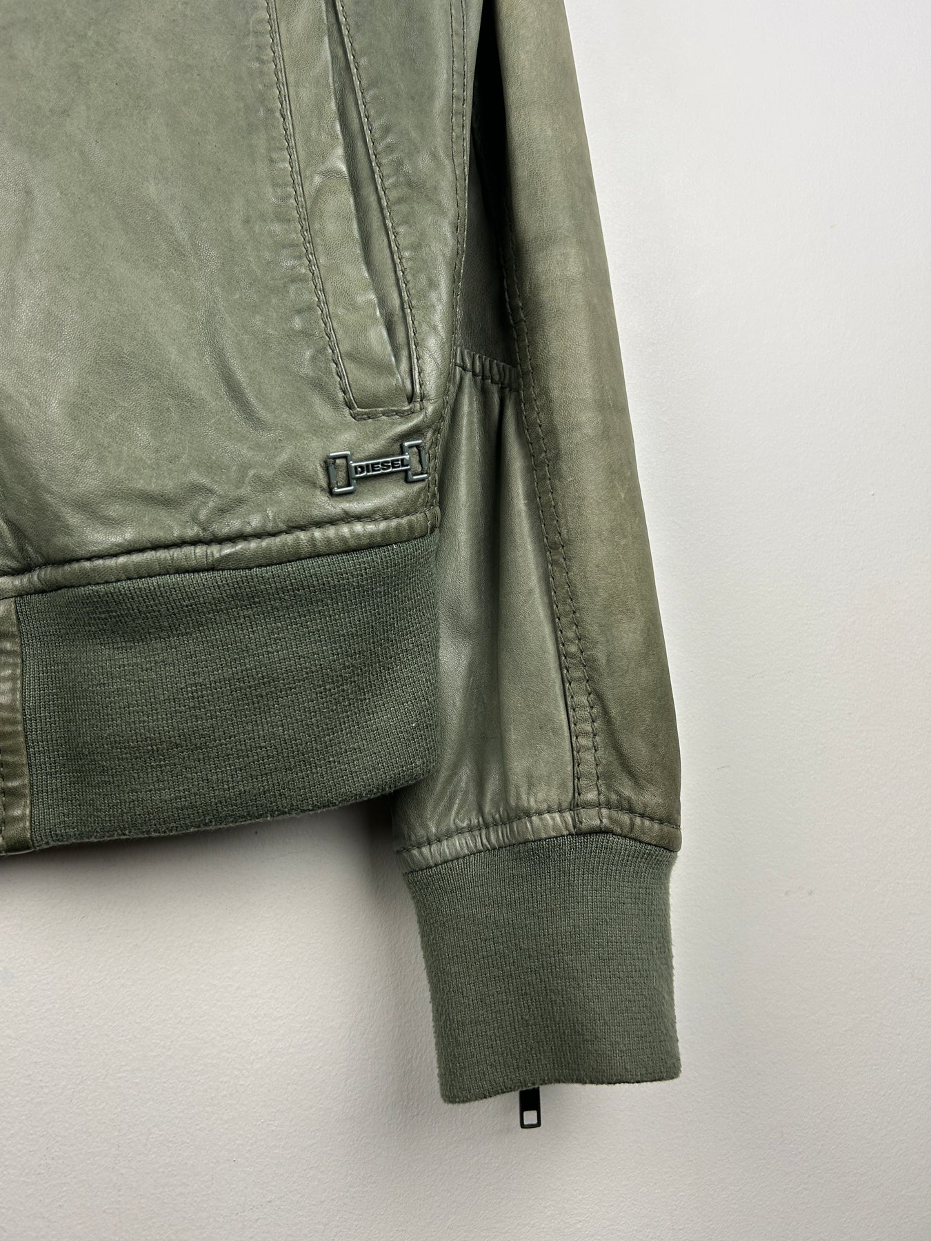 Vintage Diesel Faded Olive Lambskin Leather Women’s Bomber Jacket