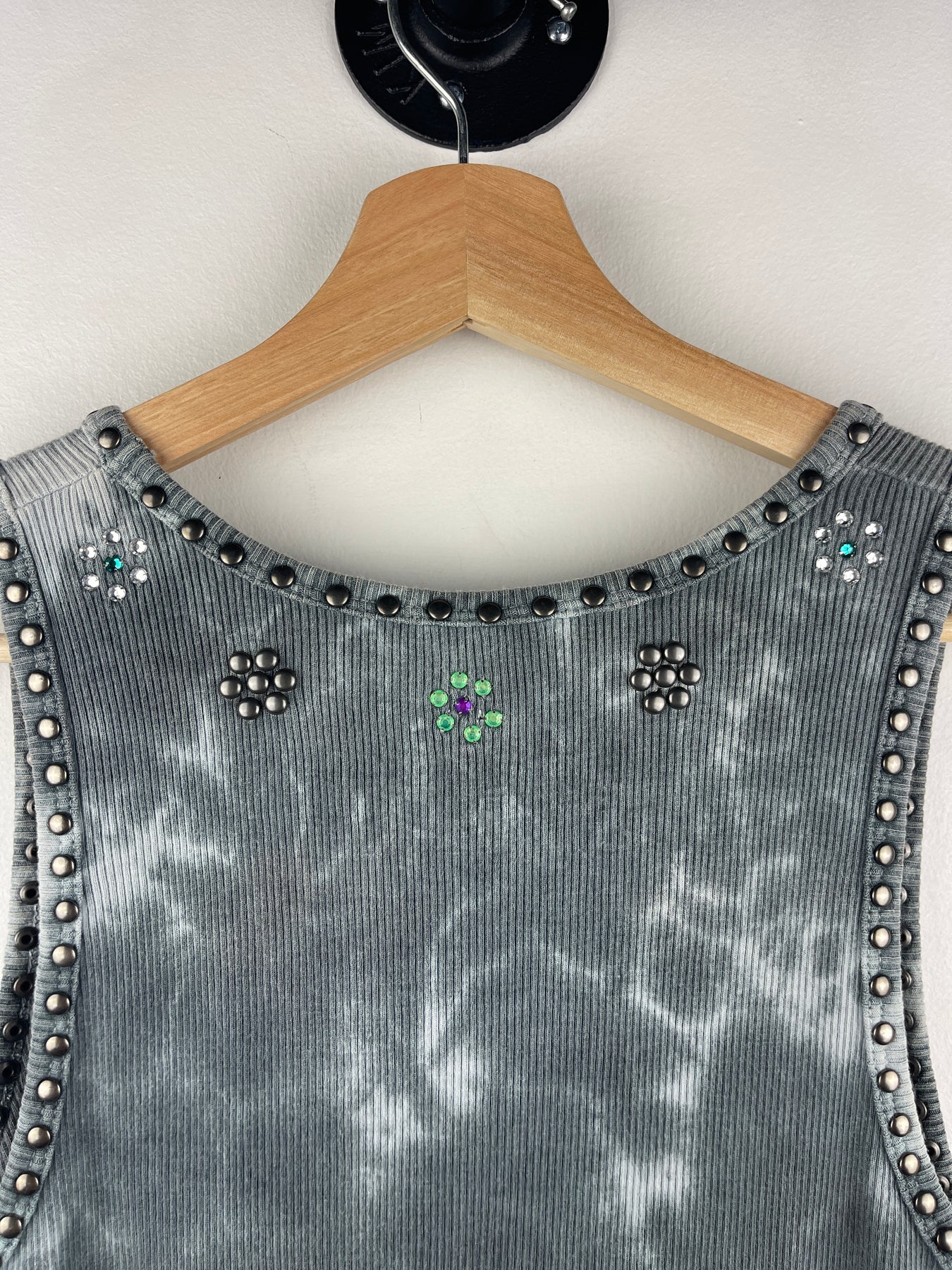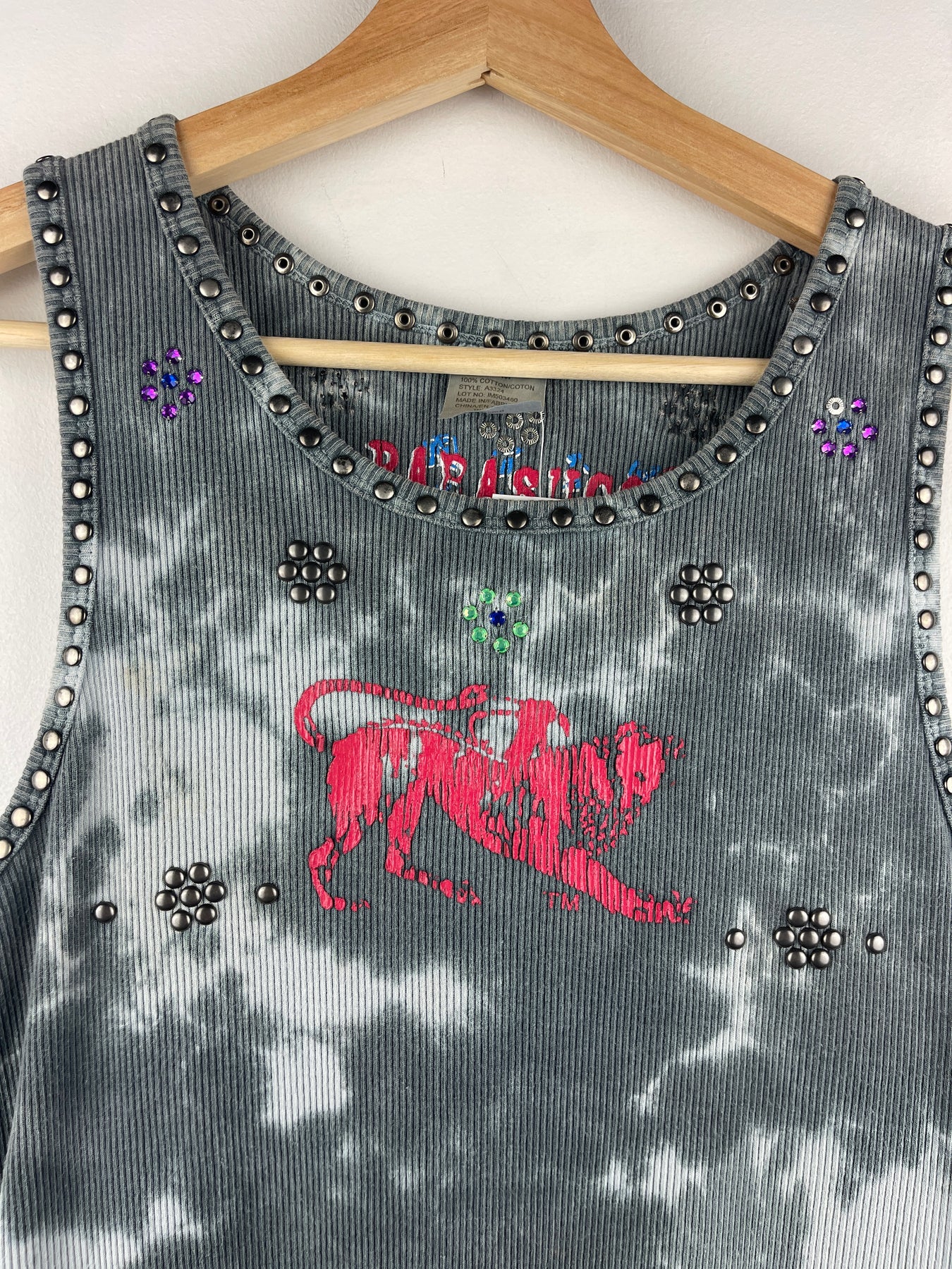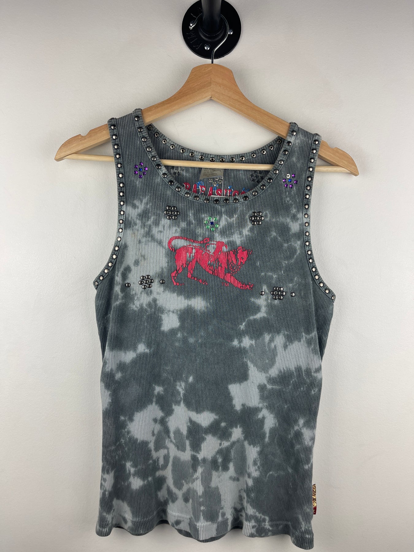 Vintage Y2K Parasuco Women's Black & White Tie-Dye Tank