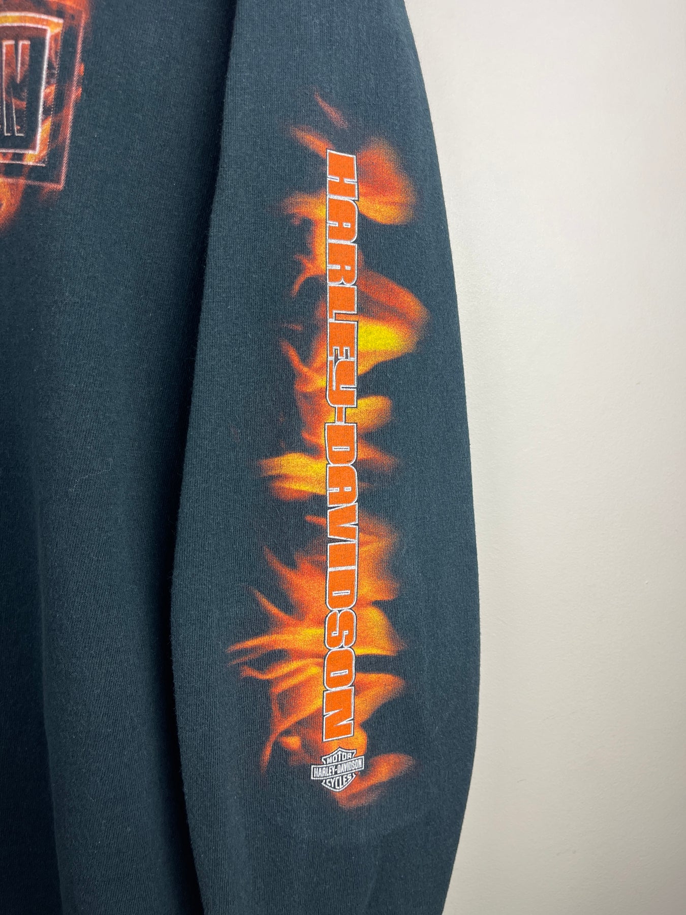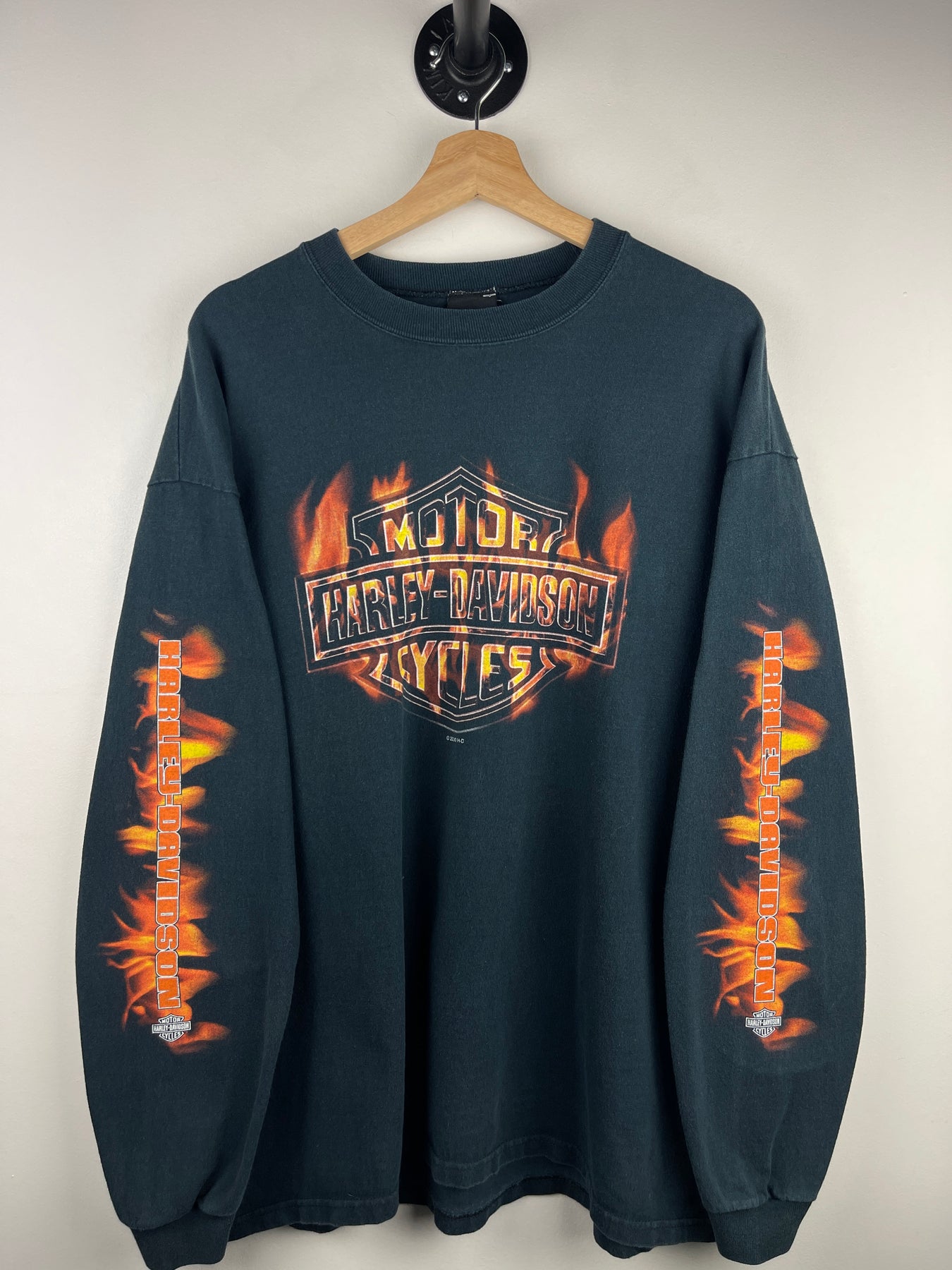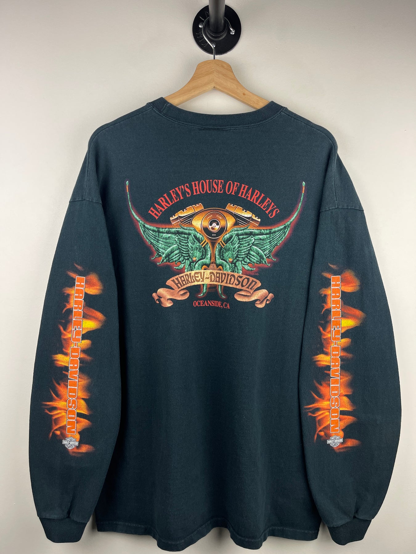 Vintage 2000 Harley Davidson Flames Logo Oceanside California Black Long Sleeve