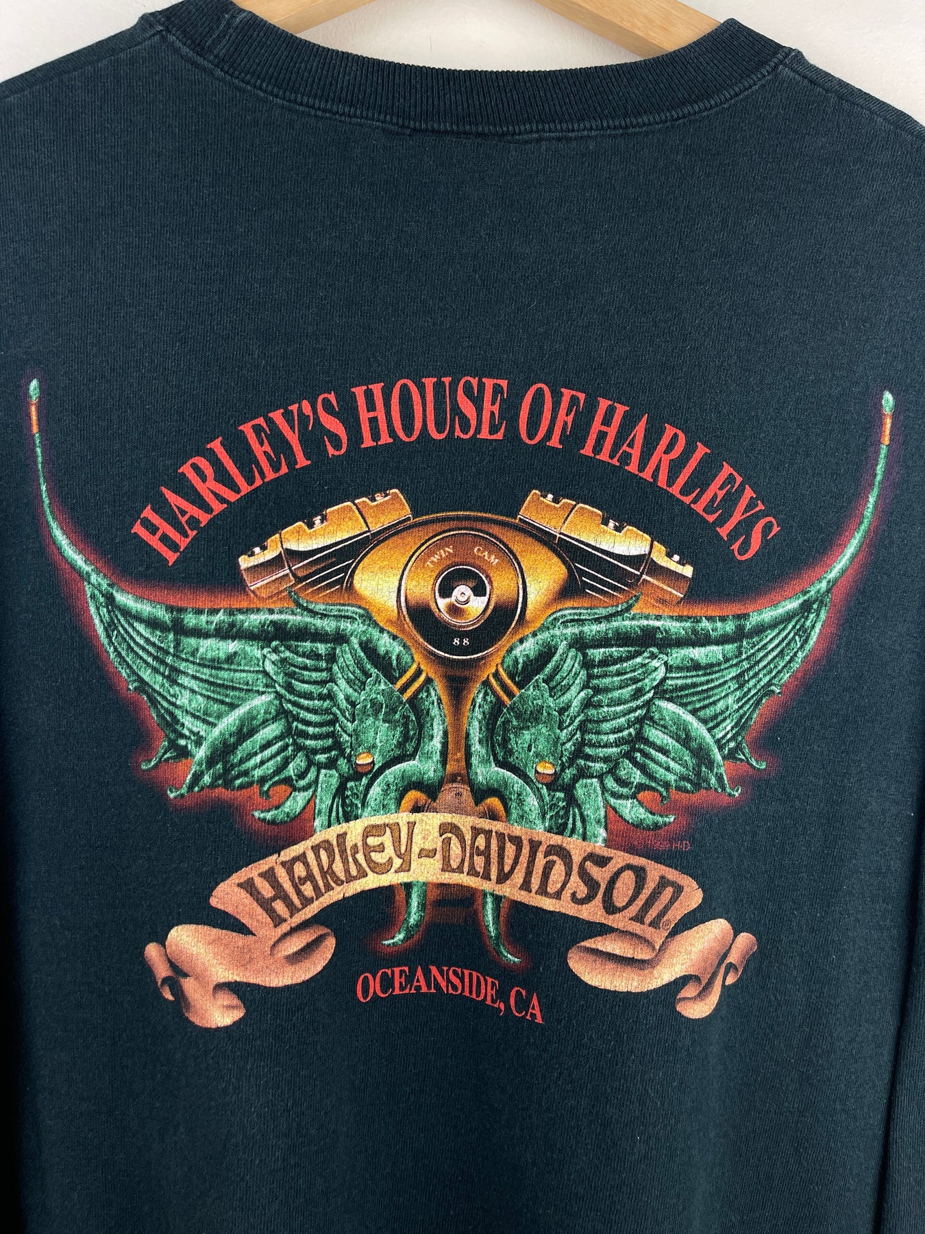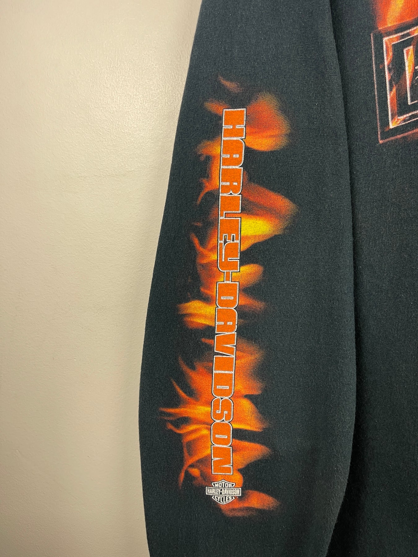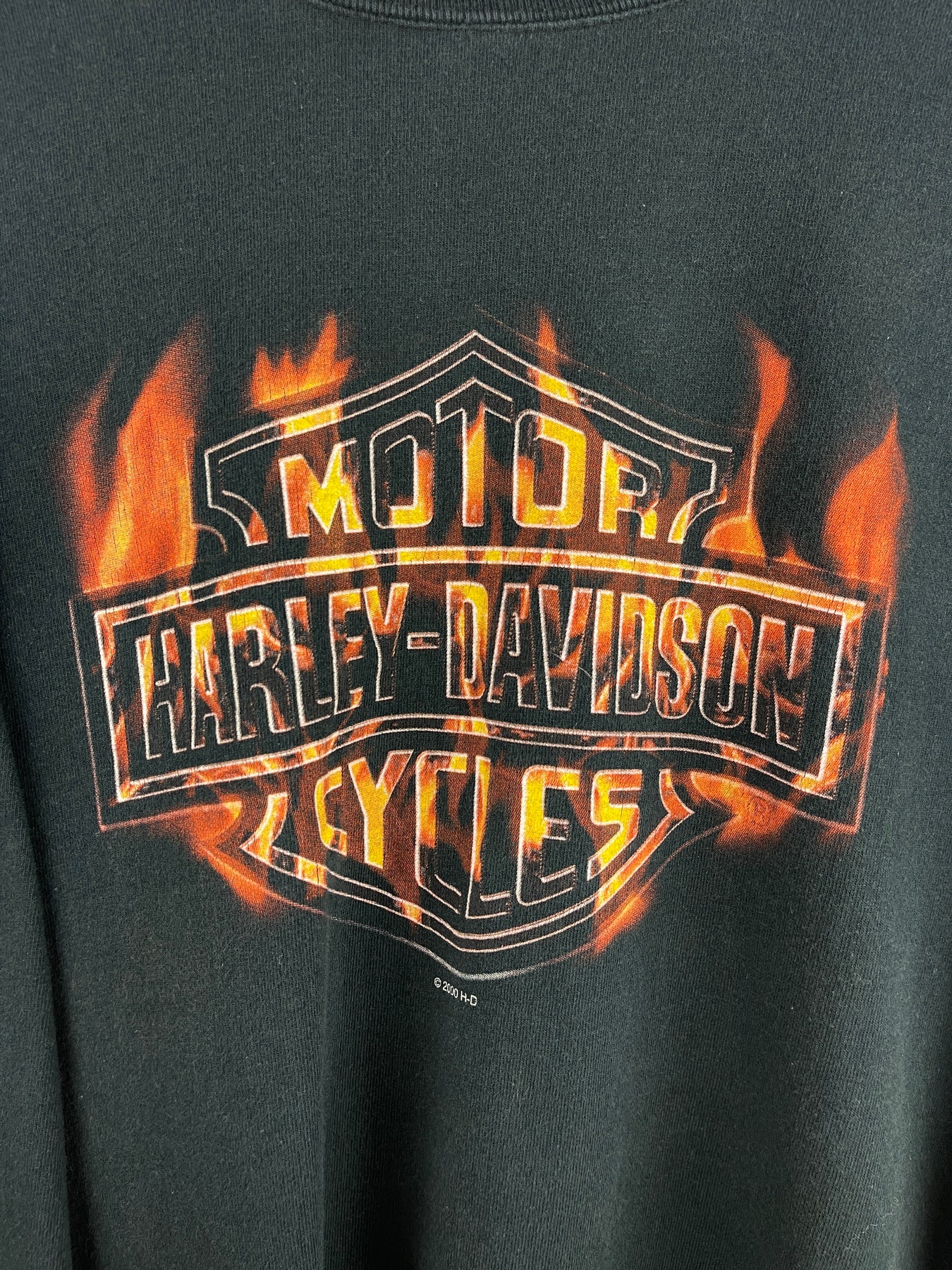 Vintage 2000 Harley Davidson Flames Logo Oceanside California Black Long Sleeve