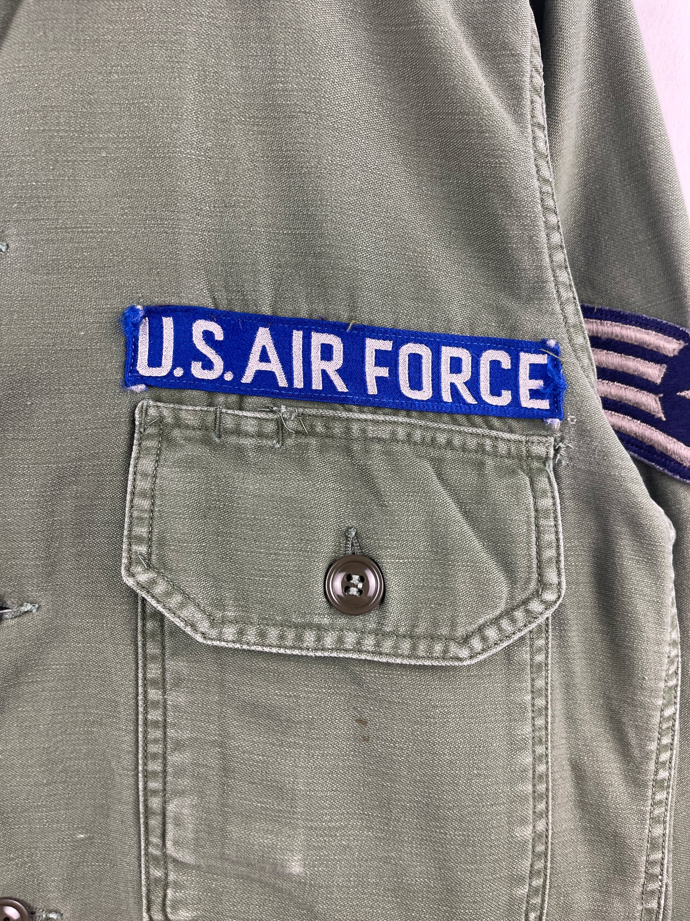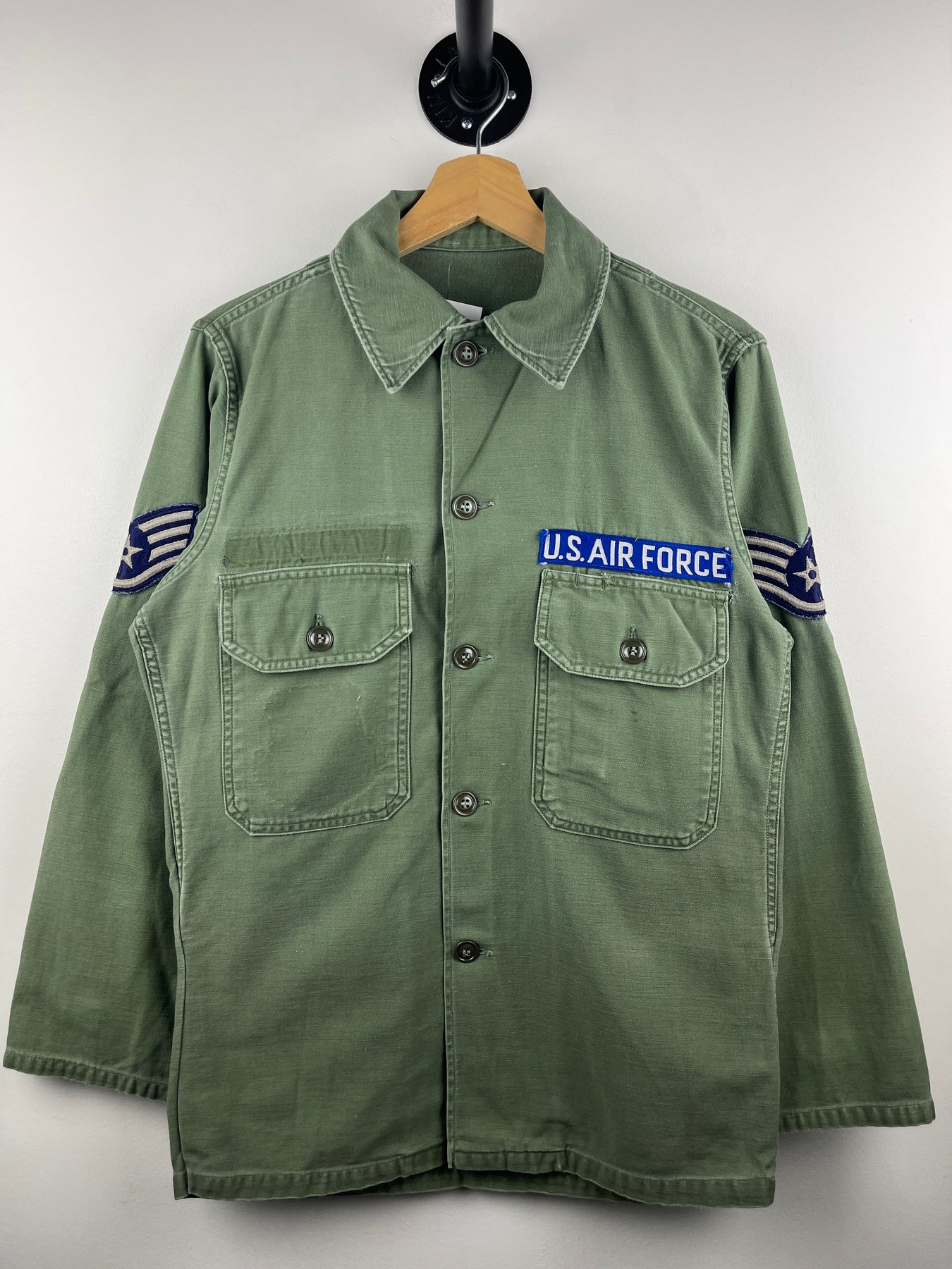 Vintage 80s US Military Air Force OG 507 Green Long Sleeve Button Up Utility Shirt